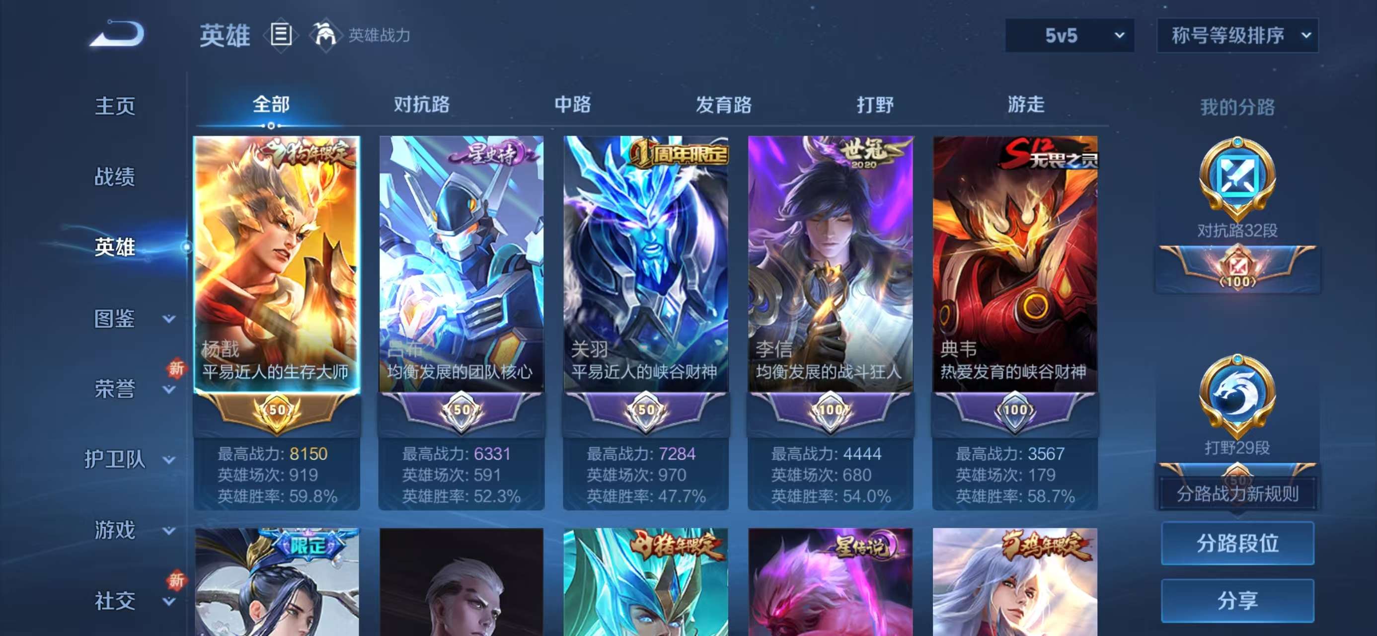 安卓qq/荣耀王者/249皮肤/126英雄/0典藏/0珍品无双/0无双/0珍品传说/7传说/73史诗/8稀有英雄【7 传说皮肤】地狱火 孙悟空永曜之星 杨戬凤求凰 李白猫影幻舞 貂蝉地狱之眼 宫本武藏久胜战神 干将莫邪一念神魔 李信【73 史诗皮肤】末日机甲 吕布白昼王子 嬴政紫霞仙子 露娜高山流水 庄周银河之约 李元芳匿光决锋者 夏侯惇暗影游猎 马可波罗狮舞东方 鲁班