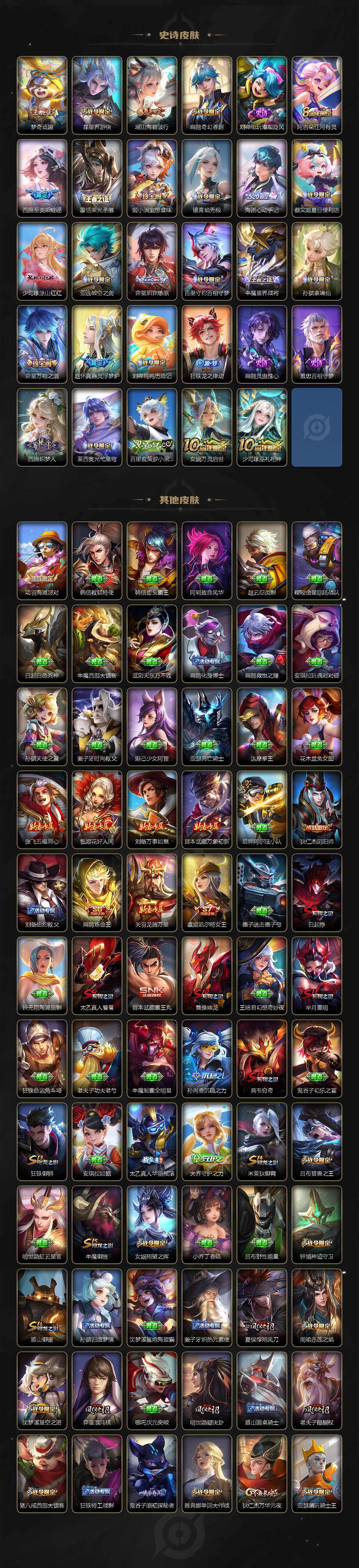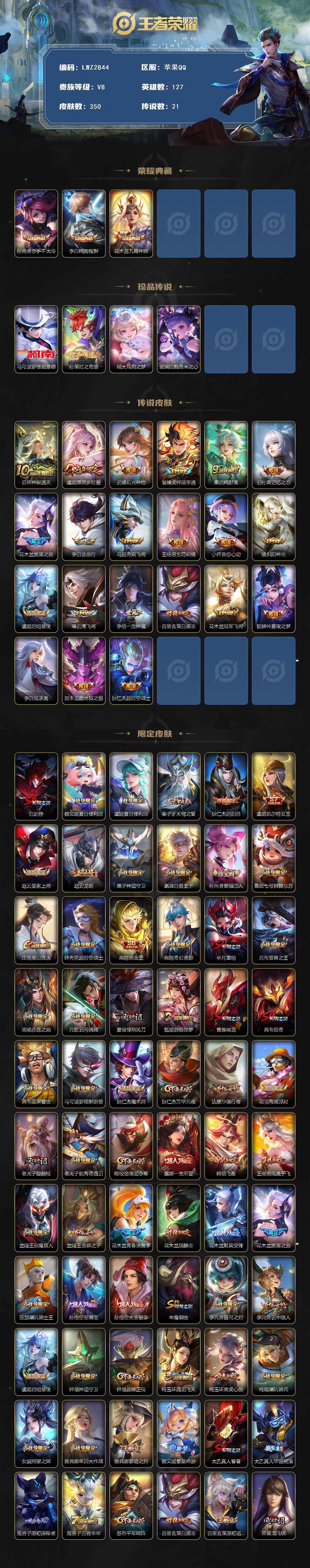 127英雄-350皮肤-【店主推荐捡漏号!可直接换绑】苹果q-v8-最强王者段位-127英雄-350皮肤-3典藏皮肤-4珍品传说-21传说-119史诗 【英雄全皮】:花木兰全皮,雅典娜全皮,太乙真人全皮,鬼谷子全皮,蒙恬全皮,影全皮,少司缘全皮 【荣耀典藏】:孙尚香杀手不太冷,李白鸣剑曳影,花木兰九霄神辉 【珍品传说】:马