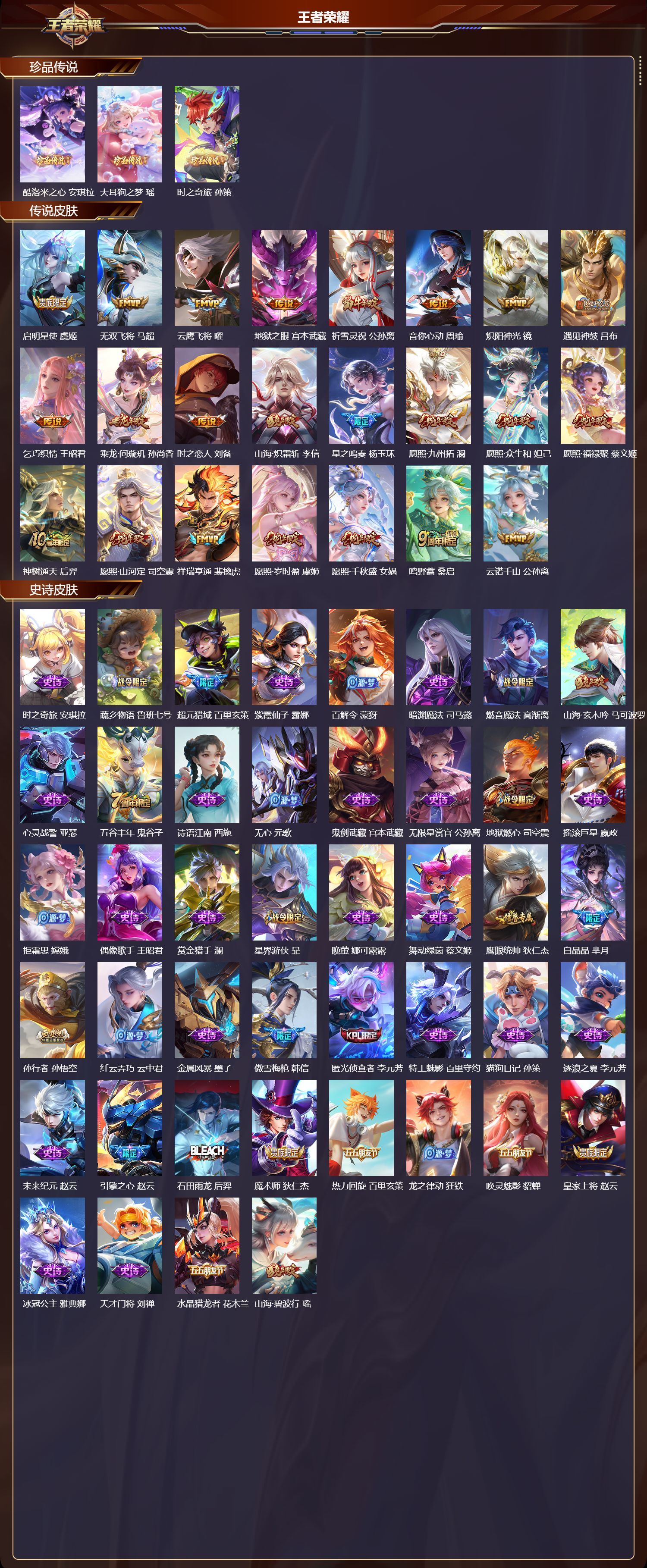 126英雄-227皮肤-苹果qq/永恒钻石/227皮肤/126英雄/0典藏/0珍品无双/0无双/3珍品传说/23传说/72史诗/8稀有英雄【3 珍品传说】酷洛米之心 安琪拉大耳狗之梦 瑶时之奇旅 孙策【23 传说皮肤】启明星使 虞姬无双飞将 马超云鹰飞将 曜地狱之眼 宫本武藏祈雪灵祝 公孙离音你心动 周瑜炽阳神光 镜遇见神鼓 吕布乞巧织情 王昭君乘龙·问璇玑 孙尚香时之恋人 刘备山海·炽霜斩
