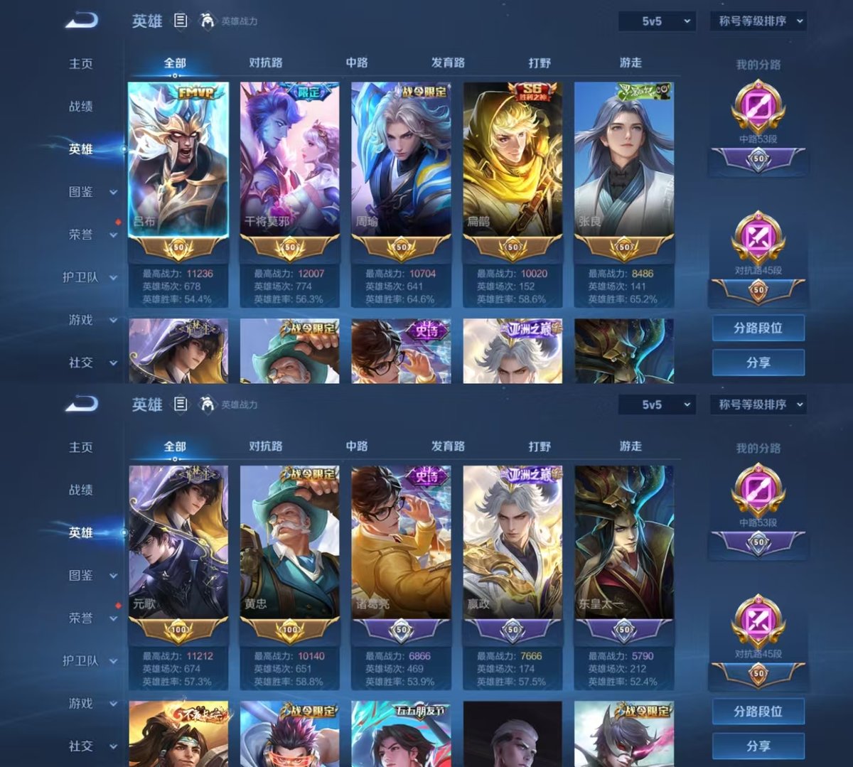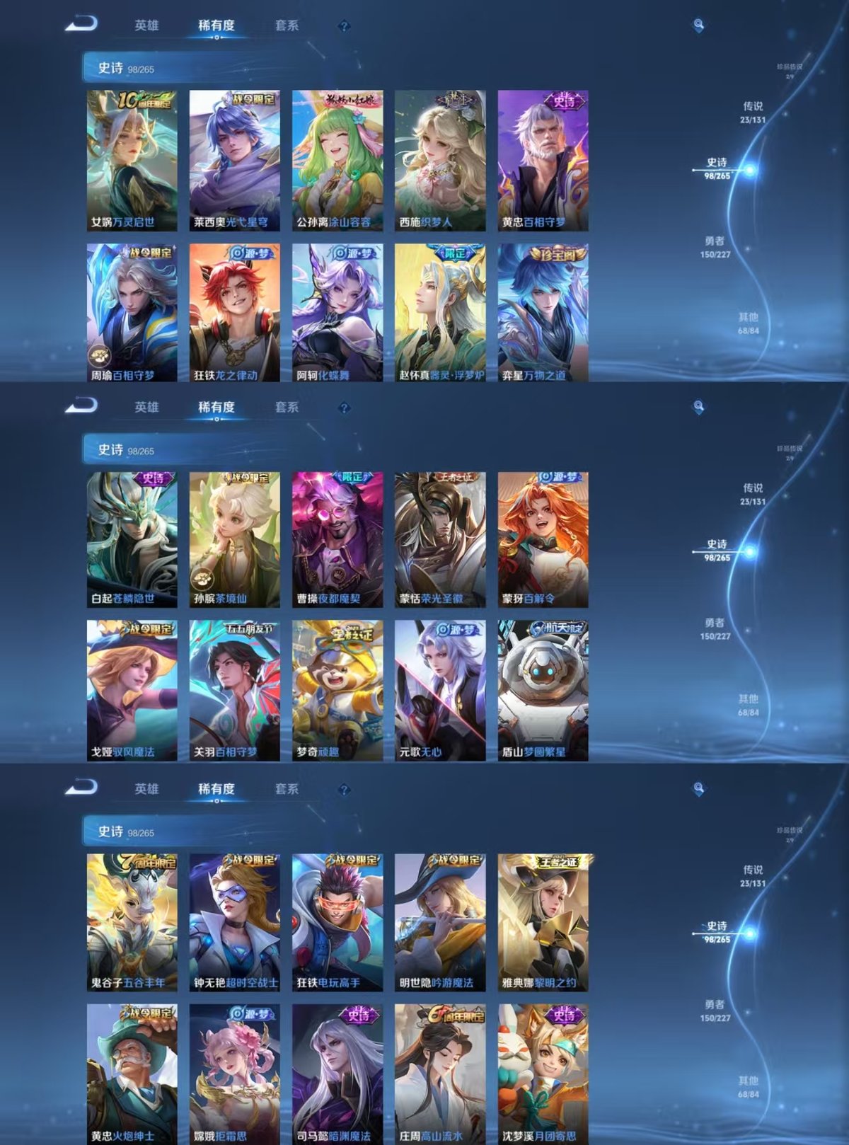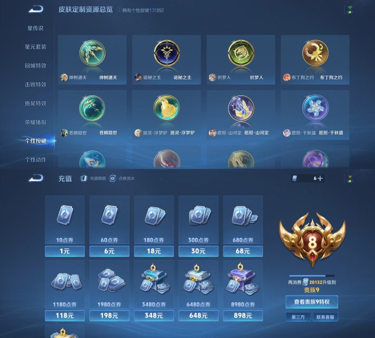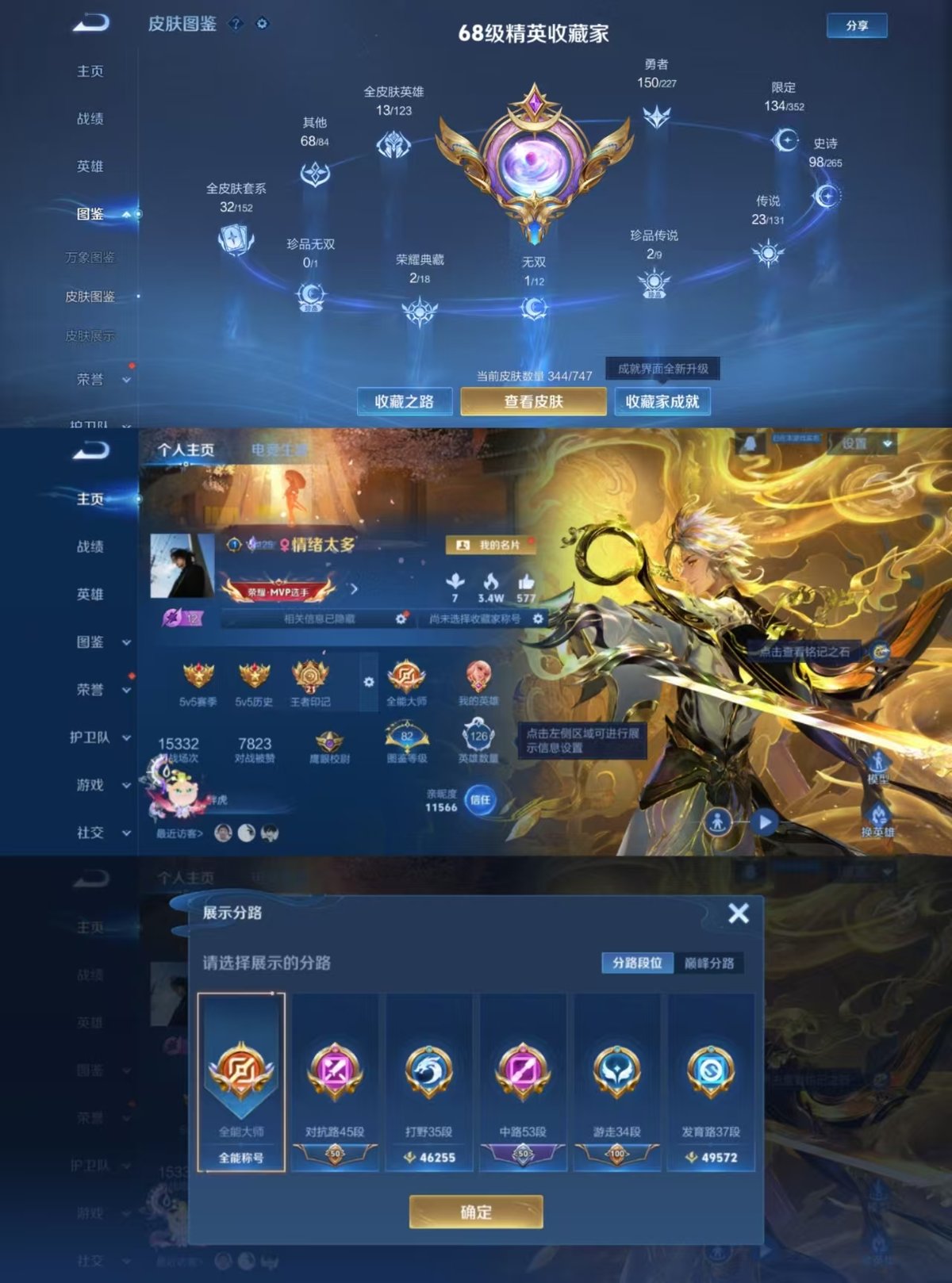 2324430-实名: 可修改 贵族等级: v8 英雄数: 126 皮肤数: 344 荣耀水晶: 鸣剑·曳影弑呛猎影 无双皮: 器灵·螭龙剑 珍品传说: 时之奇旅-孙策器灵·落星盏 传说皮: 黄金狮子座炽阳神光仲夏夜之梦地狱之眼音你心动-周瑜超时空战士-狄仁杰无双飞将琥珀纪元马超玄雷天君祥瑞亨通千劫归真诡秘之主神树通天 限定皮: 冰锋战神李小龙游园惊梦梁祝
