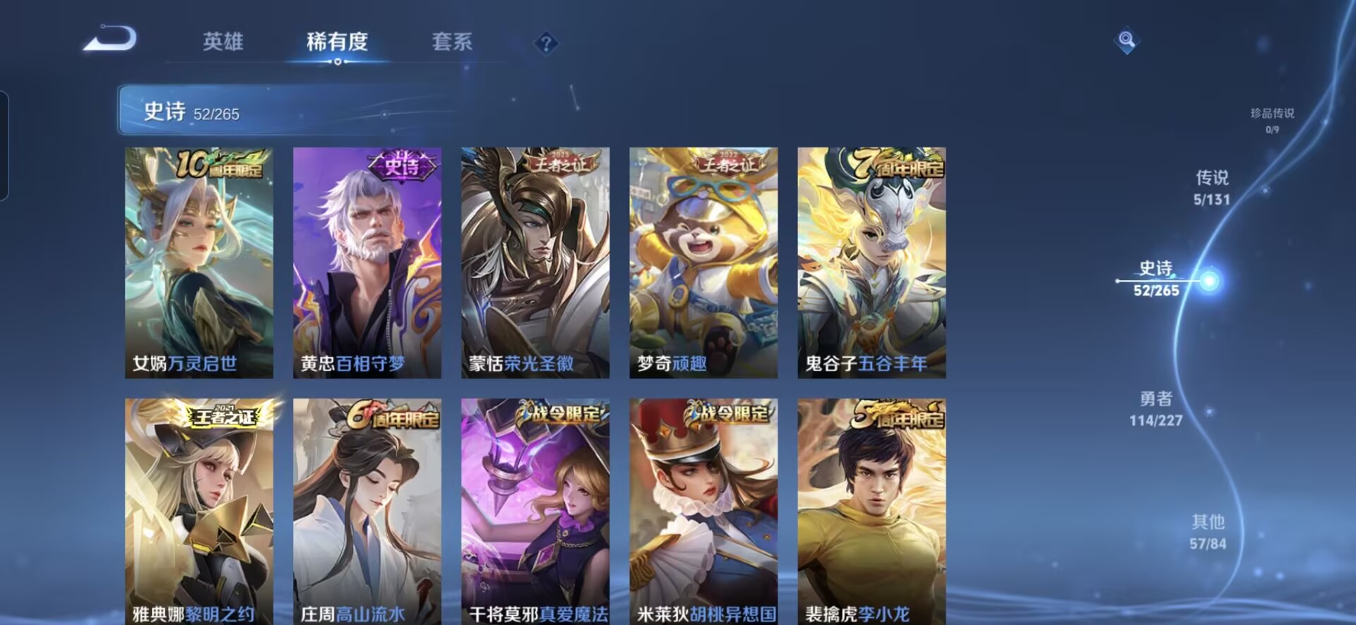 125英雄-229皮肤-【229皮肤-125英雄 v6 传说5 典藏1 星传说2 未来机甲 金色仲夏夜】安卓q-229皮肤-125英雄 【典藏皮肤】 杀手不太冷 【传说皮肤】 鸣野蒿 仲夏夜之梦 久胜战神 冠军飞将 末日机甲 【史诗皮肤】 时之彼端 如梦令 布丁狗之约 谧流熔炉 电玩小子 至尊宝 踏浪烽翎 聚星闪耀 荣光圣徽 百相守梦 万灵启世 顽趣 魅语 舞动绿茵 幽灵船长 功夫厨神 魅力维加斯