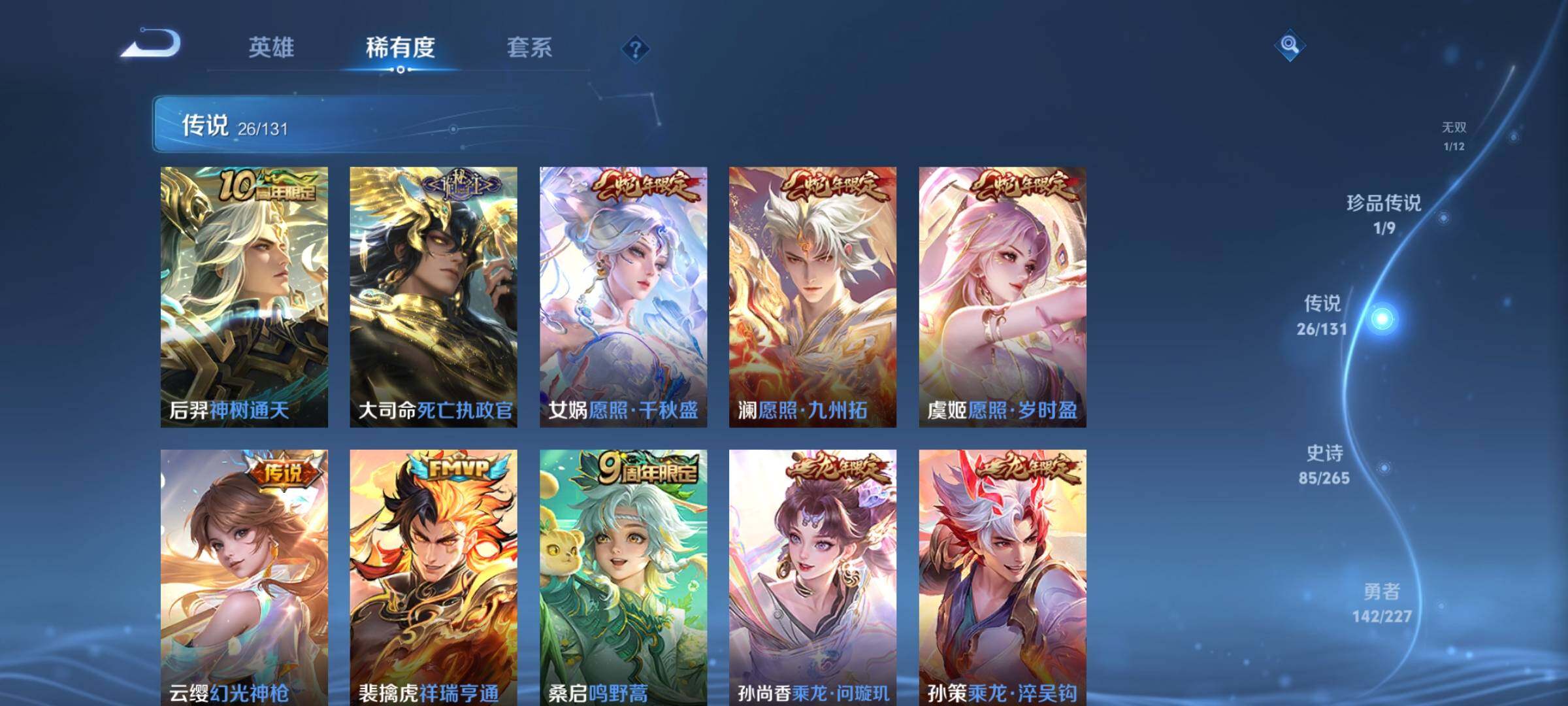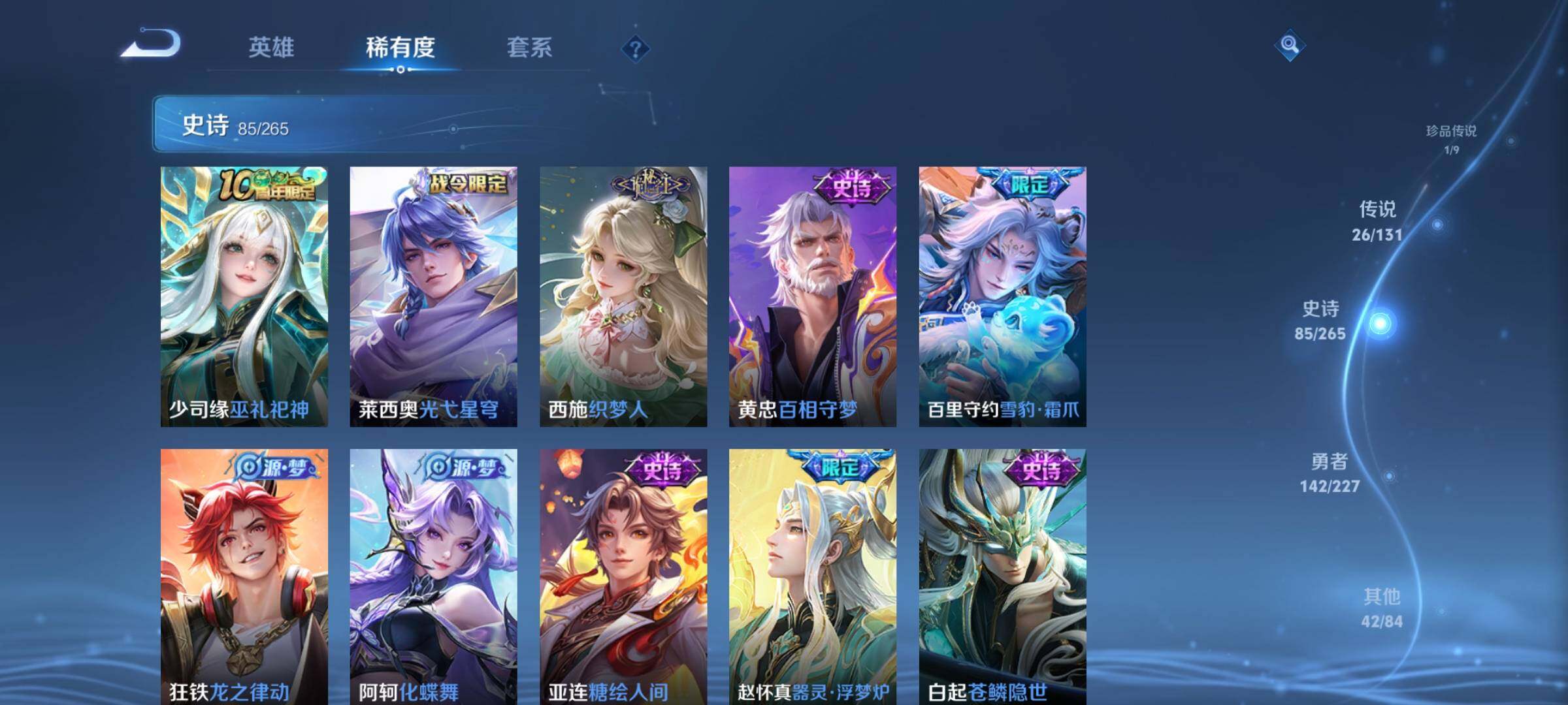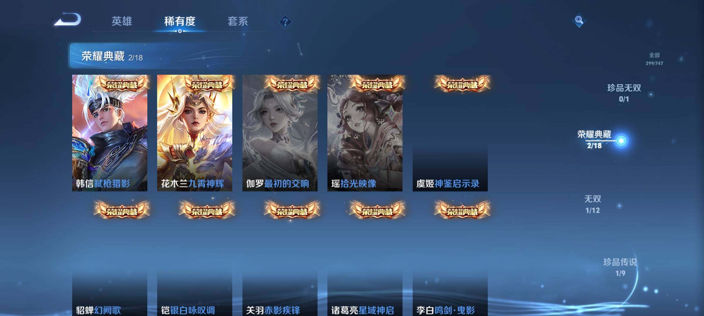 2324572-q-v9-最强王者段位-打野25段,,发育路16段,4星元岁雨灵司,,幽冥之眼,星际治安官,未来机甲,127英雄-299皮肤-2典藏皮肤-1无双-1珍品传说-26传说-85史诗 【英雄全皮】:鬼谷子全皮,马超全皮,影全皮 【荣耀典藏】:花木兰九霄神辉,韩信弑呛猎影 【无双皮肤】:韩信群星魔术团 【珍品传说】:暃朽木白哉 【传说皮肤】:后羿神树通天,大司命死亡执政官,女娲愿照千