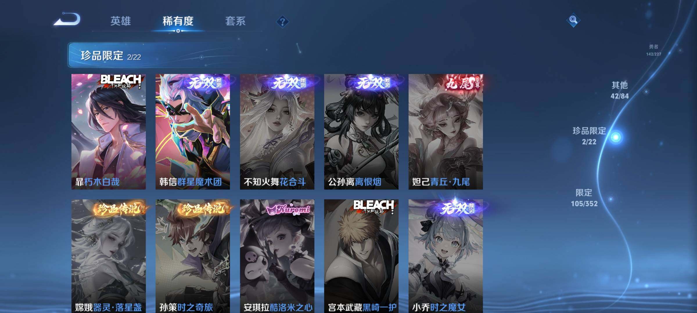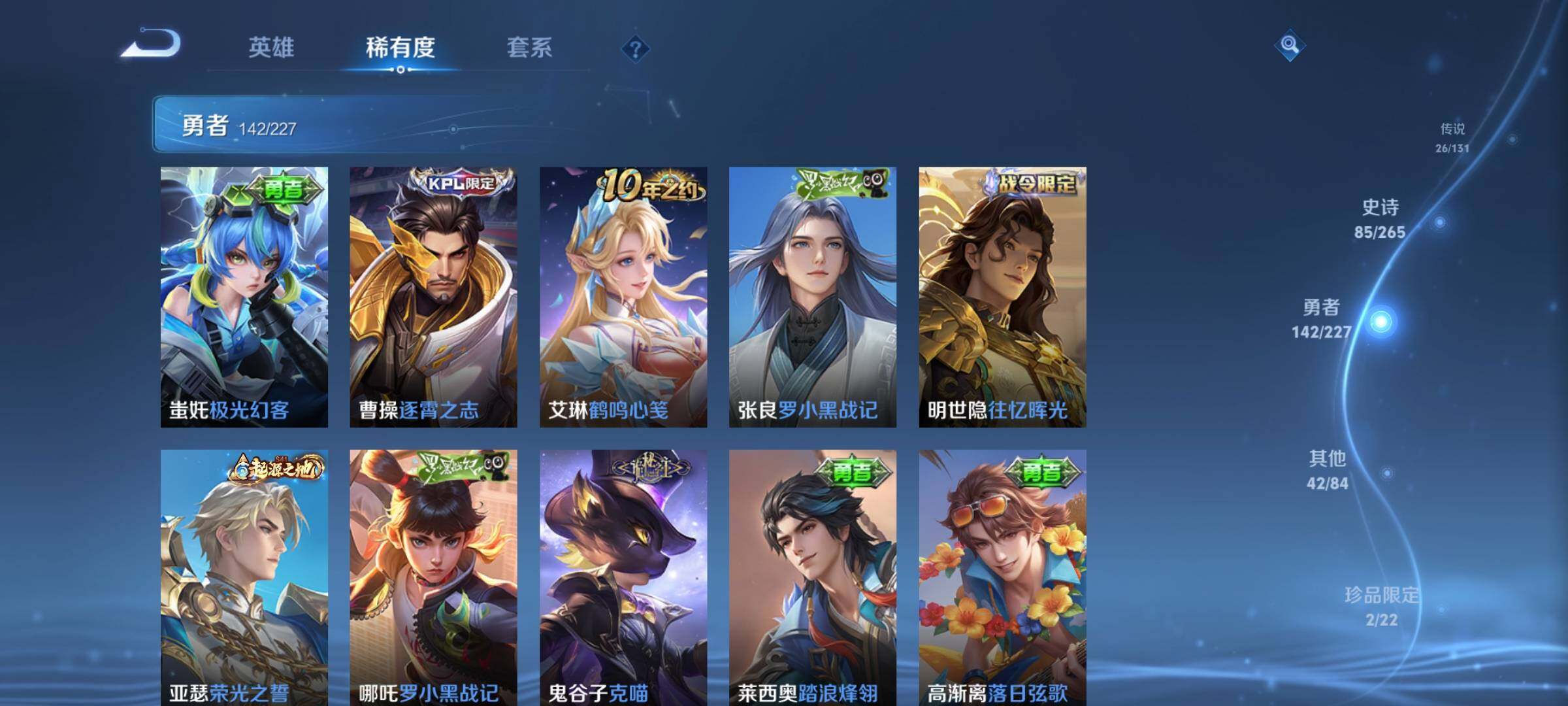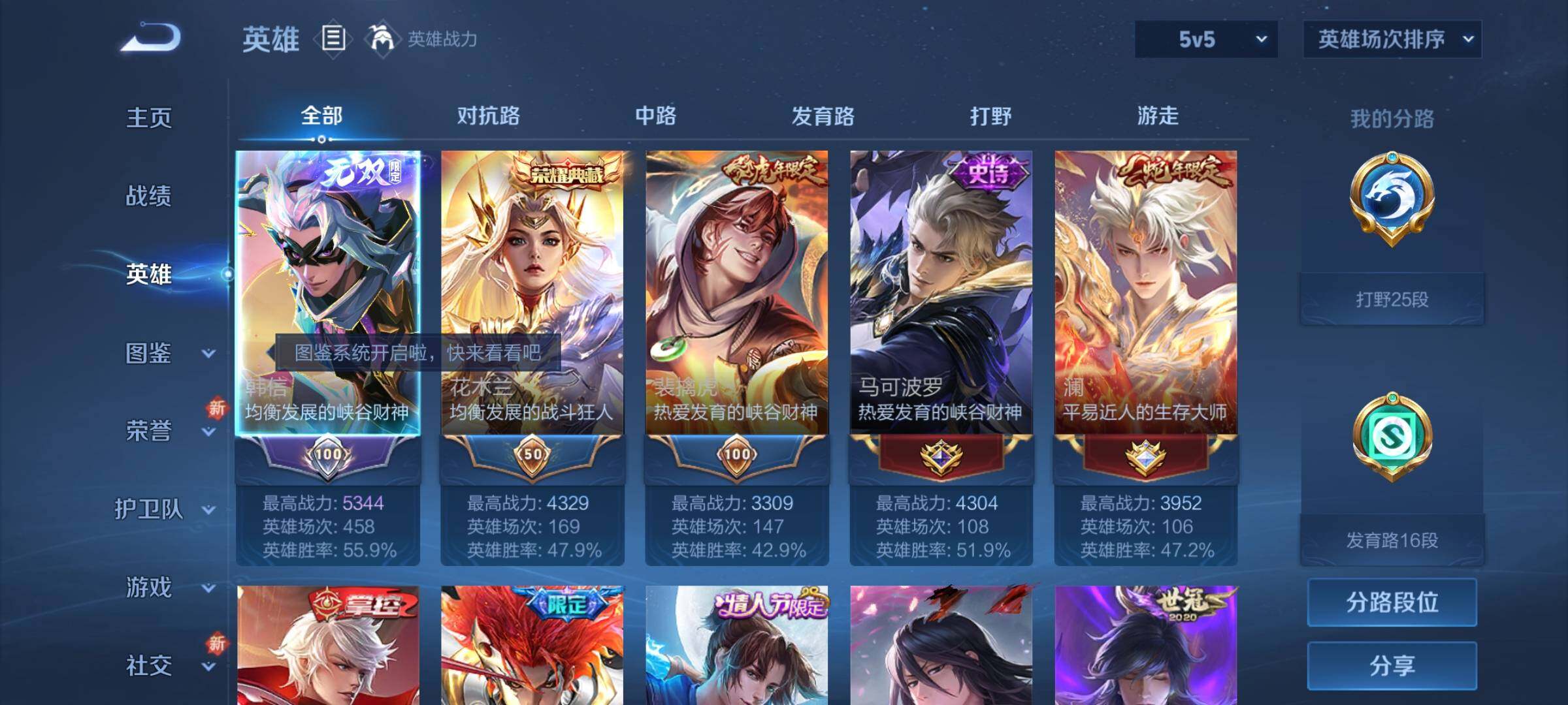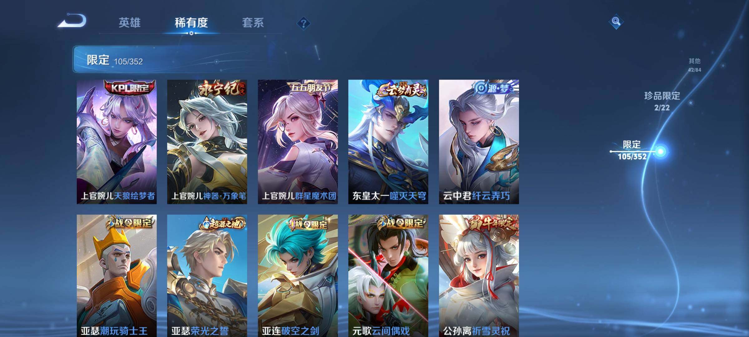2324572-q-v9-最强王者段位-打野25段,,发育路16段,4星元岁雨灵司,,幽冥之眼,星际治安官,未来机甲,127英雄-299皮肤-2典藏皮肤-1无双-1珍品传说-26传说-85史诗 【英雄全皮】:鬼谷子全皮,马超全皮,影全皮 【荣耀典藏】:花木兰九霄神辉,韩信弑呛猎影 【无双皮肤】:韩信群星魔术团 【珍品传说】:暃朽木白哉 【传说皮肤】:后羿神树通天,大司命死亡执政官,女娲愿照千