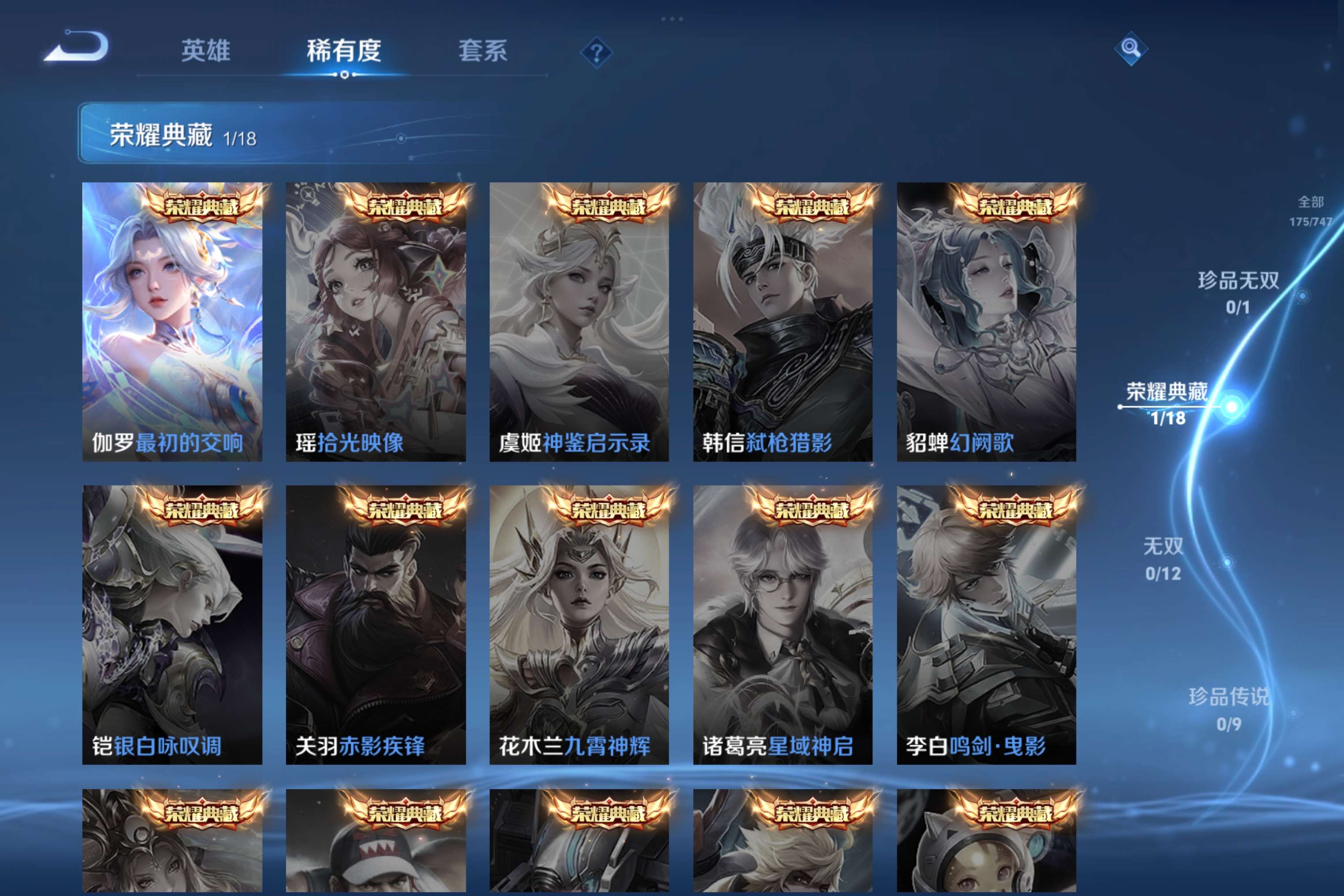125英雄-175皮肤-安卓qq-可以二次-v7-无双王者/175皮肤/125英雄/1典藏/0珍品无双/0无双/0珍品传说/10传说/33史诗/7稀有英雄【1 典藏皮肤】最初的交响 伽罗【10 传说皮肤】仲夏夜之梦 貂蝉霜月吟 露娜乞巧织情 王昭君乘龙·问璇玑 孙尚香久胜战神 干将莫邪愿照·九州拓 澜幻光神呛 云缨愿照·岁时盈 虞姬鸣野蒿 桑启云诺千山 公孙离