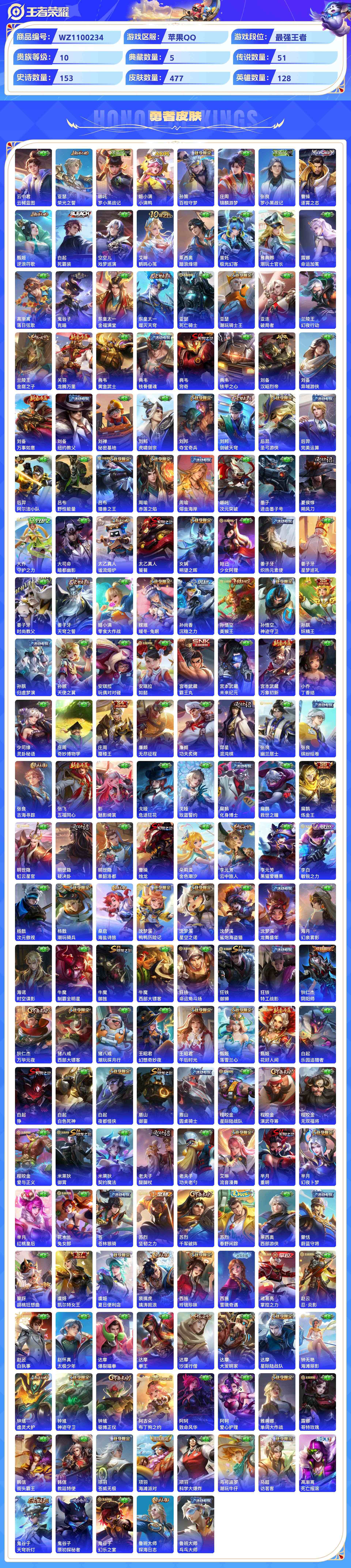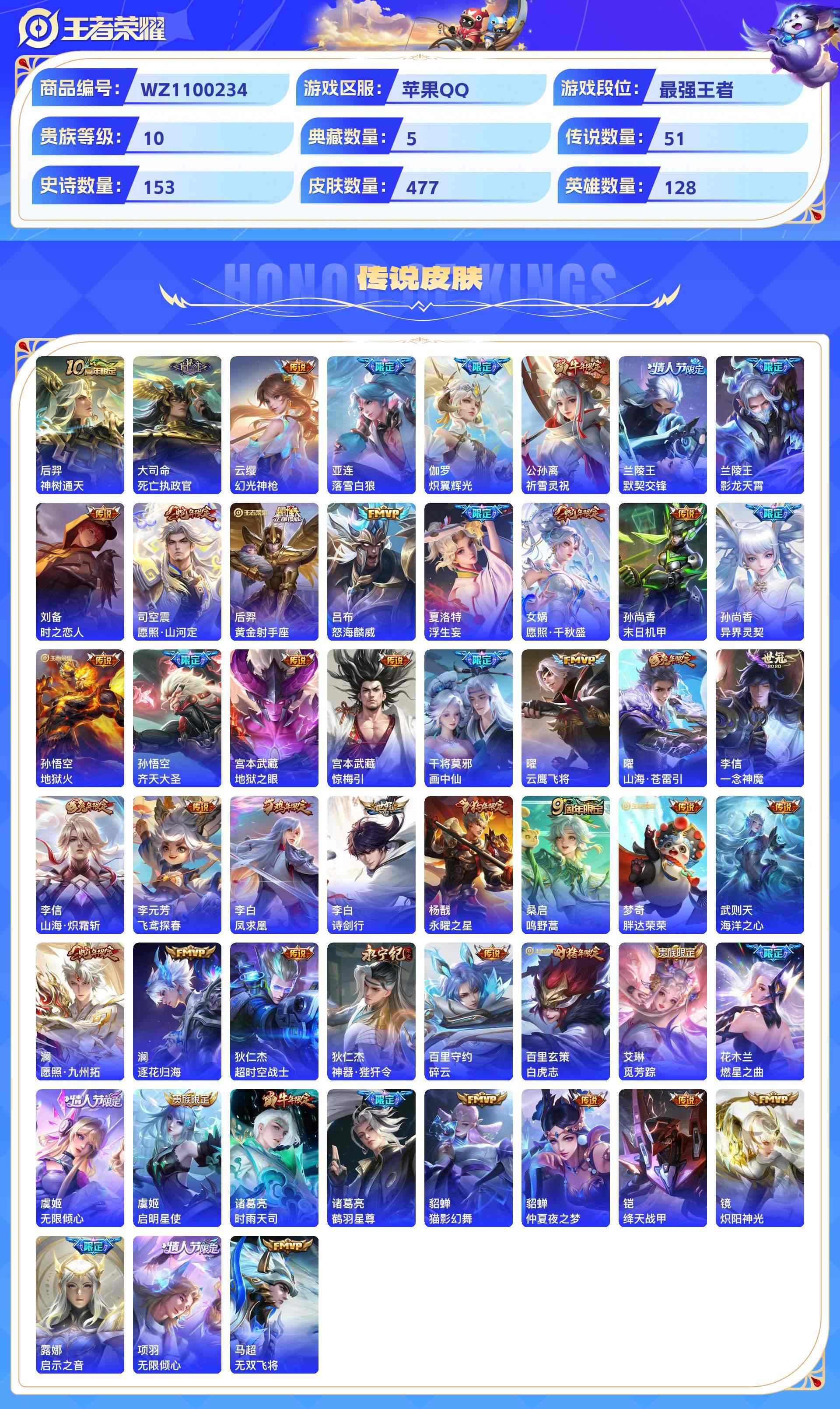 wz1100234|精品金标号可二次苹果qq 贵族10级1金标(亚连) 477皮 5典藏 (全息碎影鸣剑·曳影九霄神辉弑呛猎影星空梦想)2珍品传说(黑崎一护怪盗基德) 1无双(器灵·螭龙剑)51传说(神树通天死亡执政官幻光神呛落雪白狼炽翼辉光祈雪灵祝默契交锋影龙天霄时之恋人愿照·山河定黄金射手座怒海麟威浮生妄愿照·千秋盛末日机甲异界灵契地狱火齐天大圣) 153史诗5星传说38个性按键2天幕