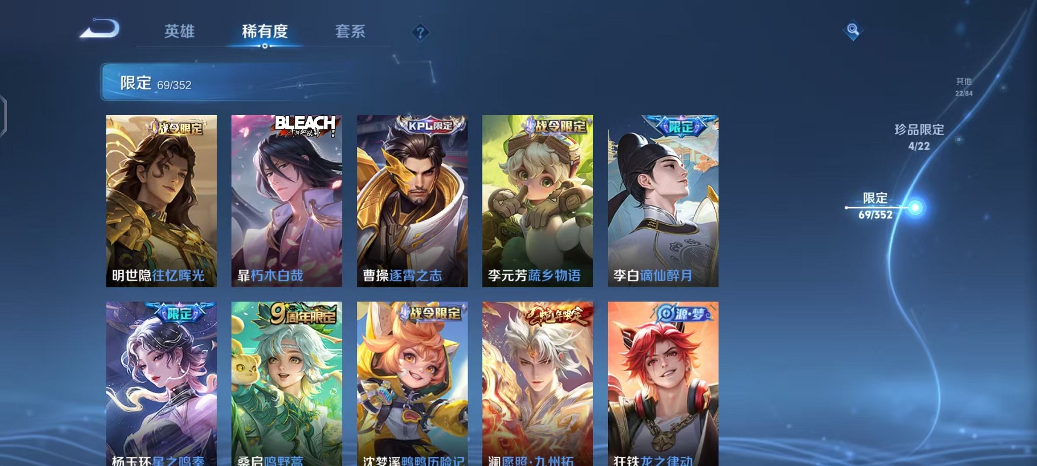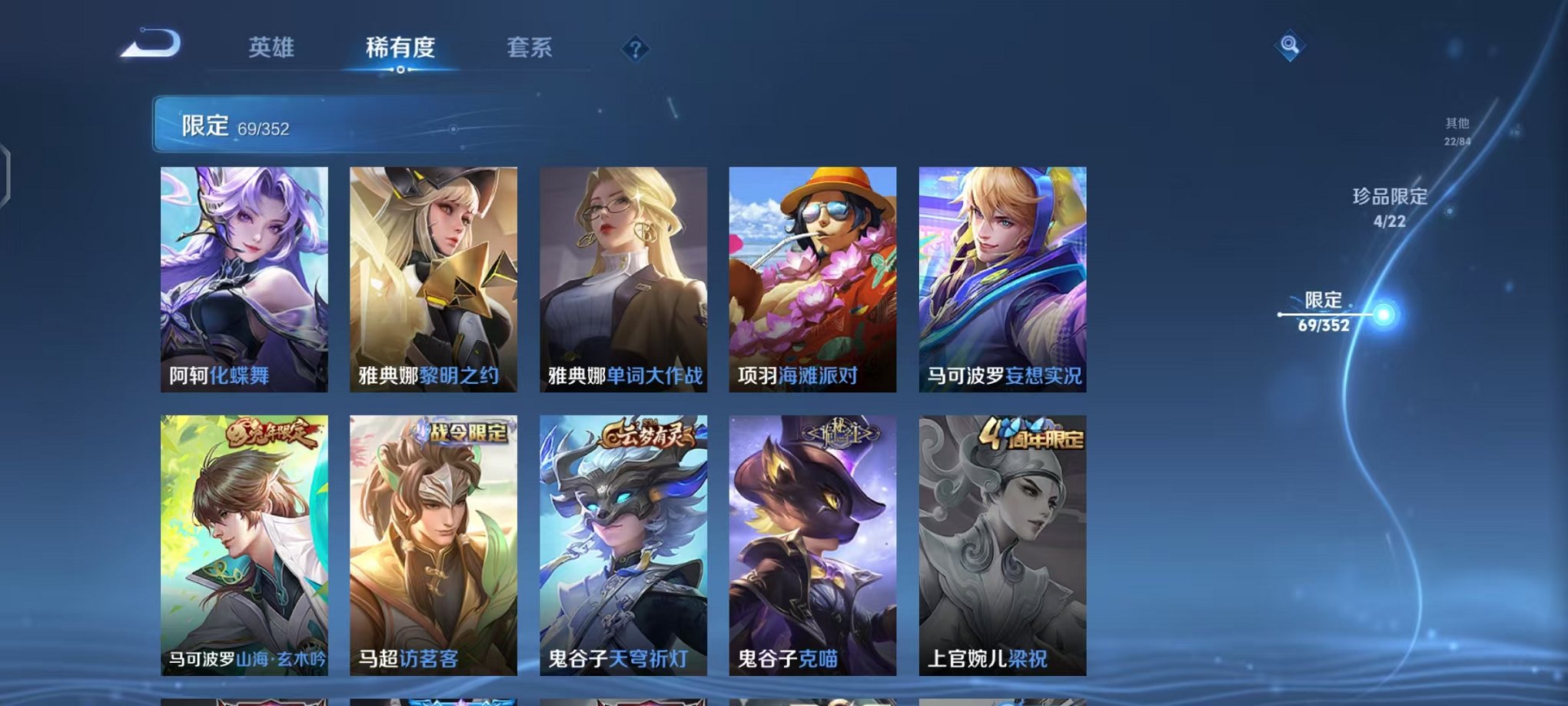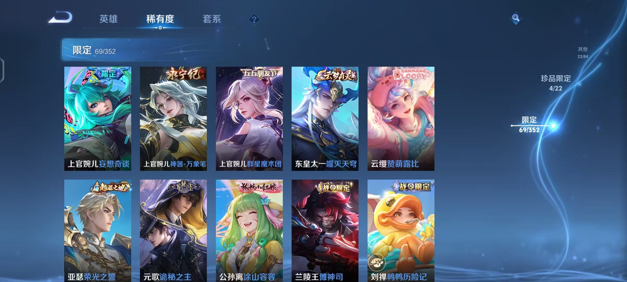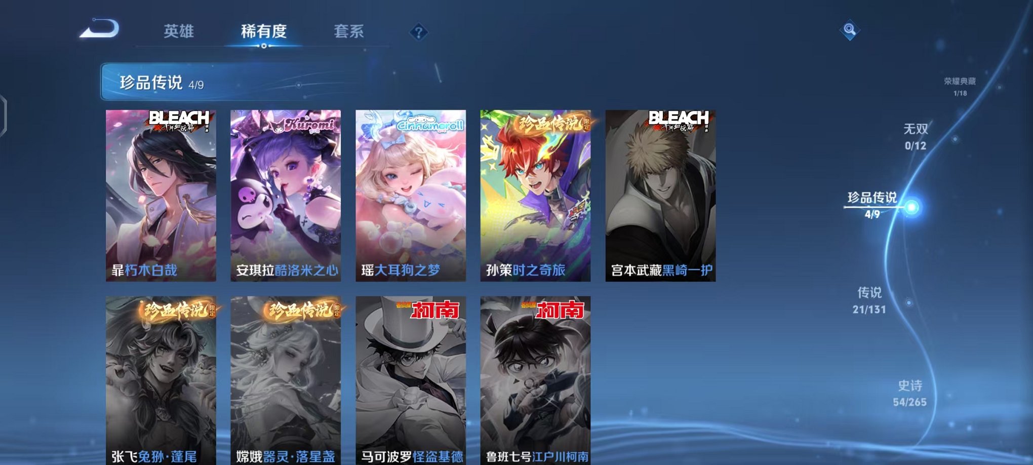 【4珍品 1水晶21传说可秒换绑】安卓qq-125英雄-191皮肤【1水晶】最初的交响【珍品传说】酷洛米之心 大耳狗之梦 朽木白哉 时之奇旅【传说皮肤】浮生妄 乘龙·问璇玑 神树通天 逐花归海 妄想奇谈 鸣野蒿 妄想实况 星之鸣奏 诡秘之主 愿照·岁时盈 愿照·九州拓 愿照·千秋盛 海洋之心 花朝如约 黄金狮子座 超时空战士 一念神魔 地狱火 云鹰飞将 启明星使 怒海麟威【史诗皮肤】万灵启世 巫