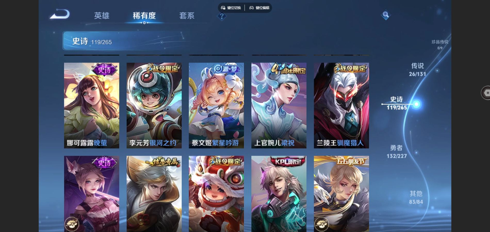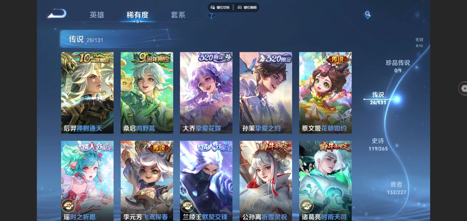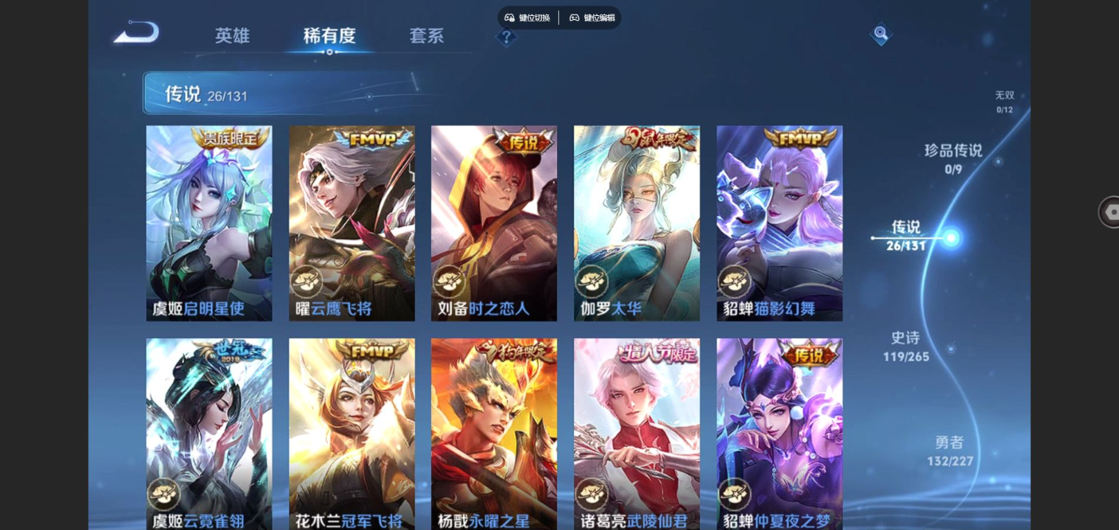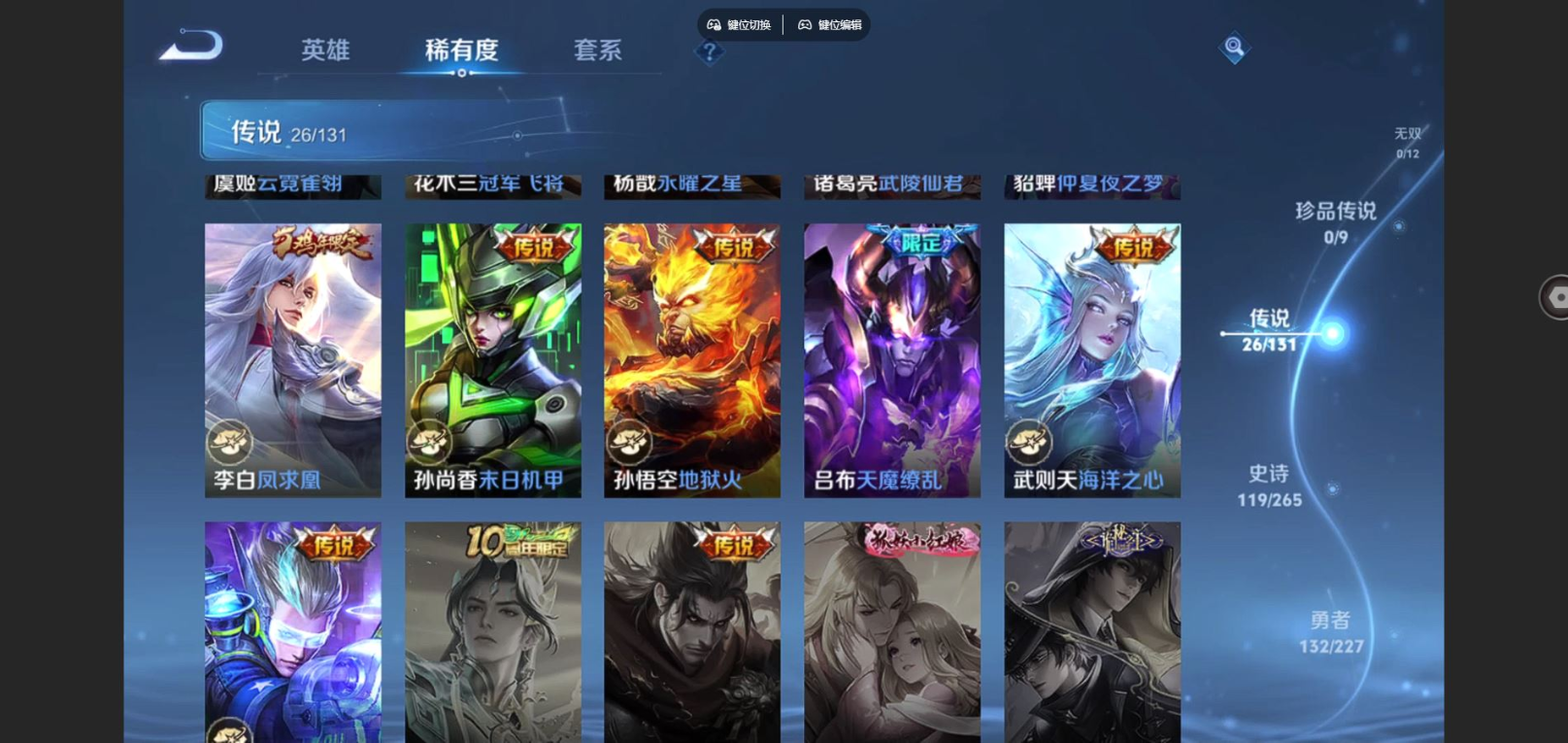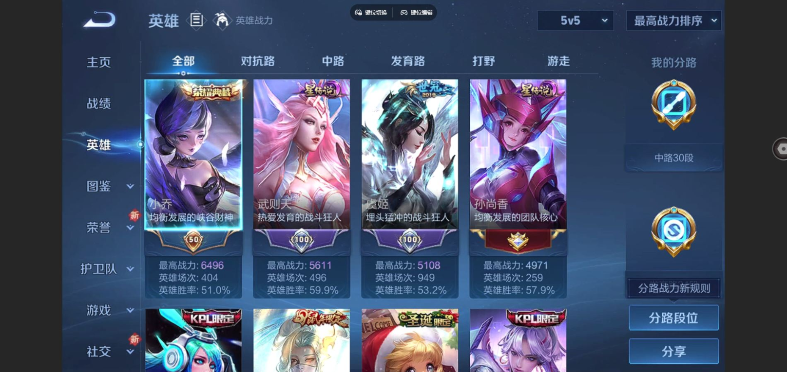 2325433-127英雄-362皮肤-v9-3典藏26传说 中路30段 3星传说幻海之心 未来机甲 金色仲夏夜 【典藏】 武则天 星空梦想 天鹅之梦 【传说】 凤求凰 神树通天 鸣野蒿 启明星使 时雨天司 祈雪灵祝 太华 默契交锋男 永曜之星 天魔缭乱 武陵仙君 时之祈愿女 挚爱之约 挚爱花嫁 地狱火 云鹰飞将 猫影幻舞 冠军飞将 云霓雀翎 超时空战士男 飞鸢探春 时之恋人男 仲夏夜之梦