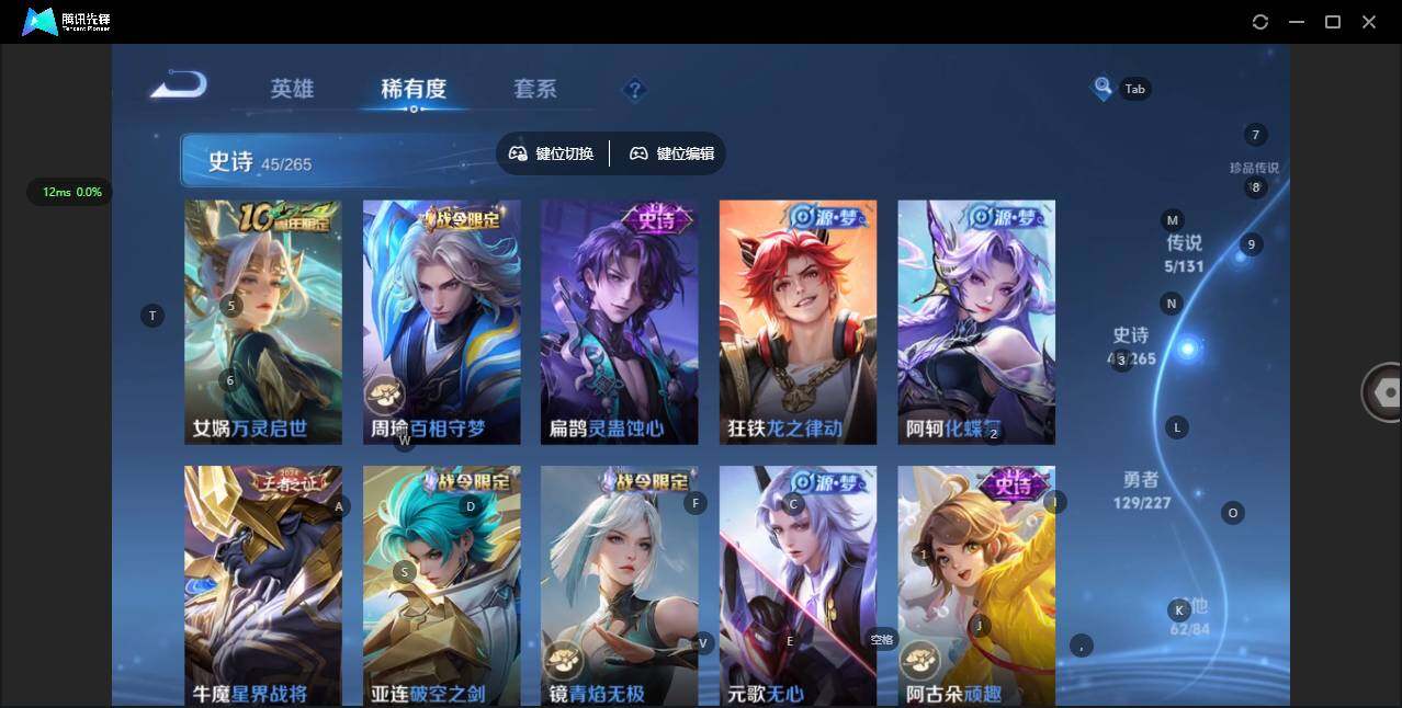 126英雄-242皮肤-【有社交限制 不影响游戏!】贵族等级: v7 英雄数: 126 皮肤数: 242 珍品传说: 酷洛米之心 星传说: 破晓神光 传说皮: 黄金射手座幻光神呛神树通天 限定皮: 冰锋战神李小龙梁祝美猴王大圣娶亲鸣野蒿逐霄战戟愿照·千秋盛