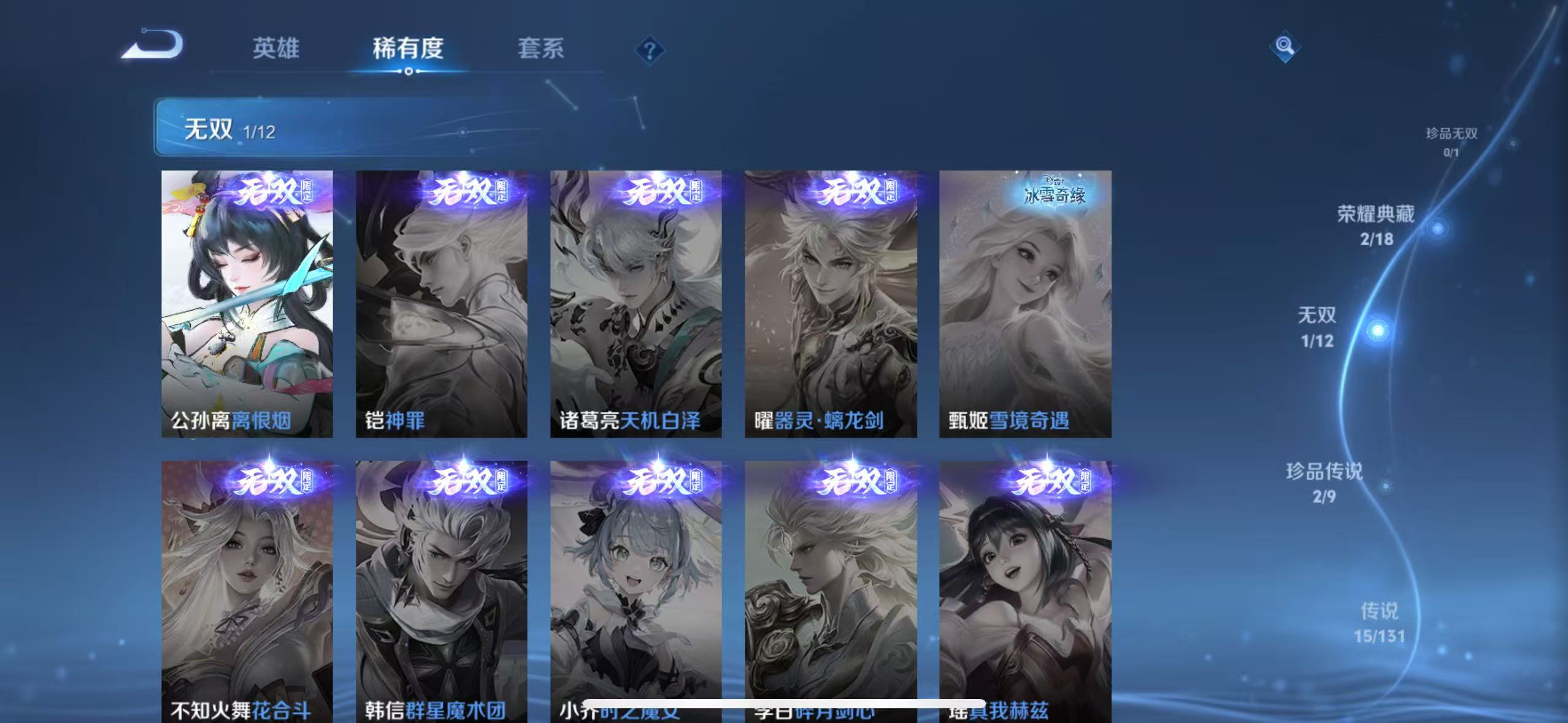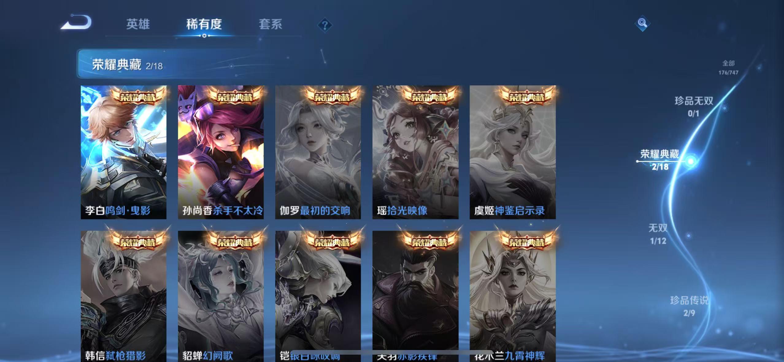 txwz25388 v8 低场次 射手国标号 小魔方 小国标孙尚香1.5w 金标公孙离1.1w 射手皮多多 176皮 2典藏(杀手不太冷 鸣剑·曳影)1无双(离恨烟)2珍品(怪盗基德 江户川柯南)15传说(永恒水手月亮 飞鸢探春 李 逐花归海 云诺千山 碎云 神器·狴犴令 乞巧织情 末日机甲 启明星使 琥珀纪元 愿照·岁时盈 炽阳神光 黄金白羊座)49史诗(水果甜心 箭羽风息 蔬乡物语 百相守梦 乘龙·忆丹青 涂山容容 东方月初 一生所爱 玉兔公主 蜜橘之夏)