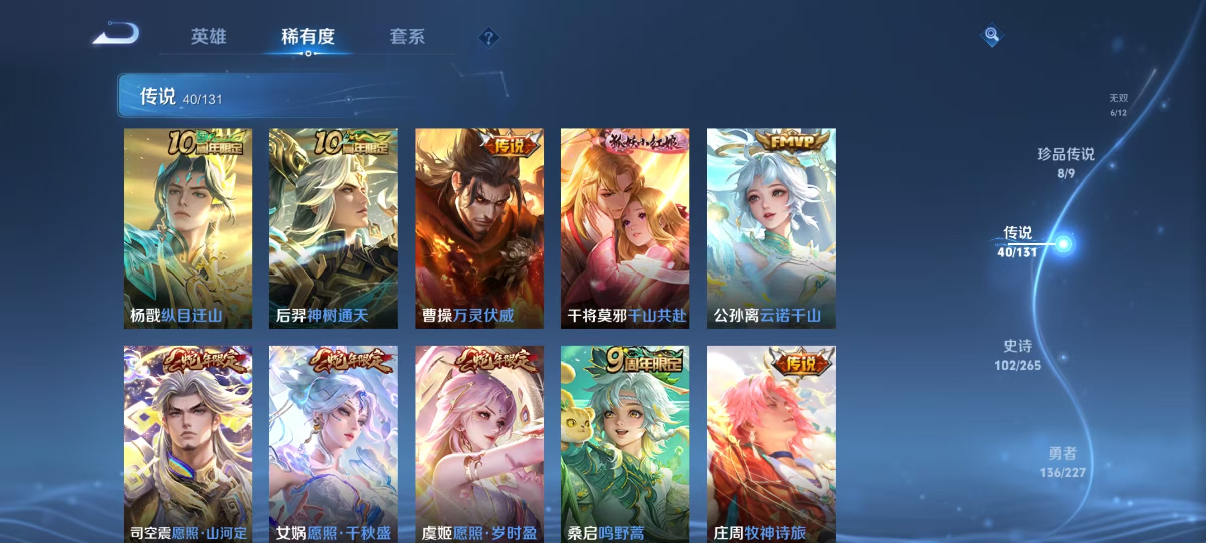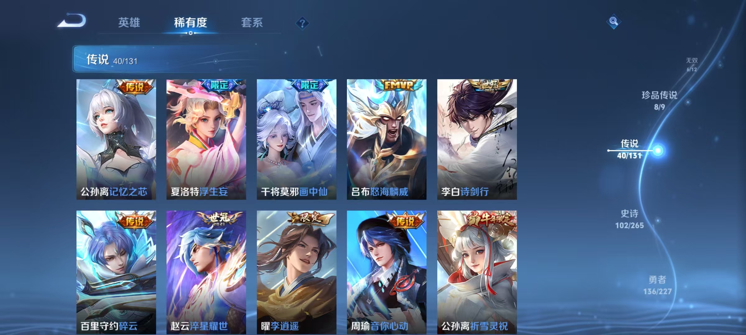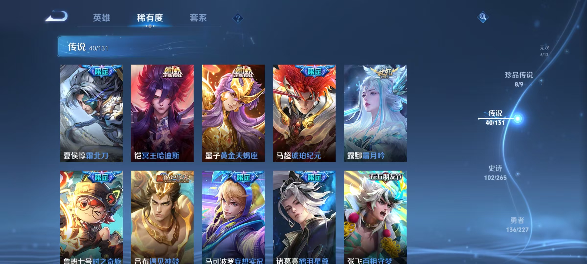 v9 精氪号 背包亲密度道具多多 350皮 3典藏(弑呛猎影 鸣剑·曳影 无限飓风号)6无双(时之魔女 群星魔术团 神罪 雪境奇遇 天机白泽 器灵·螭龙剑)8珍品(器灵·落星盏 黑崎一护 怪盗基德 时之奇旅 兔狲·蓬尾 江户川柯南 朽木白哉 大耳狗之梦)40传说(久胜战神 超时空战士 牧神诗旅 千山共赴 时雨天司 鸣野蒿 遇见神鼓 霜月吟 时之奇旅 鹤羽星尊 百相守梦 冥王哈迪斯 怒海麟威 浮生妄 淬星耀世 画中仙 记忆之芯 霜北刀 李 纵目迁山 云诺千山 碎云 黄金天蝎座 祈雪灵祝 末日机甲 愿照·山河定 神树通天 黄金射手座 音你心动 启明星使 万灵伏威 愿照·千秋盛 地狱之眼 琥珀纪元 愿照·岁时盈 一念神魔 妄想实况 云鹰飞将 黄金白羊座 诗剑行)102史诗(飞衡 青春决赛季 傲雪梅呛 至尊宝 御风骁将 山海·玄木吟 大圣娶亲 谪仙醉月 东方月初 埋骨钱)棉花糖聚会天幕 怪盗基德天幕