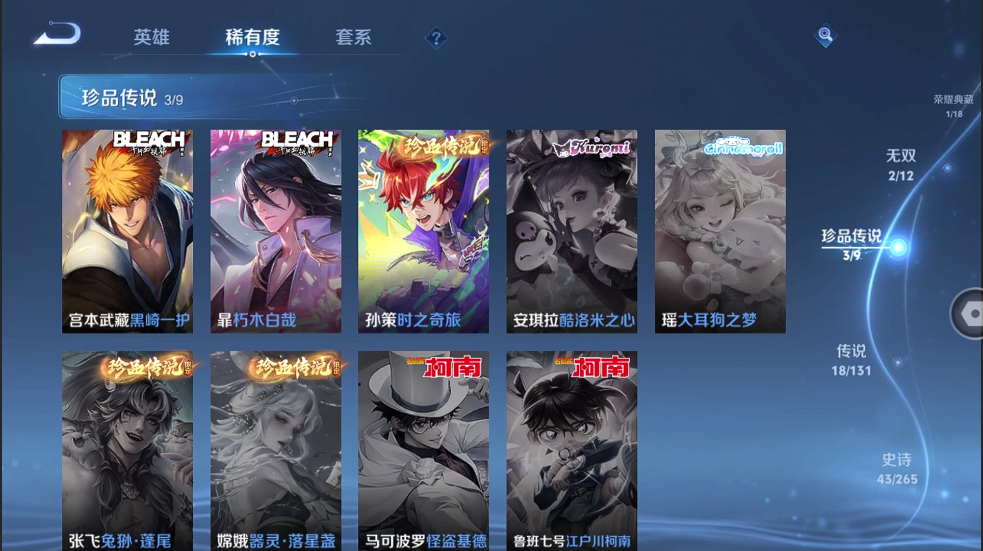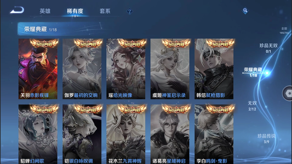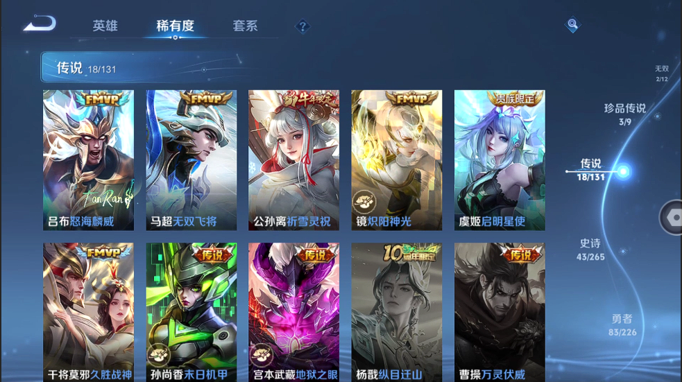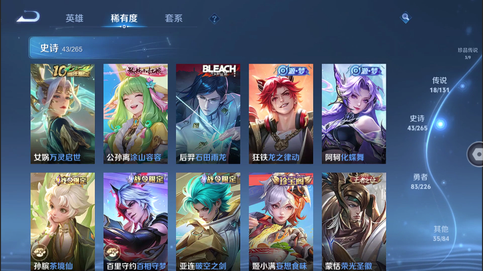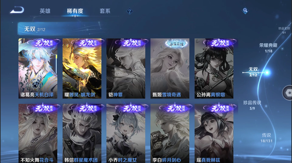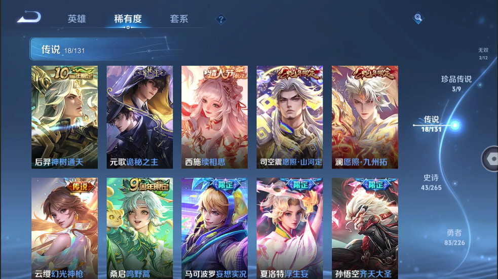 【王者荣耀】【lywz21226】珍品无双0 典藏1 无双2 珍品传说3 传说18 史诗43 英雄125 皮肤185 贵族8级 荣耀典藏:赤影疾锋__无双皮肤:器灵·螭龙剑|天机白泽__珍品传说:孙策-时之奇旅|朽木白哉|黑崎一护__传说皮肤:鸣野蒿|无双飞将|炽阳神光|启明星使|地狱之眼|久胜战神|浮生妄|孙尚香-末日机甲|齐天大圣|怒海麟威|祈雪灵祝|妄想实况|幻光神呛|愿照·山河定|愿照·九州拓|续相思|诡秘之主|神树通天__稀有限定:至尊宝|青龙志|一生所爱|引擎之心|狮舞东方|暗影游猎|白昼王子|古海寻踪|海滩派对|海盐诗旅|皇家上将|辉光之辰|蓝屏警告|迷踪丽影|魔术师|擒涛扼浪|穷奇|荣光圣徽|朔风刀|探海日志|饕餮|天狼狩猎者|妄想食味|阴阳师|银河之约|遇见飞天|御旌|御銮|御狮|暗隐猎兽者|暗渊魔法|冰冠公主|德古拉伯爵|鬼剑武藏|节奏热浪|魅力维加斯|水果甜心|滕王阁序|赵云-未来纪元|星夜王子|鹰眼统帅|逐浪之夏|紫霞仙子|百里守约-百相守梦|老夫子-百相守梦|噬灭天穹|敬我三分|破空之剑|曙光守护者|舞动绿茵|特工魅影|心灵骇客|茶境仙|谧流熔炉|化蝶舞|御霄|朔望之晖|钟馗-神迹守卫|孙悟空-神迹守卫|访茗客|龙之律动|布丁狗之约|虚灵犬护|石田雨龙|逆浪荇歌|涂山容容|荣光之誓|万灵启世|鹤鸣心笺__优质皮肤:尼罗河女神|埃及法老|孤猎|激情绿茵|海之征途|冰刃幻境|超能战警|英喵野望|维京掠夺者|踏雪寻梅|启蛰|战争骑士|伊势巫女|威尼斯狂欢|第七人偶|芝加哥教父|街头旋风|绝影神呛|荷鲁斯之眼|幸存者|隐刃|特种部队|三太子|精灵王|范海辛|龙域领主|花间舞|魇语军师|灼热之刃|精准探案法|圣殿之光|修竹墨客|动物派对|功夫炙烤|潮玩探月行|次元突破|鲨炮海盗猫|丁香结|虹云星官|坚韧之力|功夫老勺|幻想奇妙夜|海滩丽影|死亡骑士|黄金武士|少女阿狸|天使之翼|忍·炎影|街头霸王|教廷特使|潮玩牛仔|次元傲视|无尽征程|黑桃队长|进击墨子号|拳王|救世之瞳|白色死神|程咬金-星际陆战队|哥特玫瑰|魅影绮裳|西施-雪境奇遇|星梦巡礼|景韶洛都|浪漫序章|雾都夜雨|逐霄战戟|铁骨偃魂|龙腾万里|孙悟空-西部大镖客|鲁班大师-归虚梦演|龙舞盛年|汉昭烈帝|乓乓大师|猎兽之王|曜-归虚梦演|化身博士|花好人间|万象初新|苍林狼骑|蔚蓝守将|劲辣红锅|秘证寻踪|春野闲踪|灵野札记|玫蓝誓约|命运加冕|潮玩士官长|死霸装|踏浪烽翎|哪吒-罗小黑战记__贵族等级:贵族8级__王者段位:无双王者打野皮肤号 14按键 1典藏2无双 3珍品传说 启明星使,诡秘之主,浮生妄,愿照·山河定,愿照·九州拓等限定皮肤