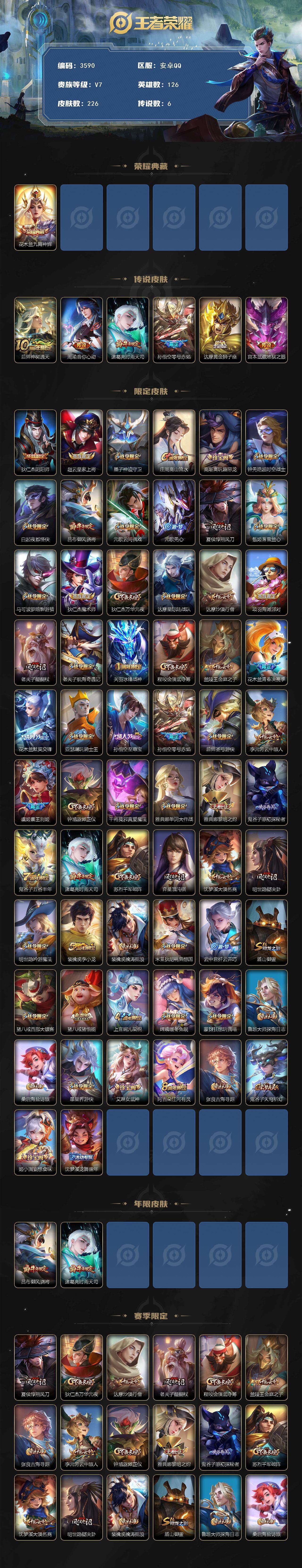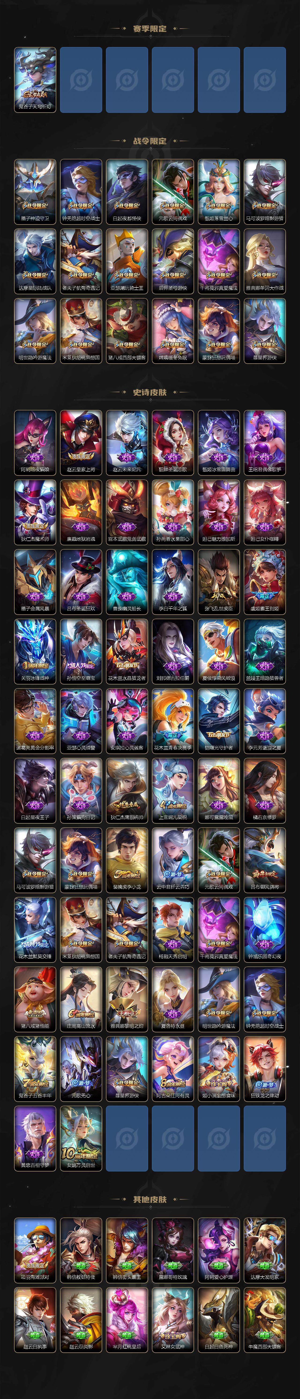 [14931451]安卓q-v7-最强王者段位-126英雄-226皮肤-1典藏皮肤-6传说-62史诗 【英雄全皮】:鬼谷子全皮 【荣耀典藏】:花木兰九霄神辉 【传说皮肤】:后羿神树通天,周瑜音你心动,诸葛亮时雨天司,孙悟空零号赤焰,达摩黄金狮子座,宫本武藏地狱之眼 【限定皮肤】:狄仁杰阴阳师,赵云皇家上将,墨子神迹守卫,庄周高山流水,高渐离玩趣恶龙,钟无艳超时空战士,白起夜都怪侠,吕布御风骁将,元歌云间偶戏,元歌无心,夏侯惇朔风刀,甄姬落雪兰心,马可波罗暗影游猎,狄仁杰魔术师,狄仁杰万华元夜,达摩星际陆战队,达摩沙漠行僧,项羽海滩派对,老夫子醍醐杖,老夫子航海奇遇记,关羽冰锋战神,程咬金演武夺筹,兰陵王金庭之子,花木兰青春决赛季,花木兰默契交锋,亚瑟潮玩骑士王,孙悟空至尊宝,孙悟空零号赤焰,后羿圣弓游侠,李元芳云中旅人,虞姬霸王别姬,钟馗驱傩正仪,干将莫邪真爱魔法,雅典娜单词大作战,雅典娜黎明之约,鬼谷子原初探秘者,鬼谷子五谷丰年,诸葛亮时雨天司,苏烈千军破阵,弈星混沌棋,沈梦溪大漠名商,明世隐疑决卦,明世隐吟游魔法,裴擒虎李小龙,裴擒虎擒涛扼浪,米莱狄胡桃异想国,云中君纤云弄巧,盾山御銮,猪八戒西部大镖客,猪八戒猪悟能,上官婉儿梁祝,嫦娥暖冬兔眠,蒙犽狂想玩偶喵,鲁班大师探海日志,桑启海盐诗旅,暃星界游侠,艾琳女武神,阿古朵江河有灵,张良古海寻踪,鬼谷子天穹祈灯,姬小满妄想食味,沈梦溪龙舞盛年 【年限皮肤】:吕布御风骁将,诸葛亮时雨天司 【赛季限定】:夏侯惇朔风刀,狄仁杰万华元夜,达摩沙漠行僧,老夫子醍醐杖,程咬金演武夺筹,兰陵王金庭之子,张良古海寻踪,李元芳云中旅人,钟馗驱傩正仪,雅典娜黎明之约,鬼谷子原初探秘者,苏烈千军破阵,弈星混沌棋,沈梦溪大漠名商,明世隐疑决卦,裴擒虎擒涛扼浪,盾山御銮,鲁班大师探海日志,桑启海盐诗旅,鬼谷子天穹祈灯 【战令限定】:墨子神迹守卫,钟无艳超时空战士,白起夜都怪侠,元歌云间偶戏,甄姬落雪兰心,马可波罗暗影游猎,达摩星际陆战队,老夫子航海奇遇记,亚瑟潮玩骑士王,后羿圣弓游侠,干将莫邪真爱魔法,雅典娜单词大作战,明世隐吟游魔法,米莱狄胡桃异想国,猪八戒西部大镖客,嫦娥暖冬兔眠,蒙犽狂想玩偶喵,暃星界游侠 【史诗皮肤】:阿轲暗夜猫娘,赵云皇家上将,赵云未来纪元,貂蝉圣诞恋歌,甄姬冰雪圆舞曲,王昭君偶像歌手,狄仁杰魔术师,廉颇地狱岩魂,宫本武藏鬼剑武藏