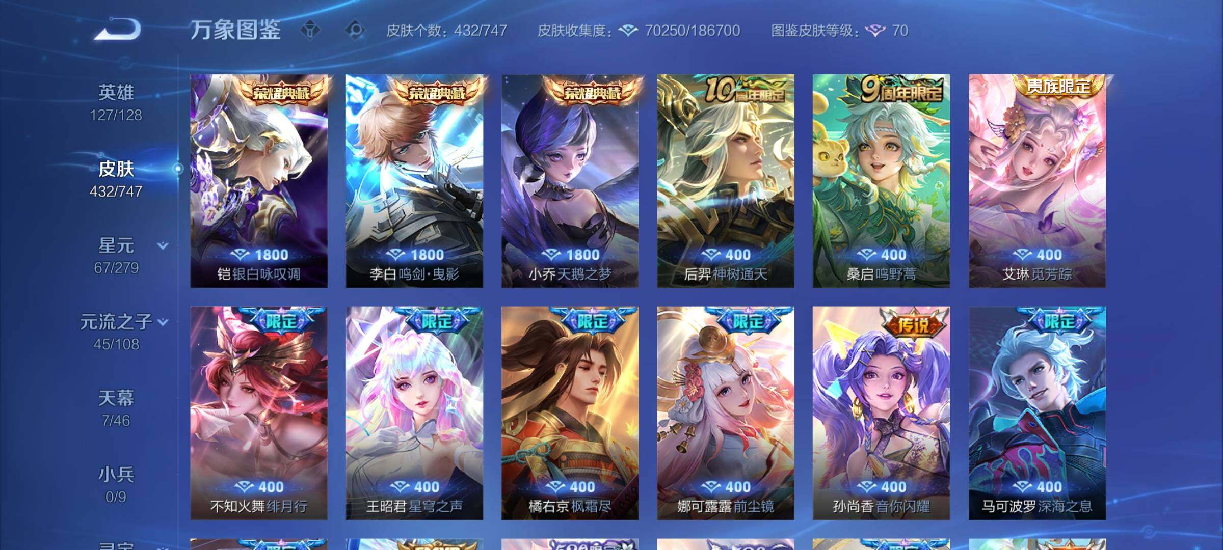 【店铺主推v10·紫瑶·天鹅之梦·鸣剑曳影·铠银白咏叹调·武则天·7天幕·绯月行·星穹之声·枫霜尽·前尘镜·深海之息·无尽星芒·瑶时之祈愿·寅虎赤拳·异界灵契·寅虎瑞焰·启示之音·补天·可二次】w9007-安卓q区服-127英雄-432皮肤-26王者印记-230铭文-贵族积分19w【贵族10】【4典藏·2星传说·38传说·7天幕·3按键·17个性戳戳】【因赛季更新游戏段付以上号为准!】 【