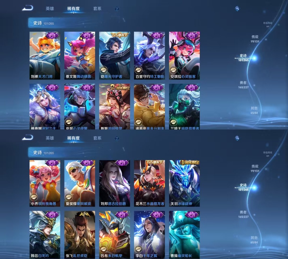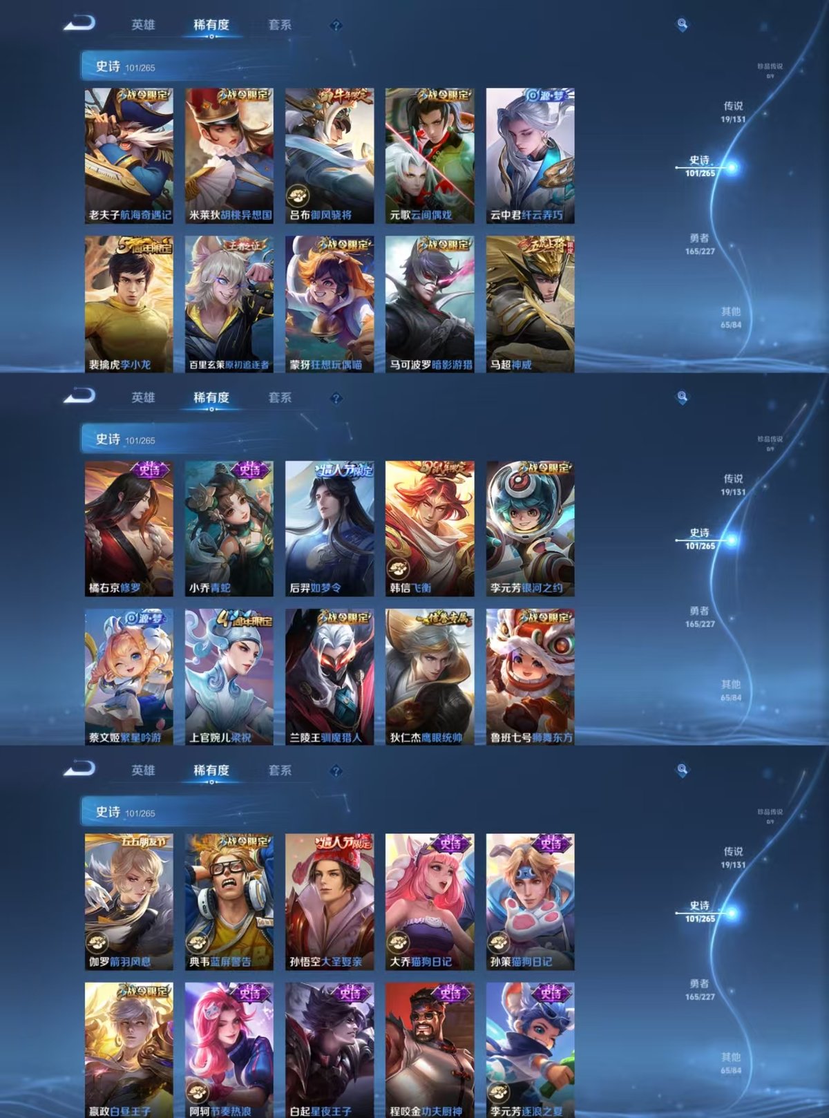 2326447-实名: 可修改 贵族等级: v8 英雄数: 126 皮肤数: 351 荣耀水晶: 星域神启 传说皮: 黄金狮子座黄金射手座久胜战神一念神魔末日机甲-孙尚香仲夏夜之梦地狱之眼淬星耀世超时空战士-狄仁杰山海·炽霜斩电玩·雷克斯鹤羽星尊乘龙·铭钟鼎 限定皮: 冰锋战神李小龙游园惊梦梁祝御风骁将天魔缭乱神威飞衡如梦令-后羿大圣娶亲寅虎·赤拳