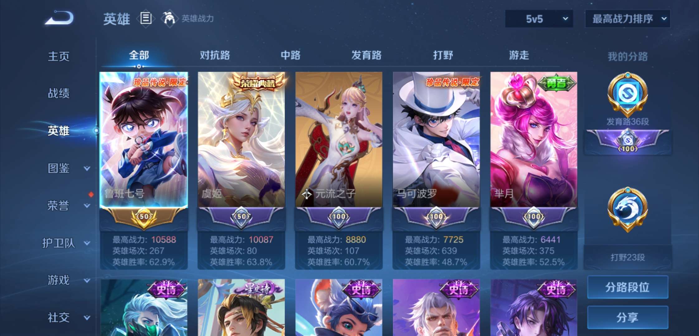 jj3781:安卓q-v7-【237皮肤 2万战 1典藏 2珍品传说 5传说-1金标-发育路36段 打野23段】【可二次 2太阳 0违规】非凡王者-126英雄-237皮肤-1典藏-0无双-2珍品传说-5传说-70史诗 【稀有英雄】 敖隐 不知火舞 橘右京 夏洛特 娜可露露 韩信 艾琳 赵云 【珍品传说】 怪盗基德 江户川柯南 【典藏皮肤】 神鉴启示录 【传说皮肤】 胖达荣荣 地狱之眼 黄金射