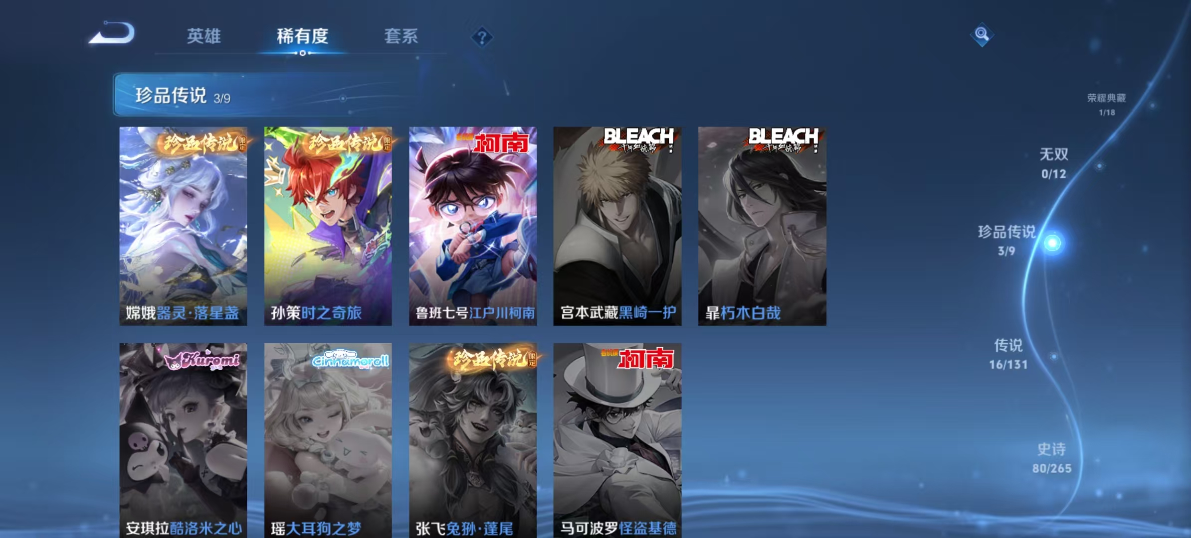 txwz25327 v8 314皮 314皮 典藏1(弑呛猎影)珍品3(器灵·落星盏,时之奇旅,江户川柯南)传说16(地狱之眼,黄金白羊座,愿照·众生和,愿照·山河定,愿照·九州拓,一念神魔,幻光神呛,游龙清影,启明星使,鸣野蒿,无双飞将,云鹰飞将,冠军飞将,仲夏夜之梦,久胜战神,云霓雀翎)史诗80(至尊宝)