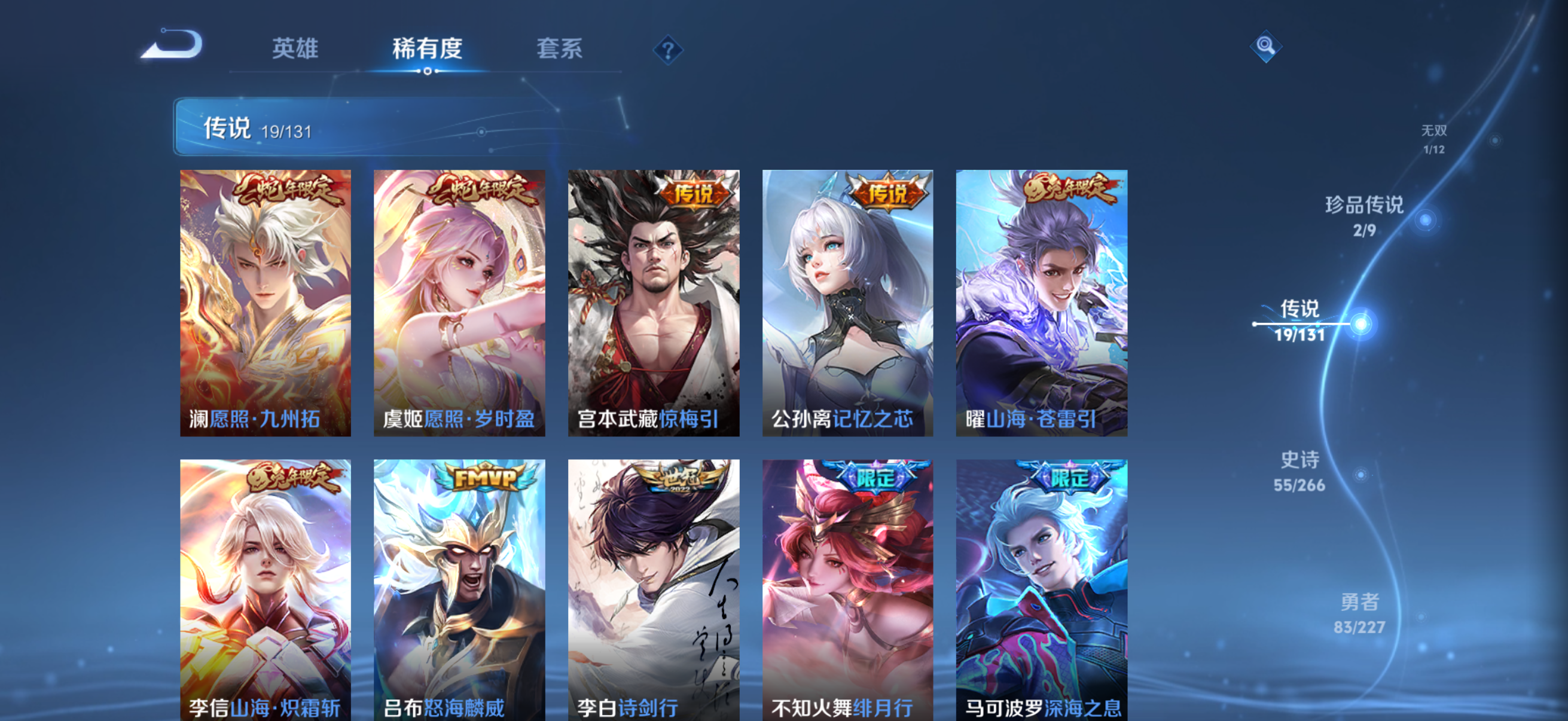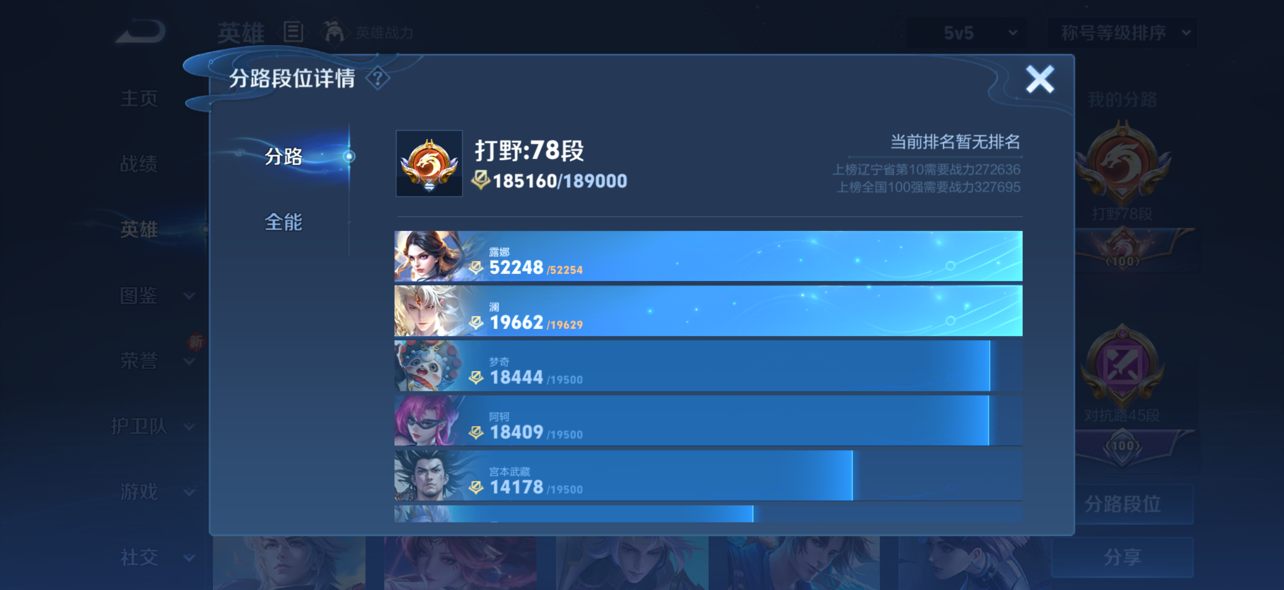 打野78段 小魔方 小国标梦奇1.2w战力 小国标露娜1.7w战力 小国标老夫子1.6w战力 金标阿轲1.1w战力 金标马超1.4w战力 金标澜1.5w战力 金标宫本武藏1.3w战力 197皮1无双(离恨烟)2珍品传说(器灵·落星盏,怪盗基德)19传说启明星使,愿照·九州拓,愿照·岁时盈,祈雪灵祝,云霓雀翎,记忆之芯,惊梅引,山海·苍雷引,末日机甲,山海·炽霜斩,胖达荣荣,怒海麟威,诗剑行,炽阳神光,绯月行,地狱之眼,深海之息,李 ,无双飞将