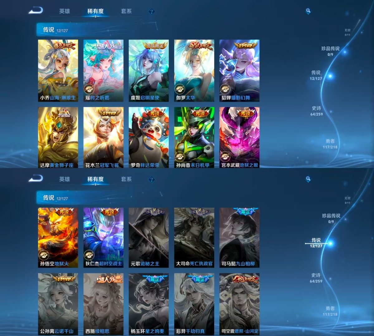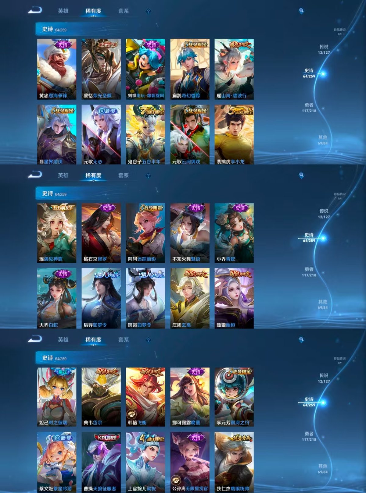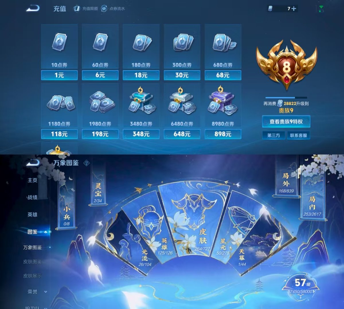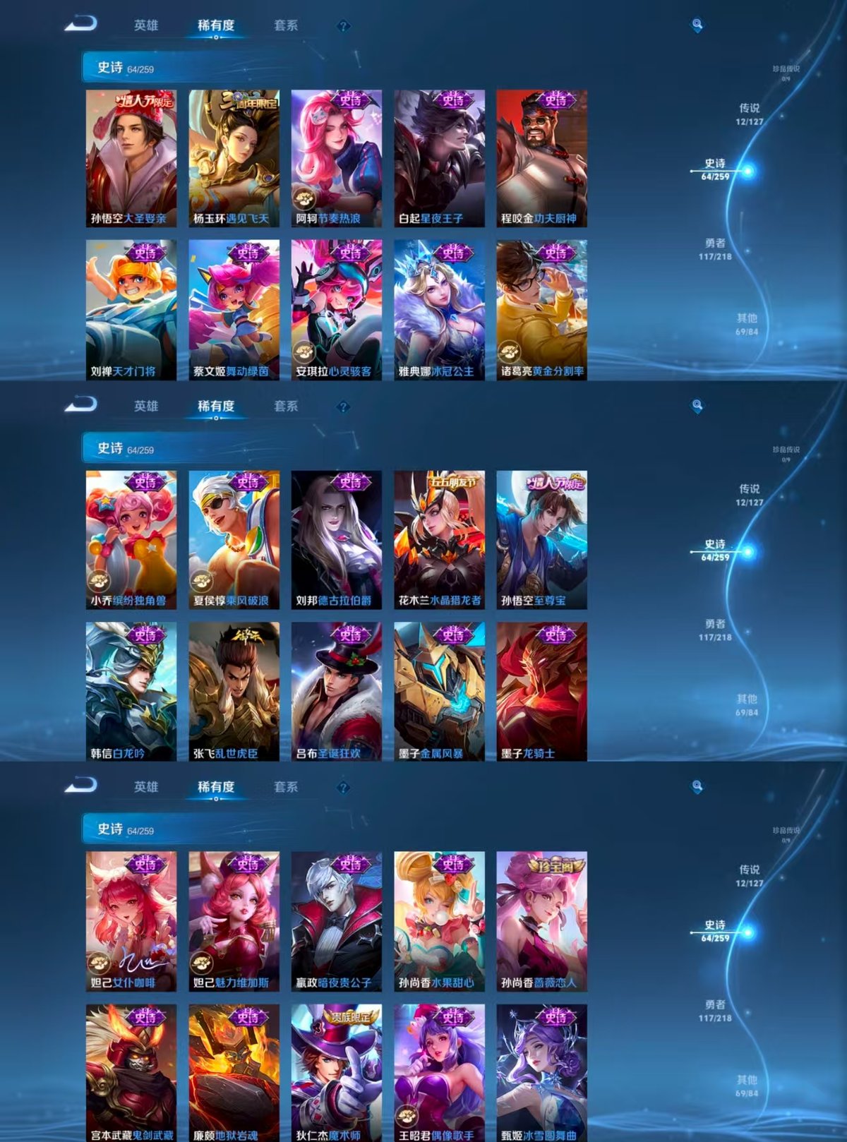 _2328702-实名:可修改贵族等级:v8英雄数:125皮肤数:264荣耀水晶:武则天星空梦想全息碎影传说皮:黄金狮子座冠军飞将猫影幻舞末日机甲-孙尚香地狱火地狱之眼胖达荣荣超时空战士-狄仁杰山海·琳琅生限定皮:遇见飞天李小龙梁祝玄嵩岱宗幽恒时之彼端飞衡太华天狼征服者如梦令-嫦娥至尊宝如梦令-后羿大圣娶亲时之祈愿-瑶五谷丰年山海·碧波行