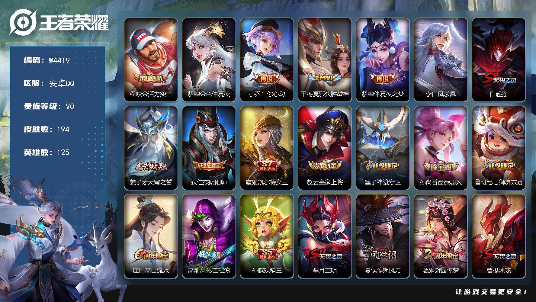 【w4419】1水晶未用-路在脚下天幕-安卓q区-无二次-贵7-125英雄-194皮肤-2典藏(1水晶)-4传说-51史诗-59限定-1星元-1按键-满铭文-活力突击/至尊宝/凤求凰/仲夏夜之梦/久胜战神/音你心动/修罗/魅语/曙光守护者/遇见飞天-贵族积分2.9w-营地id:230699701 【星元皮肤】:貂蝉金色仲夏夜