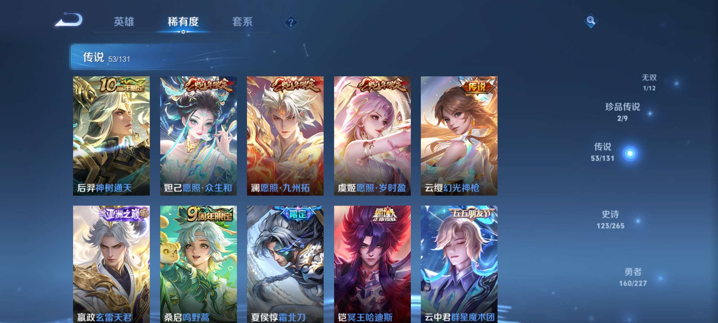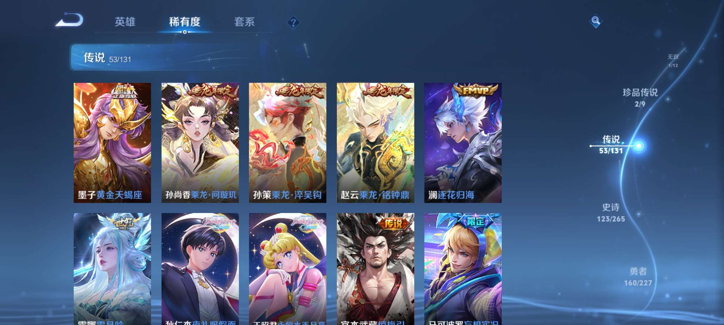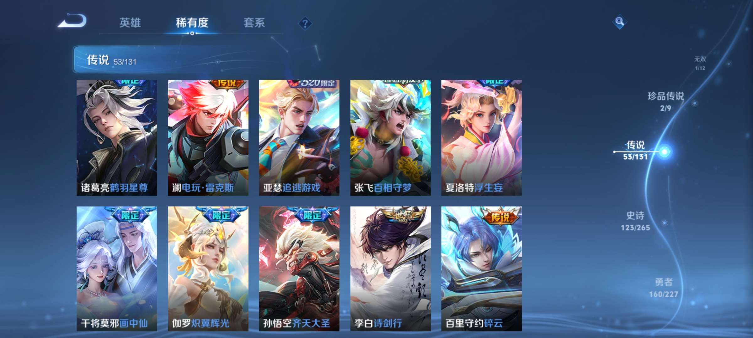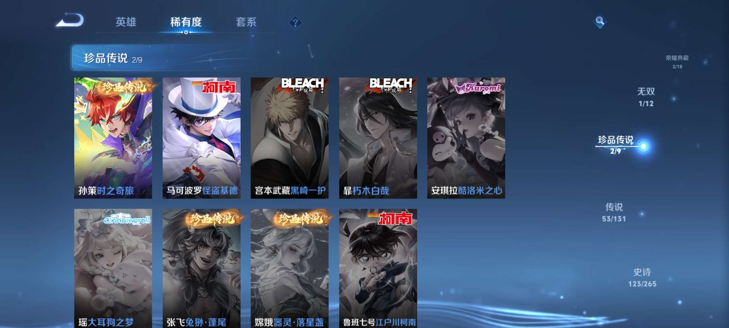 2328694-7【秒换绑,无需等三天】v9-418皮肤 【差5000到v10】14印记 发育41段 打野35段 3星元 金色仲夜夏 未来机甲 星际治安官 安卓q-v-418皮肤2典藏1无双2珍品传说53传说 【全皮英雄】 澜全皮 夏洛特全皮 赵怀真全皮 影全皮 戈娅全皮 苍全皮 【典藏】 拾光映像 弑呛猎影 【无双】 器灵螭龙剑 【珍品传说】 时之奇旅孙策 怪盗基德 【传说】 群星魔术团云