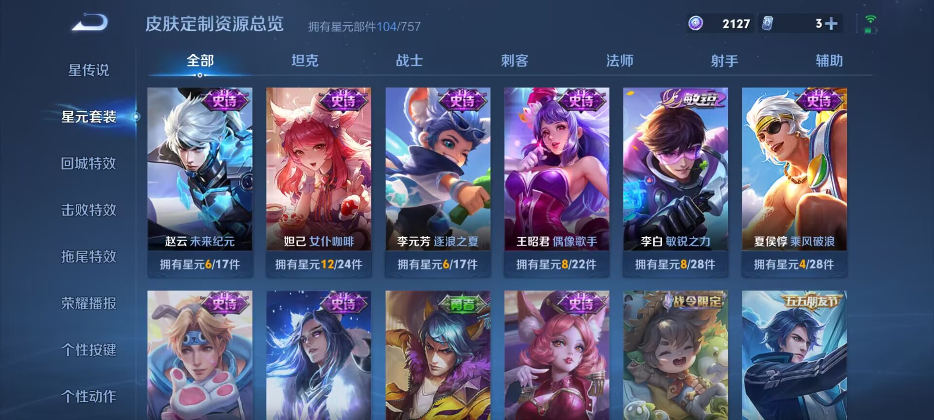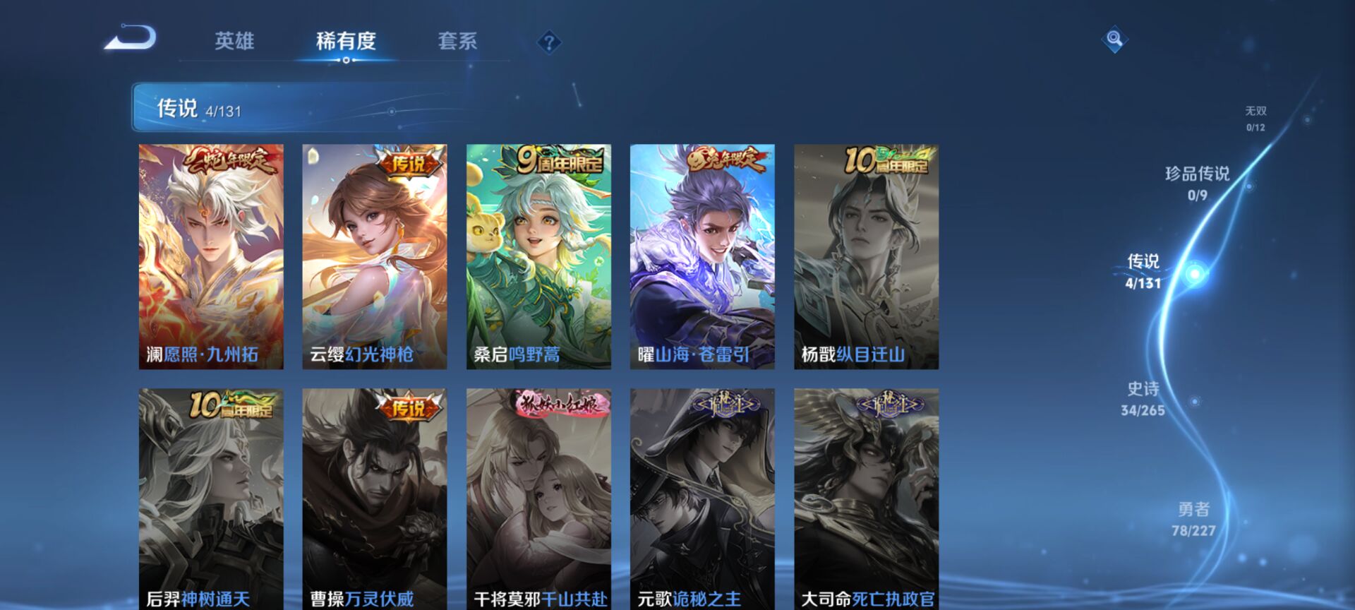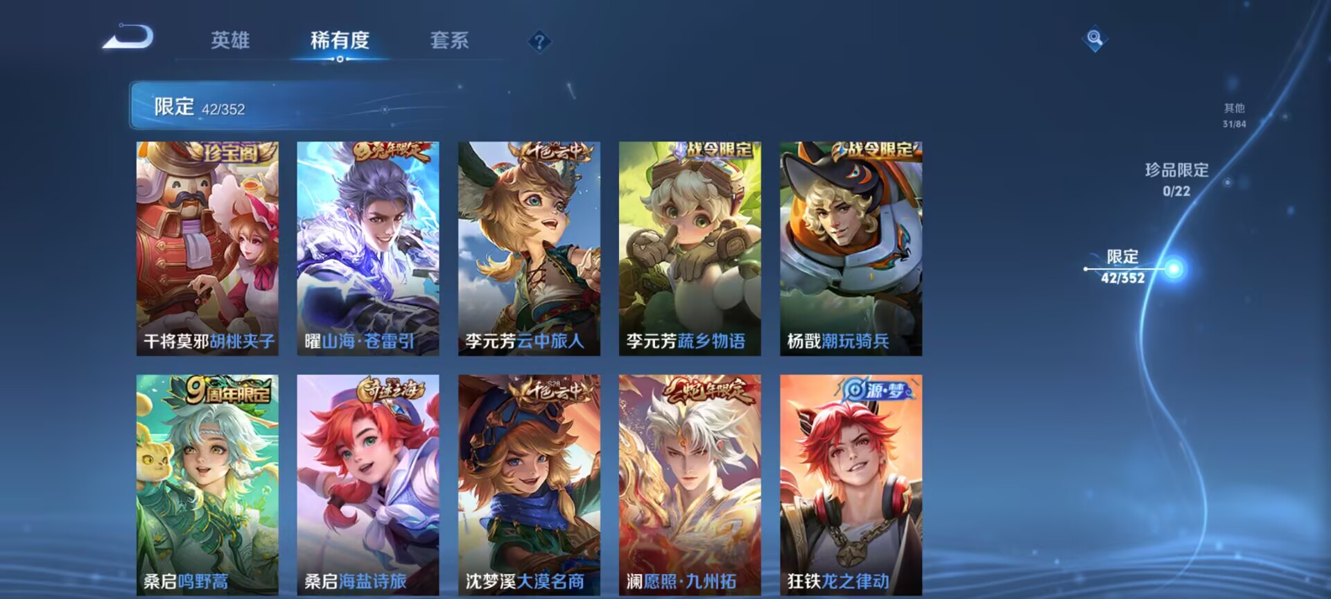 124英雄-147皮肤-【v5 传说4】安卓q-147皮肤-124英雄 【传说皮肤】 鸣野蒿 灵蛊蚀心 幻光神呛 愿照·九州拓 山海·苍雷引 【史诗皮肤】 蔬乡物语 蔬乡物语 器灵·浮梦炉 山海·玄木吟 器灵·浮梦炉 完美运算 荣光圣徽 龙之律动 化蝶舞 魅语 女仆咖啡 魅力维加斯 鹰眼统帅 鬼剑武藏 白龙吟 水晶猎龙者 修罗 曙光守护者 暗隐猎兽者 千年之狐 逐浪之夏 地狱岩魂 德古拉伯爵 紫霞仙子