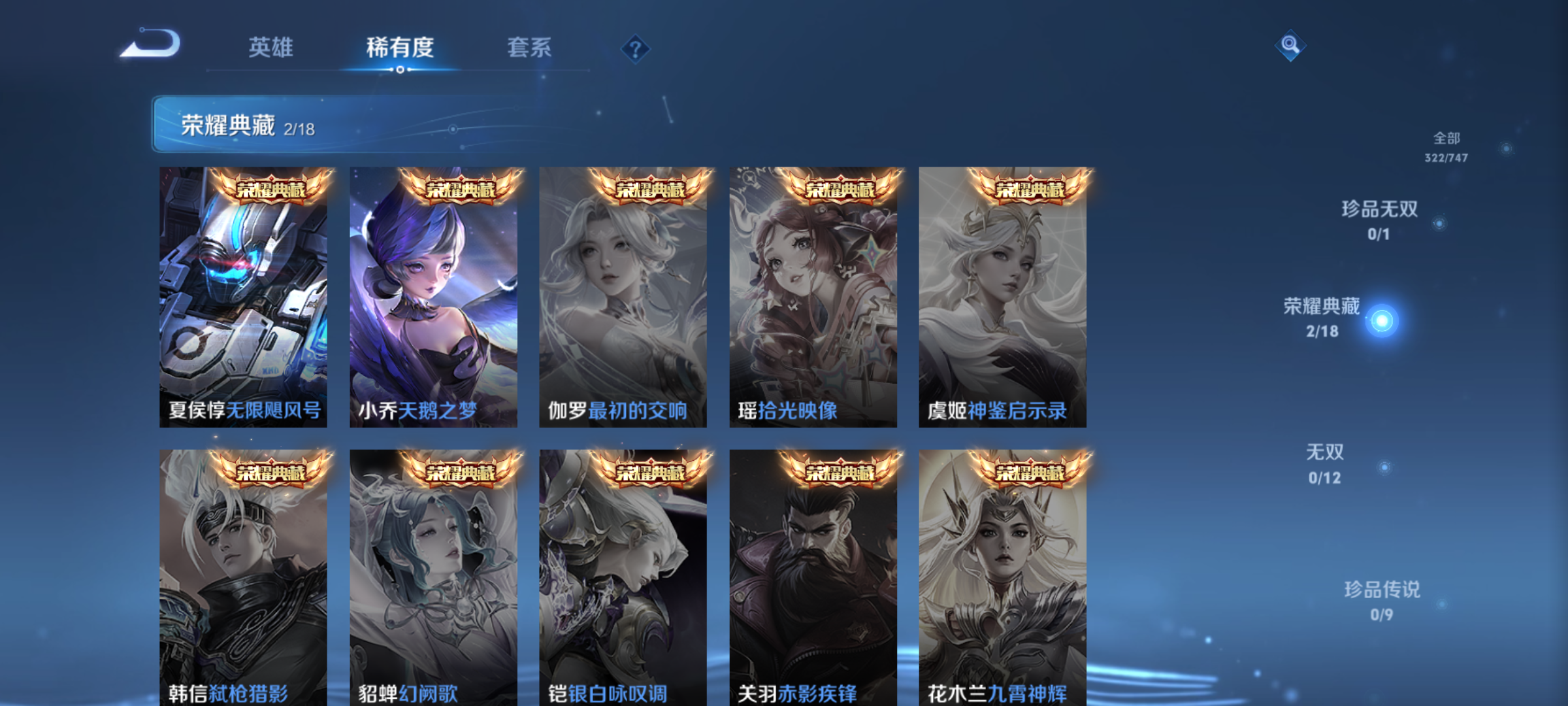 txwz25296小女号 v7-322皮 2典藏 天鹅之梦,无限飓风号 18传说 神树通天,地狱之眼,续相思,黄金白羊座,愿照·众生和,鸣野蒿,乞巧织情,异界灵契,启明星使,无双飞将,时之祈愿,绛天战甲,超时空战士,淬星耀世,末日机甲,冠军飞将,地狱火,黄金射手座81史诗