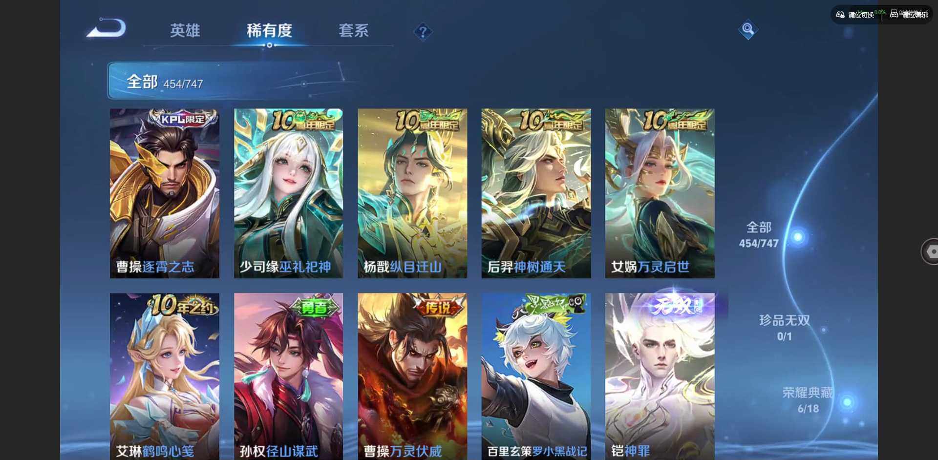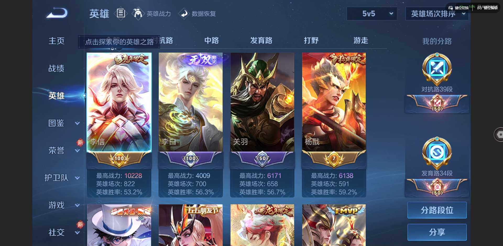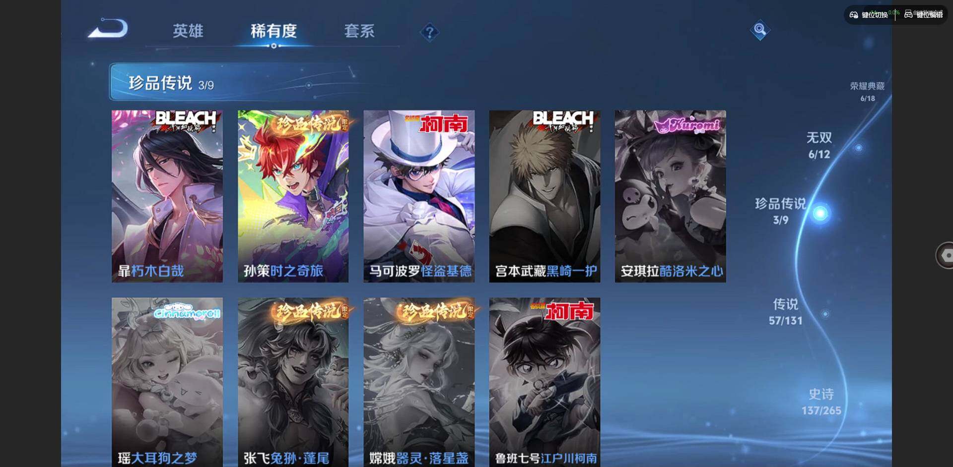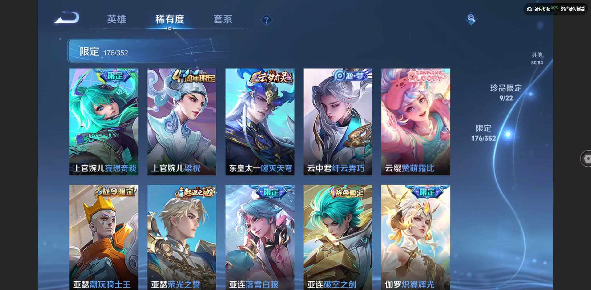 2328953-【金标李信 金标杨戬 金标花木兰 金标孙策 金标铠 金标赵云 朵莉亚全皮 孙策全皮 李信全皮 龙年限定全套】实名: 可修改 贵族等级: v10 英雄数: 128 皮肤数: 454 荣耀水晶: 武则天倪克斯神谕无限飓风号鸣剑·曳影星域神启九霄神辉银白咏叹调 无双皮: 碎月剑心小乔时之魔女花合斗离恨烟天机白泽神罪 珍品传说: 怪盗基德时之奇旅-孙策朽木白