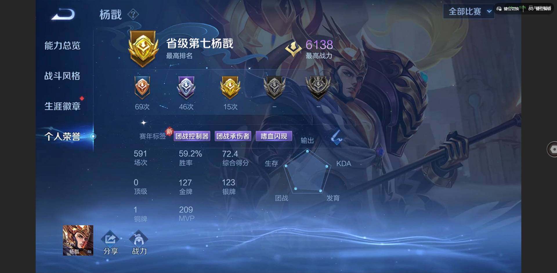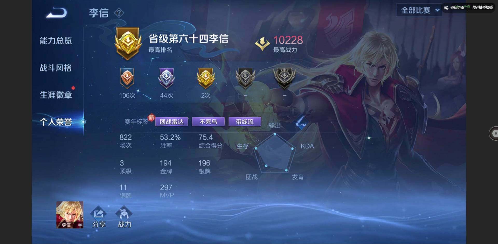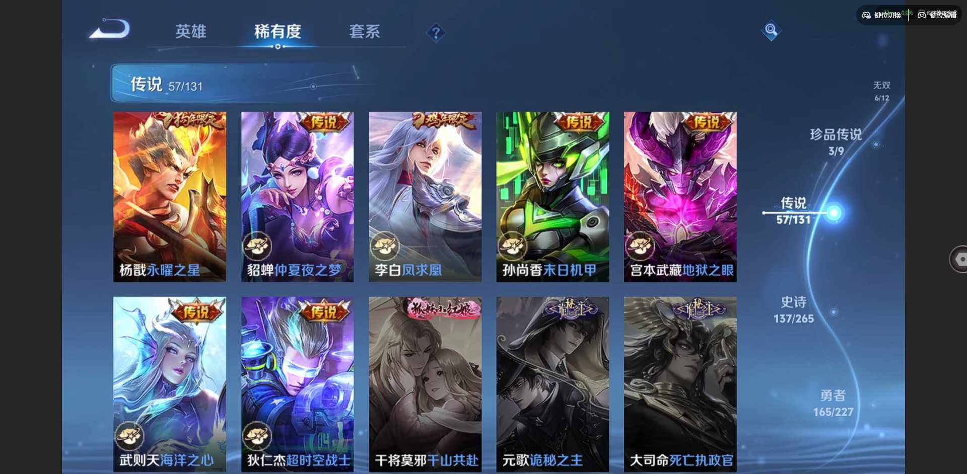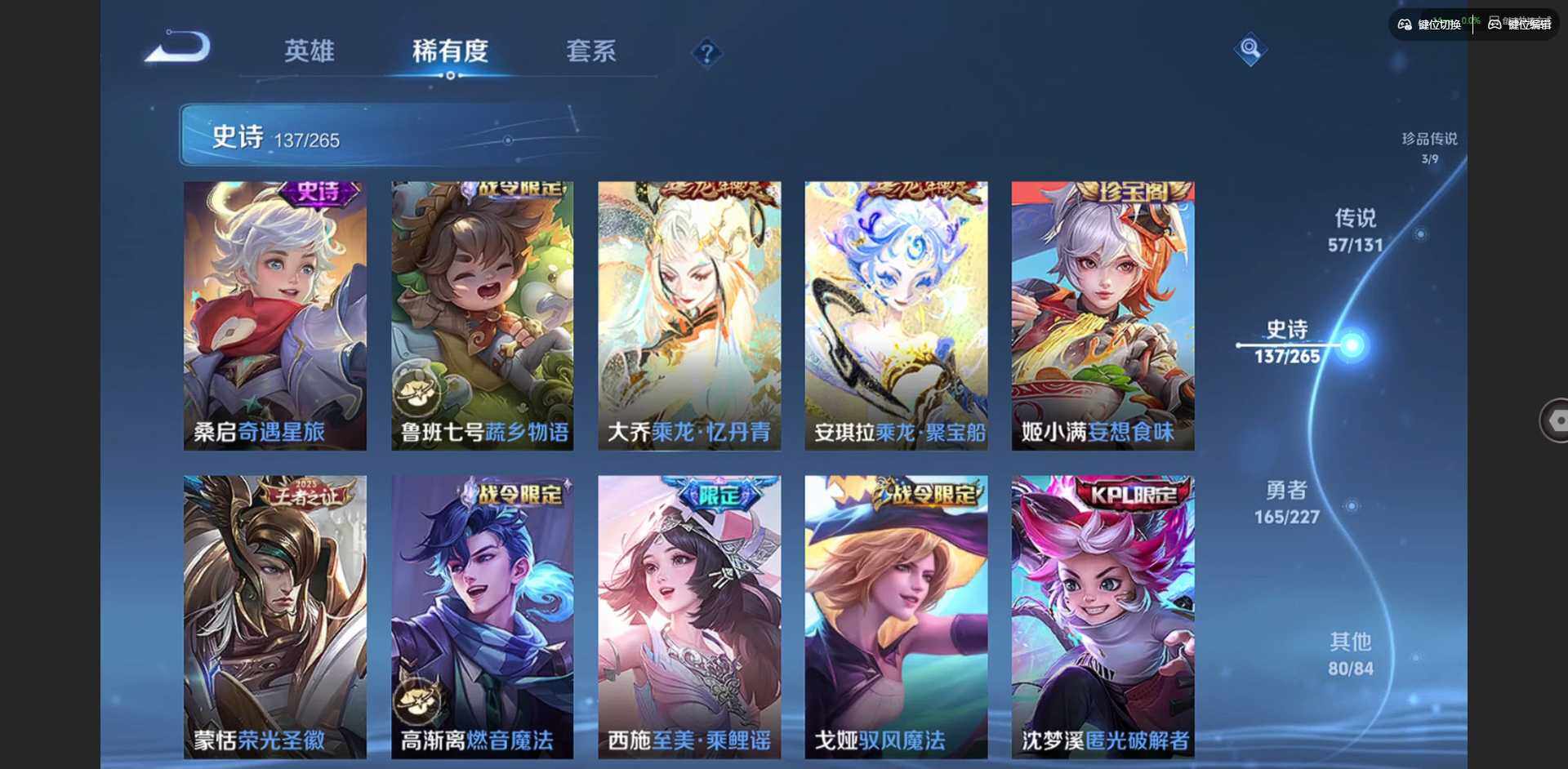 2328953-【金标李信 金标杨戬 金标花木兰 金标孙策 金标铠 金标赵云 朵莉亚全皮 孙策全皮 李信全皮 龙年限定全套】实名: 可修改 贵族等级: v10 英雄数: 128 皮肤数: 454 荣耀水晶: 武则天倪克斯神谕无限飓风号鸣剑·曳影星域神启九霄神辉银白咏叹调 无双皮: 碎月剑心小乔时之魔女花合斗离恨烟天机白泽神罪 珍品传说: 怪盗基德时之奇旅-孙策朽木白