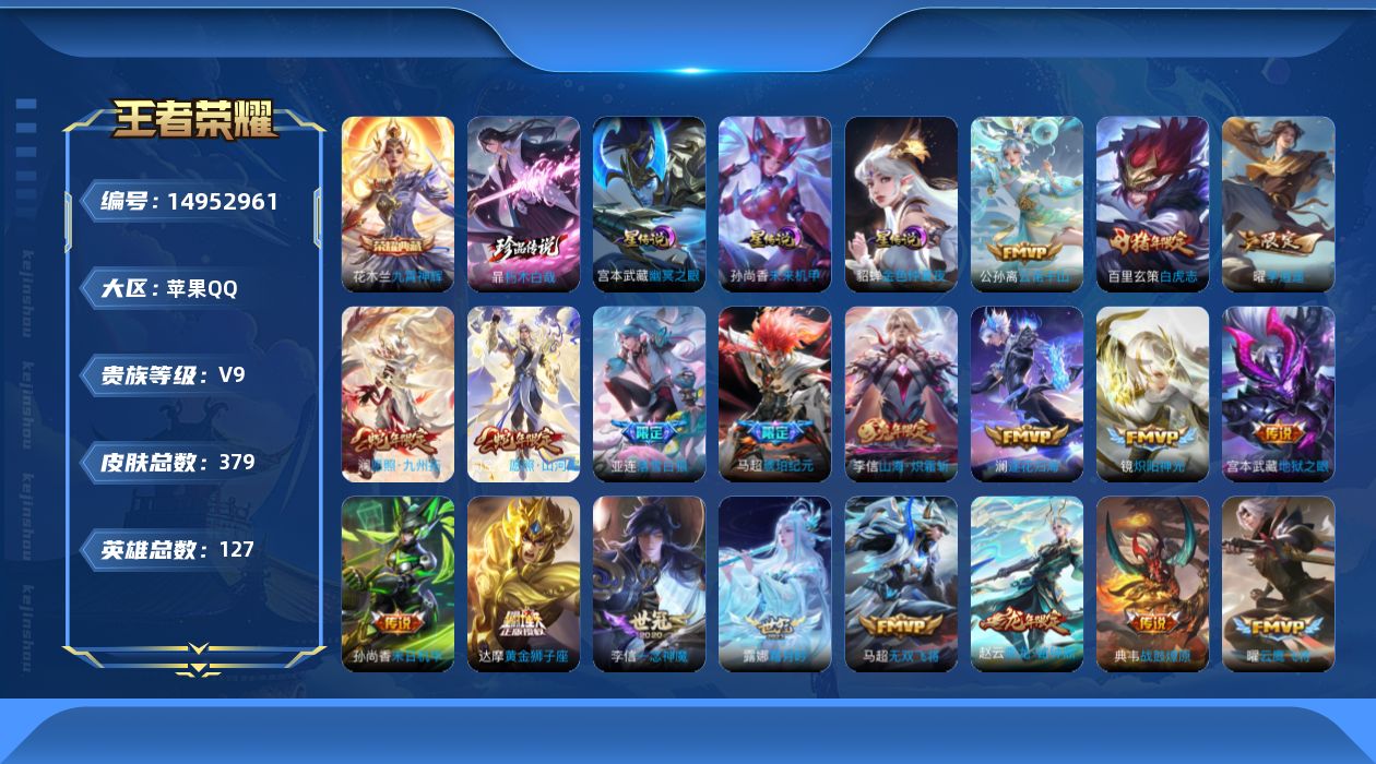 [14952961]背包有颗未使用荣耀水晶 苹果q-v9-最强王者段位-127英雄-379皮肤-1典藏皮肤-1珍品传说-39传说-110史诗 【英雄全皮】:李信全皮,亚连全皮,马超全皮,蒙恬全皮,澜全皮,司空震全皮,赵怀真全皮,戈娅全皮,影全皮,海诺全皮 【荣耀典藏】:花木兰九霄神辉 【珍品传说】:暃朽木白哉 【传说皮肤】:公孙离云诺千山,司空震愿照山河定,澜愿照九州拓,云缨幻光神呛,裴擒虎祥瑞亨通,桑启鸣野蒿,亚连落雪白狼,典韦战鼓燎原,赵云乘龙铭钟鼎,马超琥珀纪元,澜逐花归海,露娜霜月吟,诸葛亮鹤羽星尊,澜电玩雷克斯,伽罗炽翼辉光,孙悟空齐天大圣,李信山海炽霜斩,吕布怒海麟威,马超无双飞将,孙策末日机甲,鲁班七号寅虎瑞焰,赵云淬星耀世,曜李 ,周瑜音你心动,铠绛天战甲,镜炽阳神光,虞姬启明星使,关羽武圣,曜云鹰飞将,李信一念神魔,刘备时之恋人,貂蝉猫影幻舞,达摩黄金狮子座,百里玄策白虎志,梦奇胖达荣荣,貂蝉仲夏夜之梦,孙尚香末日机甲,宫本武藏地狱之眼,狄仁杰超时空战士 【限定皮肤】:蒙犽顽岩魄,蔡文姬夏日便利店,大乔绒语心约,虞姬夏日便利店,姜子牙天穹之誓,李白谪仙醉月,狄仁杰阴阳师,赵云皇家上将,赵云龙胆,孙尚香蔷薇恋人,鲁班七号寅虎瑞焰,庄周高山流水,高渐离玩趣恶龙,钟无艳超时空战士,扁鹊奇幻香踪,芈月幻夜卜梦,吕布猎兽之王,元歌云间偶戏,元歌无心,甄姬落雪兰心,马可波罗山海玄木吟,狄仁杰魔术师,狄仁杰万华元夜,达摩沙漠行僧,项羽海滩派对,老夫子醍醐杖,关羽冰锋战神,关羽武圣,程咬金演武夺筹,韩信飞衡,韩信傲雪梅呛,兰陵王金庭之子,花木兰默契交锋,孙悟空至尊宝,孙悟空孙行者,孙悟空齐天大圣,后羿圣弓游侠,刘备百相守梦,李元芳云中旅人,虞姬启明星使,钟馗驱傩正仪,杨戬潮玩骑兵,干将莫邪真爱魔法,太乙真人华丽摇滚,鬼谷子原初探秘者,鬼谷子五谷丰年,诸葛亮鹤羽星尊,黄忠火炮绅士,铠青龙志,苏烈千军破阵,百里玄策白虎志,百里守约朱雀志,梦奇顽趣,沈梦溪大漠名商,明世隐疑决卦,裴擒虎李小龙,裴擒虎擒涛扼浪,狂铁电玩高手,云中君纤云弄巧,李信山海炽霜斩,伽罗炽翼辉光,嫦娥暖冬兔眠,曜李 ,西施玲珑珍味,鲁班大师探海日志,盘古冰霜神祇,桑启海盐诗旅,暃星界游侠,戈娅驭风魔法,艾琳流音漫舞,赵怀真鹤归松栖,司空震地狱燃心,阿古朵江河有灵,张良古海寻踪,蒙犽百解令,蒙恬荣光圣徽,高渐离