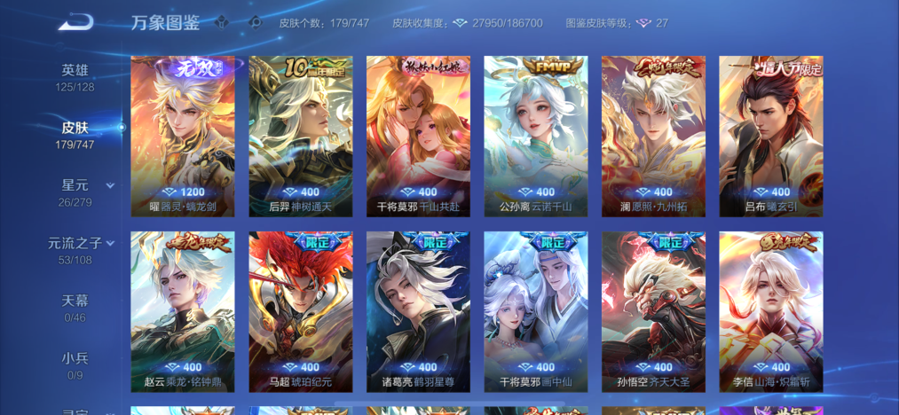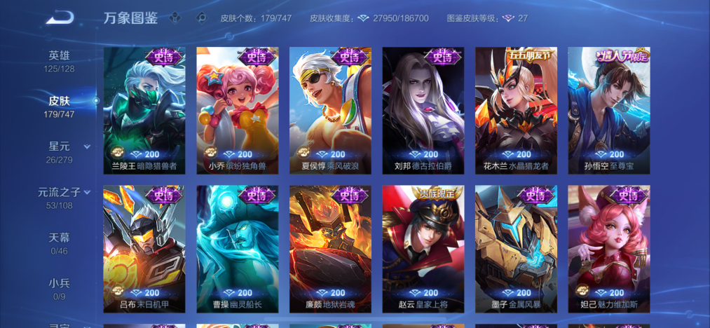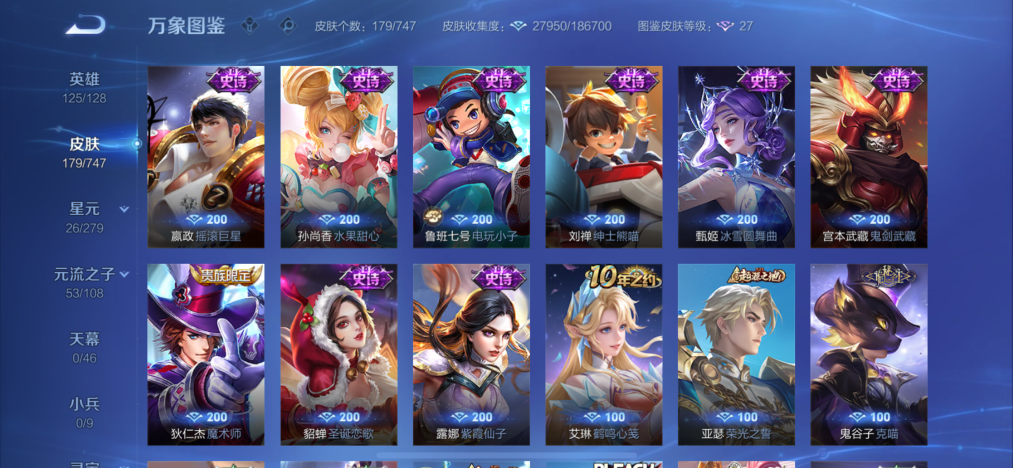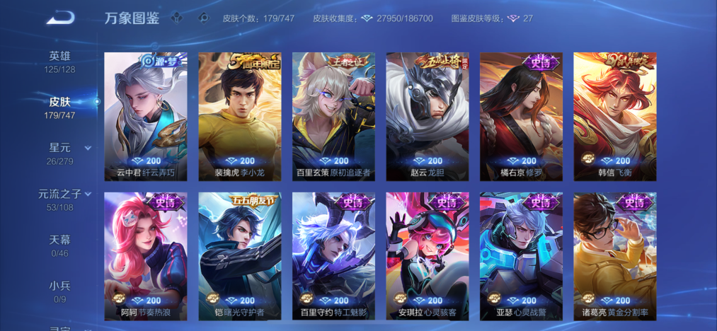 125英雄-179皮肤-可二次【1无双1星元18传说可秒换绑】苹果qq-125英雄-179皮肤【无双皮肤】器灵·螭龙剑【星元皮肤】幽冥之眼【传说皮肤】神树通天 千山共赴 云诺千山 琥珀纪元 乘龙·铭钟鼎 曦玄引 鹤羽星尊 愿照·九州拓 画中仙 齐天大圣 山海·炽霜斩 碎云 无双飞将 地狱之眼 一念神魔 末日机甲 云鹰飞将 时雨天司【史诗皮肤】飞衡 至尊宝 浮光幕影 琥珀纪元 山海·玄木吟 青焰无极 修