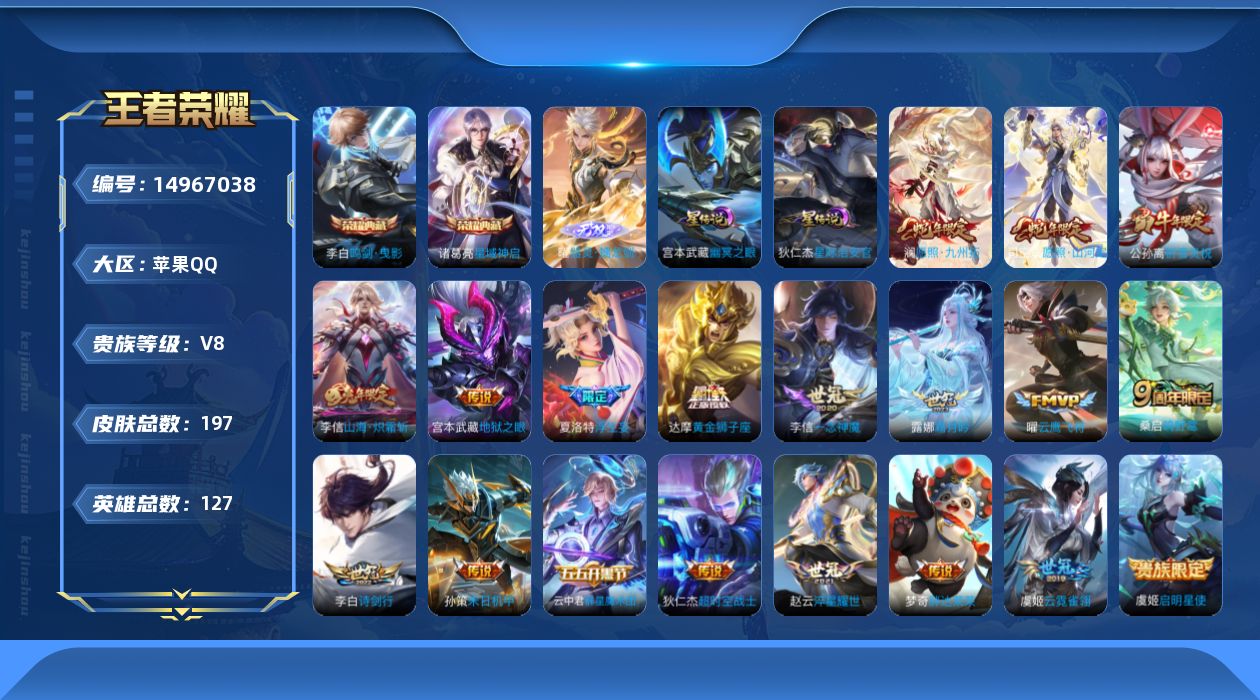 [14967038]【终身售后 找回包赔】苹果手q103区197皮2典藏21传说1无双 营地id1780761585可二次v8最强王者 [世冠全套]【无双皮肤】:器灵·螭龙剑【荣耀典藏】:鸣剑·曳影星域神启【星传说】:幽冥之眼星际治安官,【优质限定皮肤】:祈雪灵祝神威山海·炽霜斩【传说皮肤】:群星魔术团胖达荣荣启明星使霜月吟黄金白羊座祈雪灵祝黄金狮子座愿照·九州拓愿照·山河定地狱之眼浮生妄鸣野蒿超时空战士诗剑行云鹰飞将淬星耀世山海·炽霜斩云霓雀翎绛天战甲末日机甲一念神魔【特殊英雄】:嬴政敖隐,【史诗皮肤】:傩神司摇滚巨星万灵启世光弋星穹冰冠公主百相守梦万物之道赞萌露比猫狗日记暗影游猎御风骁将德古拉伯爵星夜王子黎明之约器灵·浮梦炉燃音魔法猫狗日记茶境仙绅士熊喵水晶猎龙者暗渊魔法月团寄思百相守梦暗隐猎兽者高山流水暗夜猫娘未来纪元银河之约天秀·音浪电玩高手飞衡乘风破浪破空之剑战舞者东方月初逐浪之夏顽岩魄神器·万象笔箭羽风息埋骨钱鬼剑武藏赏金猎手乱世虎臣蔷薇恋人心灵骇客江河有灵金属风暴修罗鹰眼统帅星界游侠神威山海·玄木吟缤纷独角兽朱雀志魔术师末日机甲水果甜心皇家上将超时空战士无心时之恋人五谷丰年 星元:27星传说:2天幕:1按键:11签名:1贵族:8皮肤碎片:2荣耀积分:15英雄碎片:244星传说:狄仁杰星际治安官宫本武藏幽冥之眼