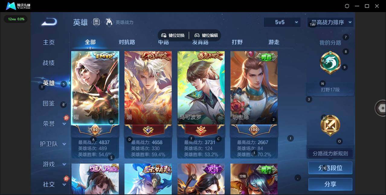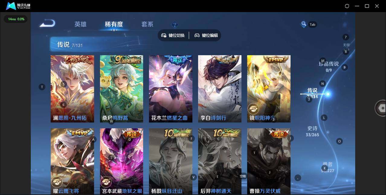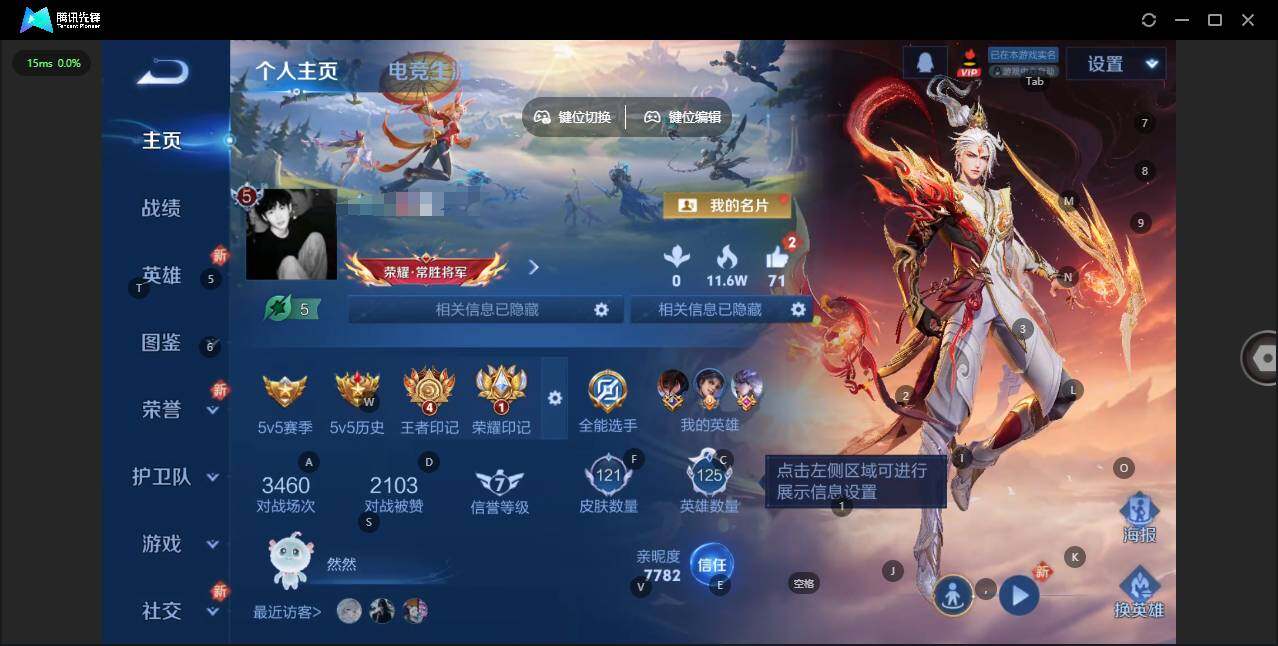 [14967031]实名: 可修改 贵族等级: v5 英雄数: 125 皮肤数: 121 传说皮: 云鹰飞将炽阳神光地狱之眼燃星之曲 限定皮: 至尊宝诗剑行山海·玄木吟鸣野蒿愿照·九州拓