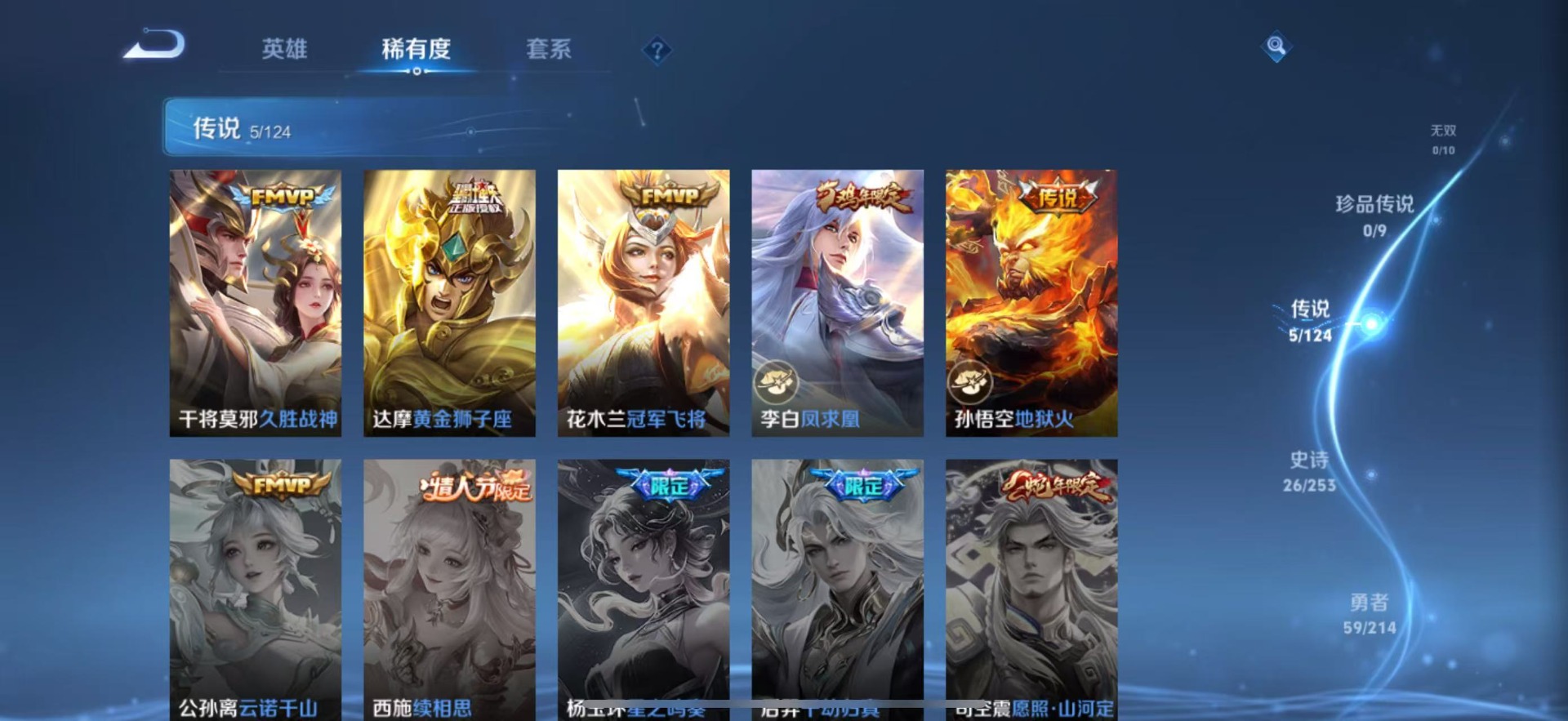 v7 5传说 122英雄 141皮肤 可修改实名 【稀有英雄】大司命韩信韩跳跳夏洛特夏师傅艾琳橘右京橘子娜可露露鸟人不知火舞赵云金蝉唐僧戈娅 【传说皮】黄金狮子座地狱火冠军飞将久胜战神 【珍宝阁皮】玩趣恶龙 【赛季/战令皮】剑破天穹s35穷奇s1
