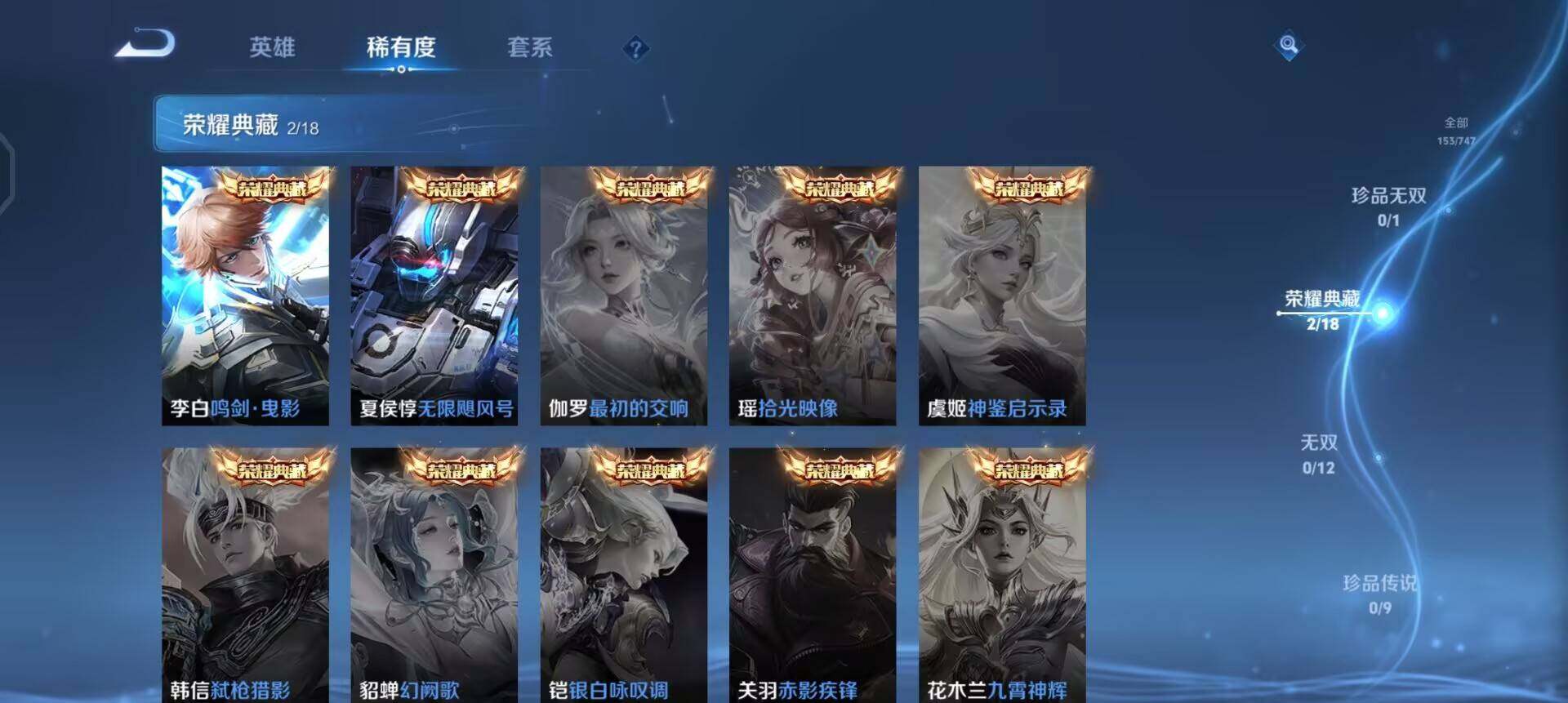w12427 可立即换绑无需挂单养号 铭文满级 典藏2 传说4 按键5 夺宝161 安卓q-v7-最强王者段位-125英雄-153皮肤-2典藏皮肤-4传说-32史诗 【荣耀典藏】:夏侯惇无限飓风号,李白鸣剑曳影 【传说皮肤】:桑启鸣野蒿,百里守约碎云,小乔音你心动,李信一念神魔 【限定皮肤】:姜子牙天穹之誓,狄仁杰阴阳师,赵云皇家上将,孙尚香蔷薇恋人,庄周高山流水,甄姬游园惊梦,