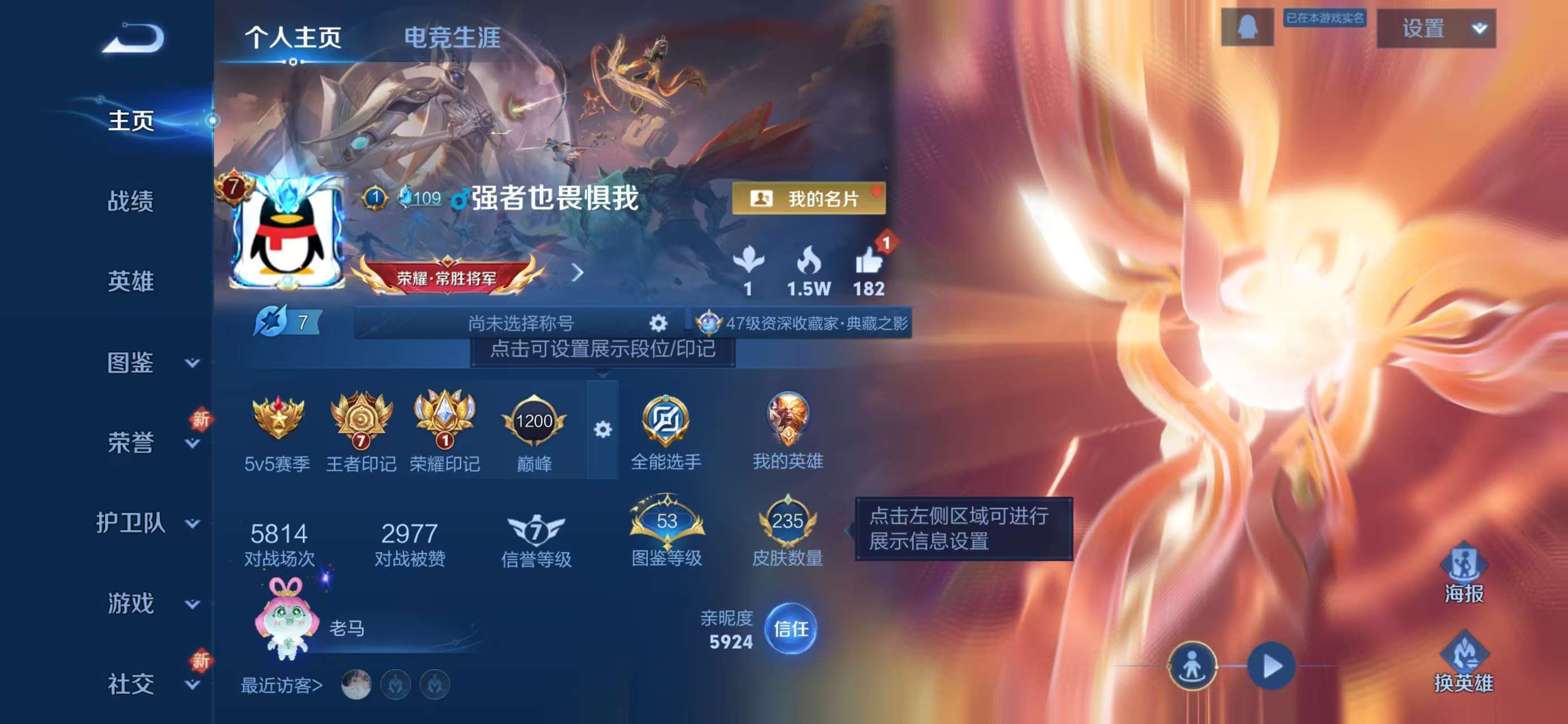 安卓qq/荣耀王者/235皮肤/123英雄/1典藏/0珍品无双/1无双/0珍品传说/8传说/65史诗/7稀有英雄【1 典藏皮肤】全息碎影 孙悟空【1 无双皮肤】天机白泽 诸葛亮【8 传说皮肤】地狱火 孙悟空齐天大圣 孙悟空永曜之星 杨戬地狱之眼 宫本武藏时之恋人 刘备绛天战甲 铠愿照·九州拓 澜鸣野蒿 桑启【65 史诗皮肤】电玩小子 鲁班七号末日机甲 吕布紫霞仙子 露娜百