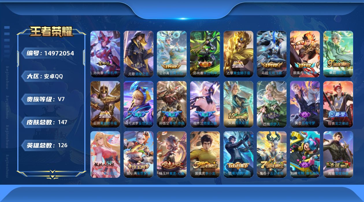 [14972054]【终身售后 找回包赔】安卓手q305区147皮0典藏11传说0无双 营地id1865040917可二次v7非凡王者 【星传说】:未来机甲,【优质限定皮肤】:无双飞将【传说皮肤】:诡秘之主妄想实况燃星之曲云诺千山黄金狮子座无双飞将祥瑞亨通黄金射手座末日机甲鸣野蒿零号·赤焰【特殊英雄】:敖隐,【史诗皮肤】:热力回旋白龙吟万灵启世幽灵船长龙之律动织梦人涂山红红百相守梦迷踪丽影乘风破浪乱世虎臣圣诞狂欢圣诞恋歌李小龙皇家上将茶境仙魅力维加斯魔术师鹰眼统帅百相守梦妄想食味偶像歌手陌上桑五谷丰年逐浪之夏暗隐猎兽者黄金分割率箭羽风息功夫厨神未来纪元梦圆繁星星夜王子雪夜绮愿百相守梦曙光守护者地狱岩魂鬼剑武藏心灵骇客女仆咖啡寅虎·心曲逐梦之翼龙鼓争鸣猫狗日记绅士熊喵电玩·爆裂旋风 星元:17星传说:1按键:5签名:1贵族:7点卷:5皮肤碎片:55荣耀积分:11英雄碎片:244星传说:孙尚香未来机甲