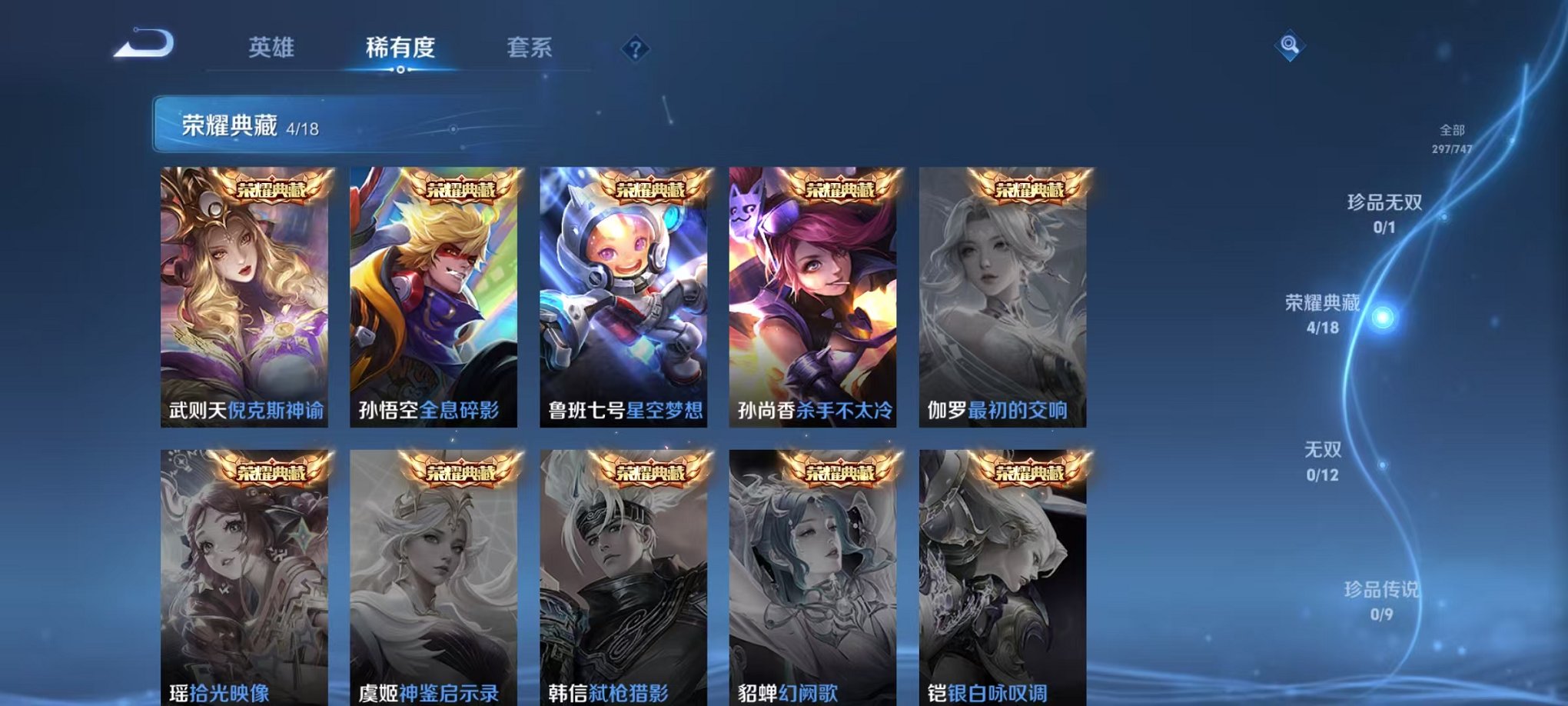 【v10 297皮肤5水晶22传说可秒换绑】安卓qq-122英雄-297皮肤【5水晶】武则天 全息碎影 星空梦想 杀手不太冷 倪克斯神谕【星元皮肤】零号雷霆【传说皮肤】武圣 凤求凰 乘龙·淬吴钩 觅芳踪 祈雪灵祝 炽阳神光 海洋之心 白虎志 黄金狮子座 超时空战士 猫影幻舞 久胜战神 黄金射手座 冠军飞将 绛天战甲 一念神魔 末日机甲 地狱火 零号·赤焰 云鹰飞将 启明星使 时雨天司【史诗皮肤】