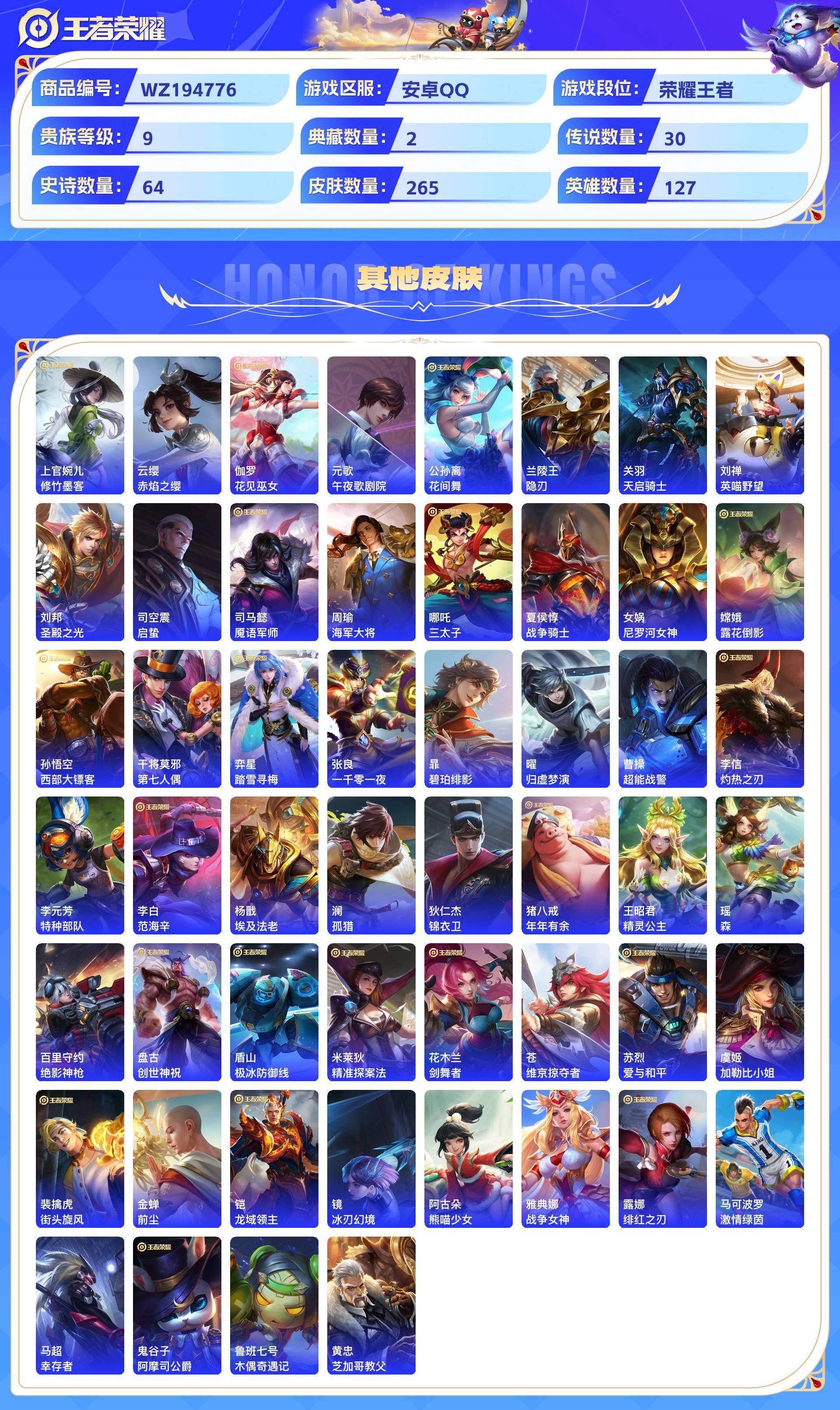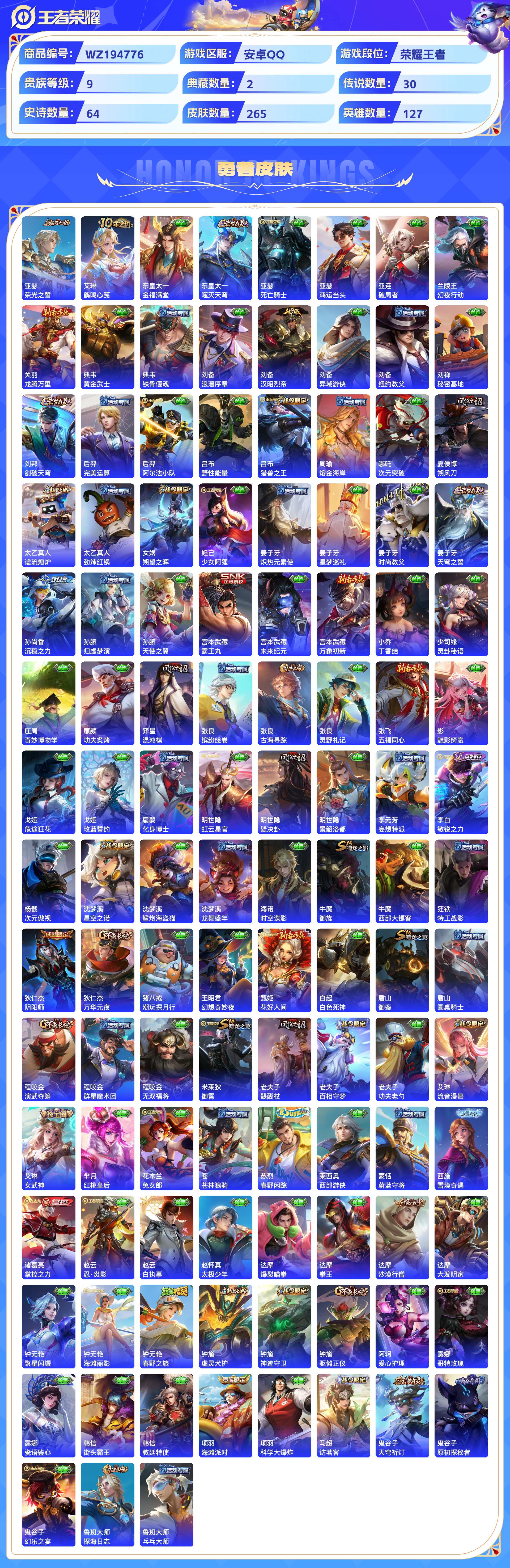 _2308014-安卓qq265皮贵族9级2典藏1珍品传说1无双30传说64史诗【荣耀典藏】鸣剑·曳影九霄神辉【珍品传说】时之奇旅【无双限定】雪境奇遇【传说皮肤】神树通天灼幽烈阳鹤归松栖影龙天霄武圣时之恋人黄金射手座遇见神鼓曦玄引愿照·千秋盛末日机甲地狱火久胜战神云鹰飞将一念神魔凤求凰诗剑行鸣野蒿金乌负日逐花归海冠军飞将花朝如约云霓雀翎启明星使仲夏夜之梦乘龙·铭钟鼎黄金狮子座琥珀纪元炽阳神光霜月吟【史诗皮肤】万灵启世梁祝纤云弄巧无限星赏官暗隐猎兽者蓝屏警告绅士熊喵地狱燃心暗渊魔法圣诞狂欢御风骁将龙骑士金属风暴乘风破浪永昼白蛇魅力维加斯女仆咖啡妄想食味摇滚巨星暗夜贵公子白昼王子水果甜心时之恋人孙行者猫狗日记茶境仙心灵骇客鬼剑武藏缤纷独角兽地狱岩魂乱世虎臣匿光侦查者月团寄思鹰眼统帅魔术师偶像歌手冰雪圆舞曲星夜王子真我赫兹百相守梦特工魅影热力回旋功夫厨神水晶猎龙者默契交锋舞动绿茵李小龙黄金分割率皇家上将未来纪元器灵·浮梦炉江河有灵节奏热浪化蝶舞冰冠公主一生所爱紫霞仙子白龙吟逐梦之影苍穹之光狮舞东方电玩小子怒海争锋【勇者皮肤】荣光之誓鹤鸣心笺金福满堂噬灭天穹死亡骑士鸿运当头破局者幻夜行动龙腾万里黄金武士铁骨偃魂浪漫序章汉昭烈帝异域游侠纽约教父秘密基地剑破天穹完美运算阿尔法小队野性能量猎兽之王熔金海岸次元突破朔风刀谧流熔炉劲辣红锅朔望之晖少女阿狸炽热元素使星梦巡礼时尚教父天穹之誓沉稳之力归虚梦演天使之翼霸王丸未来纪元万象初新丁香结灵卦秘语奇妙博物学功夫炙烤混沌棋缤纷绘卷古海寻踪灵野札记五福同心魅影绮裳危途狂花玫蓝誓约化身博士虹云星官疑决卦景韶洛都妄想特派敏锐之力次元傲视星空之诺鲨炮海盗猫龙舞盛年时空谍影御旌西部大镖客特工战影阴阳师万华元夜潮玩探月行幻想奇妙夜花好人间白色死神御銮圆桌骑士演武夺筹群星魔术团无双福将御霄醍醐杖百相守梦功夫老勺流音漫舞女武神红桃皇后兔女郎苍林狼骑春野闲踪西部游侠蔚蓝守将雪境奇遇掌控之力忍·炎影白执事太极少年爆裂喵拳拳王沙漠行僧大发明家聚星闪耀海滩丽影春野之旅虚灵犬护神迹守卫驱傩正仪爱心护理哥特玫瑰瓷语鉴心街头霸王教廷特使海滩派对科学大爆炸访茗客天穹祈灯原初探秘者幻乐之宴探海日志乓乓大师【其他皮肤】修竹墨客赤焰之缨花见巫女午夜歌剧院花间舞隐刃天启骑士英喵野望圣殿之光启蛰魇语军师海军大将三太子战争骑士尼罗河女神露花倒影西部大镖客第七人偶踏雪寻梅一千零一夜碧珀绯影归虚梦演超能战警灼热之刃特种部队范海辛埃及法老孤猎锦衣卫年年有余精灵公主森绝影神呛创世神祝极冰防御线精准探案法剑舞者维京掠夺者爱与和平加勒比小姐街头旋风前尘龙域领主冰刃幻境熊喵少女战争女神绯红之刃激情绿茵幸存者阿摩司公爵木偶奇遇记芝加哥教父