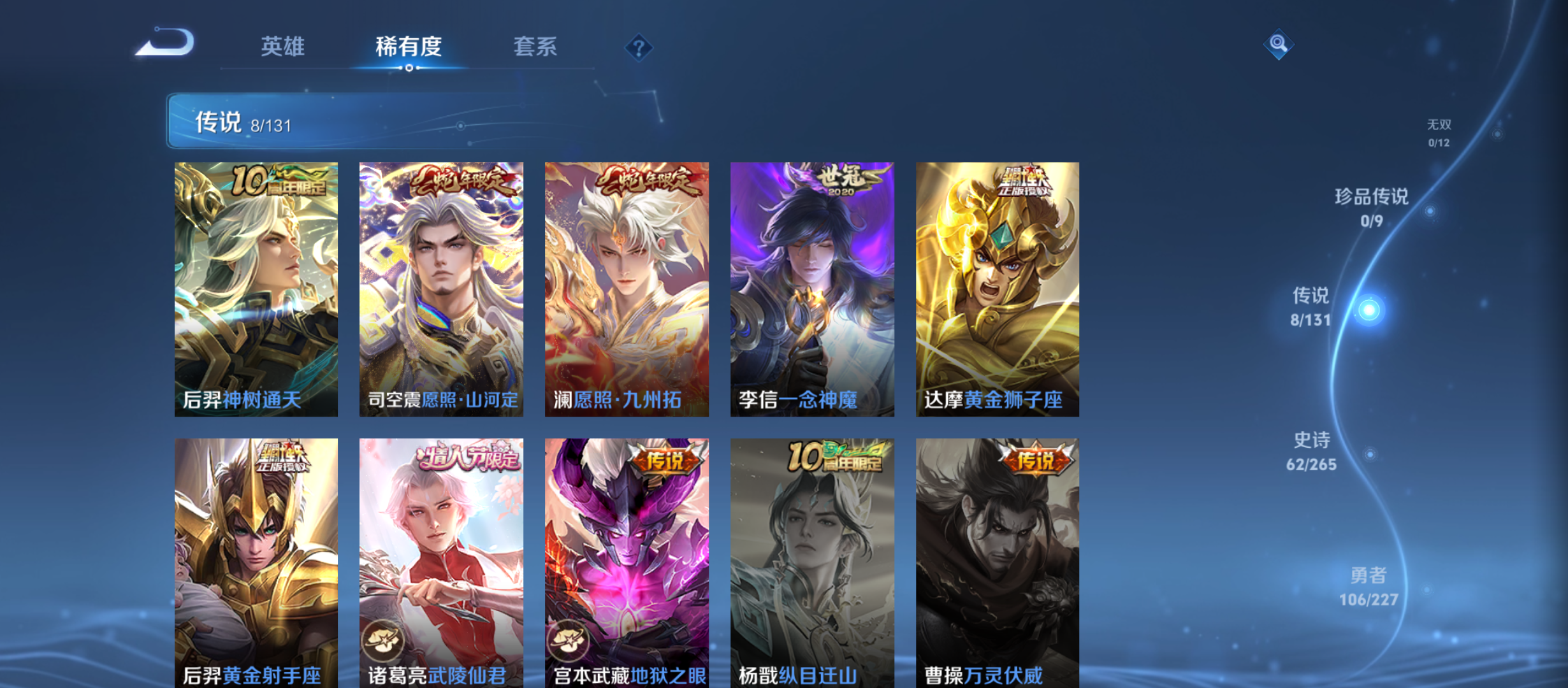 txwz25642 215皮v6-1典藏全息碎影-8传说 神树通天,地狱之眼,黄金狮子座,愿照·九州拓,愿照·山河定,黄金射手座,一念神魔,武陵仙君-62史诗