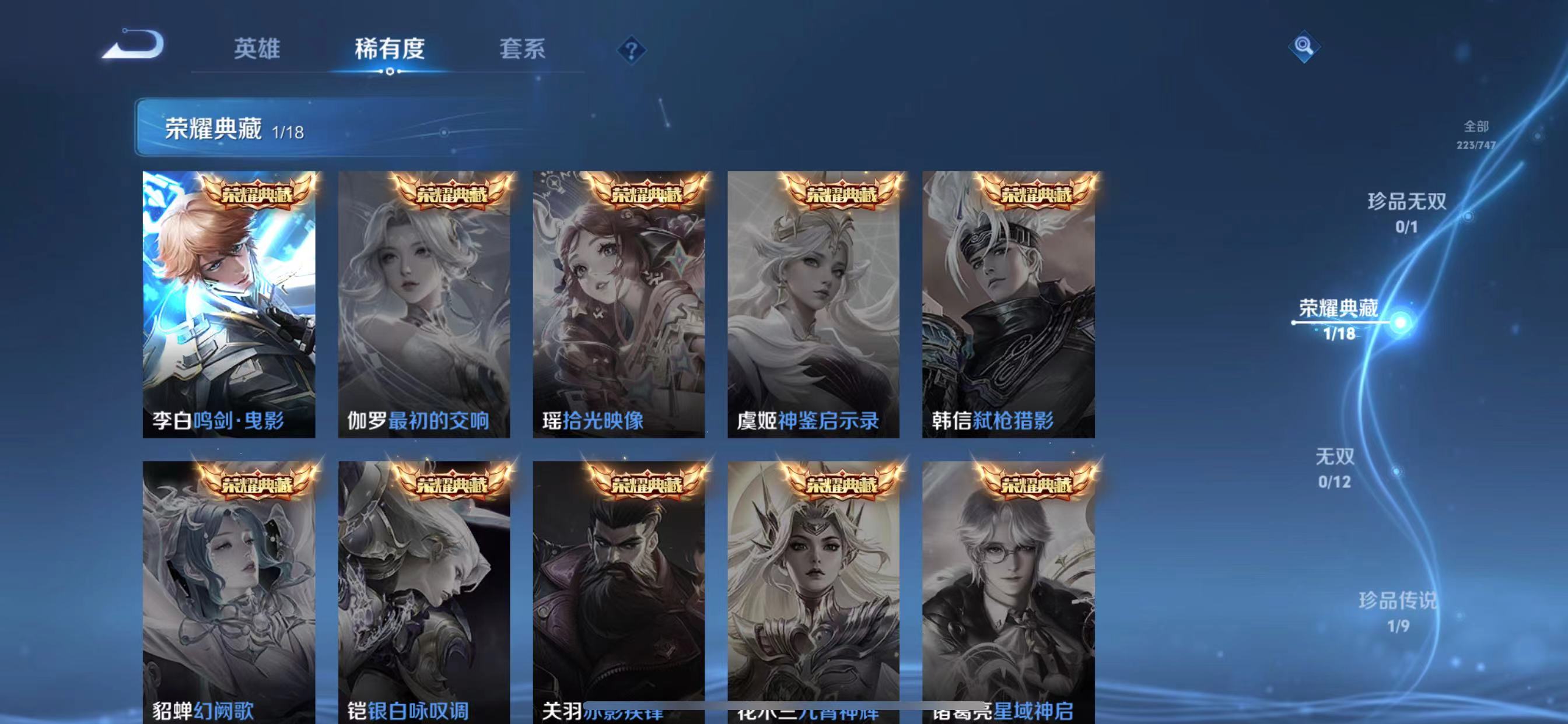 txwz25879 v8 229皮 1典藏 鸣剑·曳影 1珍品传说 黑崎一护 22传说 琥珀纪元,神树通天,永曜之星,启明星使,无双飞将,挚爱之约,淬星耀世,李 ,时雨天司,炽阳神光,零号·赤焰,武圣,久胜战神,云鹰飞将,凤求凰,冠军飞将,末日机甲,白虎志,曦玄引,幻光神呛,愿照·九州拓,乘龙·铭钟鼎57史诗