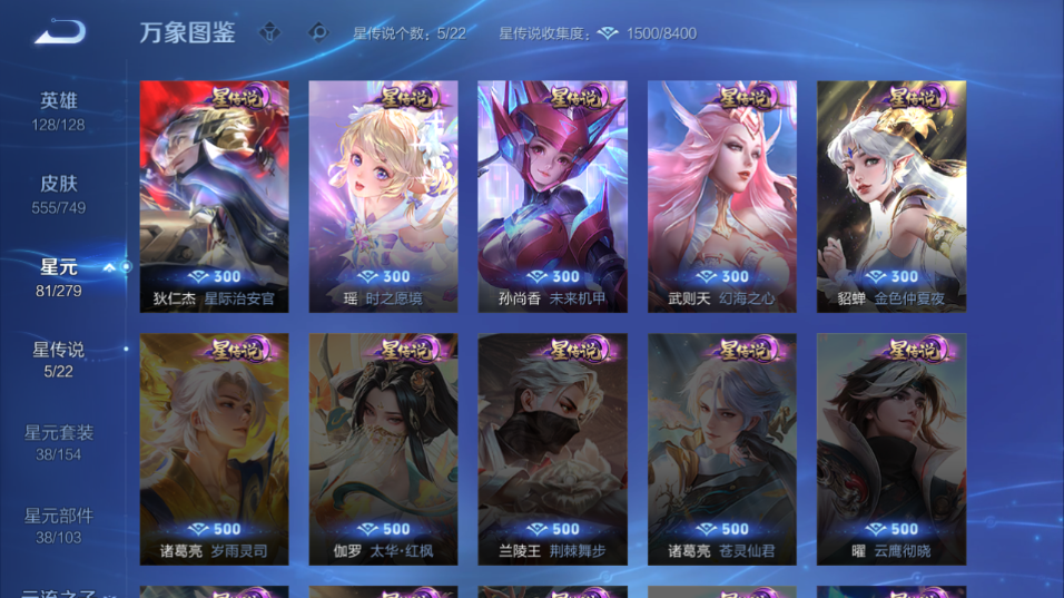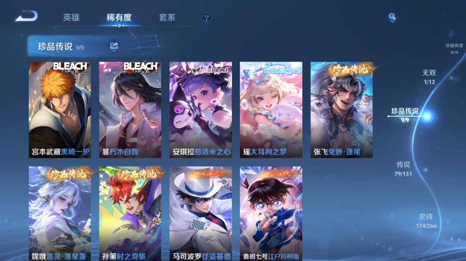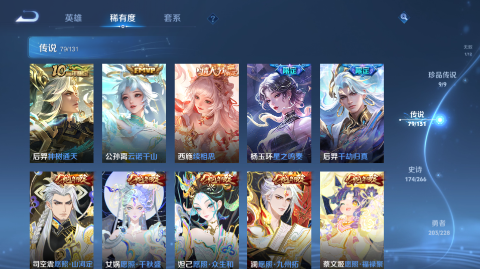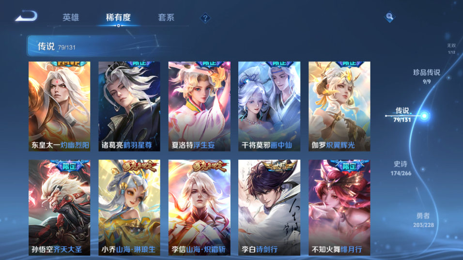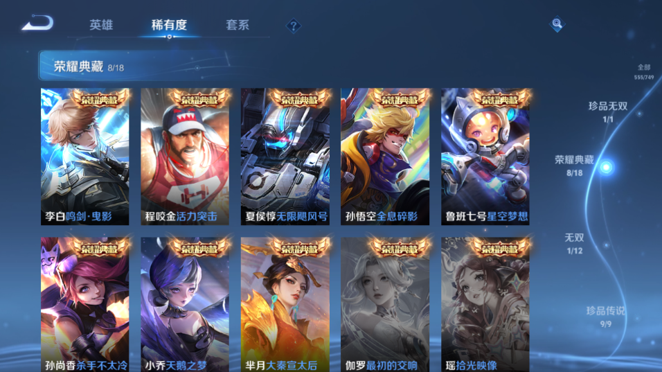 【王者荣耀】【lywz25501】珍品无双1 典藏8 无双1 珍品传说9 传说79 史诗173 英雄128 皮肤555 贵族无双级 珍品无双:馥梦繁花__荣耀典藏:无限飓风号|全息碎影|天鹅之梦|大秦宣太后|杀手不太冷|武则天|活力突击|鸣剑·曳影|星空梦想__无双皮肤:器灵·螭龙剑__珍品传说:江户川柯南|怪盗基德|孙策-时之奇旅|器灵·落星盏|兔狲·蓬尾|大耳狗之梦|酷洛米之心|朽木白哉|黑崎一护__传说皮肤:鸣野蒿|音你闪耀|无双飞将|花朝如约|异界灵契|炽阳神光|启明星使|胖达荣荣|地狱之眼|地狱火|海洋之心|仲夏夜之梦|久胜战神|黄金狮子座|狄仁杰-超时空战士|黄金射手座|黄金白羊座|猫影幻舞|刘备-时之恋人|一念神魔|云鹰飞将|冠军飞将|李|游龙清影|乞巧织情|淬星耀世|瑶-时之祈愿|炽翼辉光|绯月行|浮生妄|鹤羽星尊|画中仙|孙尚香-末日机甲|齐天大圣|白虎志|大乔-时之奇旅|凤求凰|黄金天蝎座|零号·赤焰|落雪白狼|祈雪灵祝|诗剑行|碎云|太华|天魔缭乱|妄想奇谈|妄想实况|武陵仙君|小动物乐团|小乔-音你心动|寅虎·瑞焰|永曜之星|遇见神鼓|战鼓燎原|逐花归海|觅芳踪|山海·炽霜斩|山海·琳琅生|朵莉亚-心动手记|寅虎·赤拳|灼幽烈阳|冥王哈迪斯|映山客|牧神诗旅|玄雷天君|幻光神呛|祥瑞亨通|愿照·岁时盈|愿照·山河定|愿照·九州拓|愿照·众生和|愿照·福禄聚|星之鸣奏|愿照·千秋盛|千劫归真|续相思|云诺千山|神树通天__稀有限定:寅虎·御盾|寅虎·展翼|寅虎·心曲|奔雷神使|御风骁将|至尊宝|梅西|蔷薇恋人|神威|青春决赛季|孙行者|猪悟能|女儿国国王|傲雪梅呛|李小龙|梁祝|山海·玄木吟|神器·万象笔|拒霜思|暗影游猎|白昼王子|百解令|冰锋战神|冰霜神祇|大漠名商|地狱燃心|电玩高手|凤凰于飞|高山流水|古海寻踪|海滩派对|海盐诗旅|航海奇遇记|胡桃异想国|幻夜卜梦|皇家上将|辉光之辰|混沌棋|火炮绅士|剑破天穹|江河有灵|降魔|金庭之子|凯尔特女王|狂想玩偶喵|蓝屏警告|黎明之约|炼金王|美猴王|魔术师|花木兰-默契交锋|匿光决锋者|匿光启智者|匿光追影者|千军破阵|擒涛扼浪|穷奇|驱傩正仪|燃音魔法|热情桑巴|沙漠行僧|蜃楼王|朔风刀|死亡摇滚|探海日志|饕餮|醍醐杖|天狼溯光者|天穹祈灯|玩趣恶龙|万华元夜|妄想食味|无心|五谷丰年|午后时光|纤云弄巧|项羽-霸王别姬|星界游侠|演武夺筹|妖精王|夜都怪侠|疑决卦|阴阳师|吟游魔法|优雅恋人|游园惊梦|驭风魔法|遇见飞天|御旌|御銮|御狮|云端筑梦师|云间偶戏|真爱魔法|逐梦之星|逐梦之翼|逐梦之音|逐梦之影|暗夜贵公子|暗夜猫娘|暗隐猎兽者|暗渊魔法|白龙吟|白蛇|缤纷独角兽|冰冠公主|冰雪圆舞曲|苍穹之光|乘风破浪|大乔-猫狗日记|德古拉伯爵|地狱岩魂|电玩·爆裂旋风|电玩小子|伽罗-琥珀纪元|功夫厨神|鬼剑武藏|黄金分割率|箭羽风息|节奏热浪|金属风暴|乐园奇幻夜|李元芳-蔬乡物语|龙鼓争鸣|龙骑士|吕布-末日机甲|魅力维加斯|魅语|女仆咖啡|偶像歌手|奇遇星旅|千筹问战|青蛇|绅士熊喵|圣诞狂欢|圣诞恋歌|诗语江南|鲁班七号-蔬乡物语|水果甜心|水晶猎龙者|孙策-猫狗日记|滕王阁序|天才门将|天秀·启明|天秀·音浪|晚萤|赵云-未来纪元|闲日渔趣|星夜王子|雪上飞焰|雪夜绮愿|摇滚巨星|夜落电台|鹰眼统帅|永昼|幽灵船长|遇见神鹿|月团寄思|云中君-时之祈愿|钟无艳-超时空战士|逐浪之夏|紫霞仙子|百里守约-百相守梦|老夫子-百相守梦|陌上桑|谪仙醉月|星界特工|噬灭天穹|敬我三分|炽弈燎原|撼地雄心|破空之剑|战舞者|东方月初|涂山红红|霜北刀|埋骨钱|蔡文姬-夏日便利店|虞姬-夏日便利店|天穹之誓|安琪拉-时之奇旅|修罗|曙光守护者|心灵战警|千年之狐|关羽-百相守梦|孙尚香-时之恋人|无限星赏官|舞动绿茵|特工魅影|心灵骇客|飞车小橘子|茶境仙|星界战将|谧流熔炉|苍鳞隐世|器灵·浮梦炉|糖绘人间|狼魂孤将|绮世丹青|化蝶舞|御霄|狰|烛龙|原初探秘者|重明|云中旅人|玲珑珍味|单词大作战|朔望之晖|孙悟空-神迹守卫|达摩-星际陆战队|流音漫舞|访茗客|暖冬·兔眠|灵卜魔法|圣弓游侠|墨子-神迹守卫|落雪兰心|死神来了|刘禅-鸭鸭历险记|沈梦溪-鸭鸭历险记|灵蛊蚀心|藏狐·褐绒|雪豹·霜爪|龙之律动|布丁狗之约|虚灵犬护|布丁狗之誓|石田雨龙|逆浪荇歌|幻珠鲛人|黄忠-百相守梦|织梦人|涂山容容|百里玄策-罗小黑战记|荣光之誓|巫礼祀神|鹤鸣心笺__优质皮肤:尼罗河女神|一千零一夜|创世神祝|年年有余|埃及法老|孤猎|木偶奇遇记|熊喵少女|午夜歌剧院|露花倒影|未来旅行|激情绿茵|海之征途|天启骑士|碧珀绯影|秩序猎龙将|锦衣卫|冰刃幻境|森|超能战警|英喵野望|维京掠夺者|海军大将|绯红之刃|踏雪寻梅|启蛰|战争骑士|伊势巫女|画中游|生化警戒|威尼斯狂欢|第七人偶|潮流仙人|芝加哥教父|街头旋风|绝影神呛|地府判官|荷鲁斯之眼|幸存者|赤焰之缨|福禄兄弟|隐刃|前尘|特种部队|三太子|精灵王|剑舞者|范海辛|星航指挥官|龙域领主|爱与和平|占星师|花间舞|魇语军师|极冰防御线|花见巫女|棒球奇才|东海龙王|蔷薇王座|灼热之刃|精准探案法|圣殿之光|帝国元帅|神奇女侠|战争女神|霓裳曲|加勒比小姐|阿摩司公爵|异域舞娘|精灵公主|修竹墨客|万圣前夜|怪诞之夜|动物派对|绒语心约|破阵·退雄兵|功夫炙烤|暖冬絮语|幻夜行动|聚星闪耀|潮玩探月行|虎啸剑宗|瓷语鉴心|秘密基地|次元突破|鲨炮海盗猫|野性能量