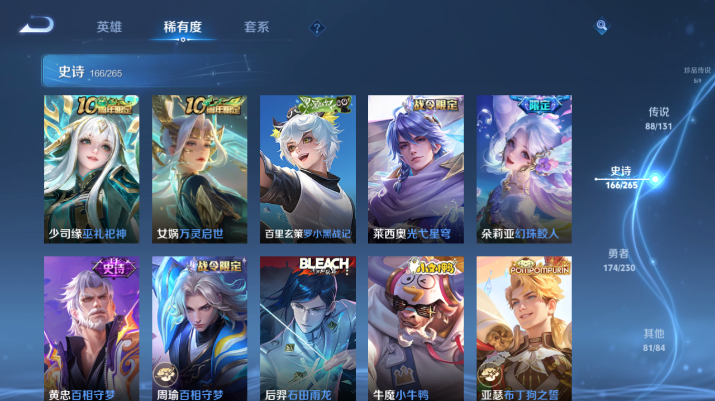 【王者荣耀】【lywz25609】珍品无双1 典藏6 无双6 珍品传说5 传说88 史诗166 英雄128 皮肤527 贵族无双级 珍品无双:馥梦繁花__荣耀典藏:全息碎影|天鹅之梦|武则天|幻阙歌|倪克斯神谕|星域神启|拾光映像__无双皮肤:时之魔女|真我赫兹|雪境奇遇|青丘·九尾|神器·明辉仪|神罪__珍品传说:孙策-时之奇旅|器灵·落星盏|兔狲·蓬尾|大耳狗之梦|酷洛米之心__传说皮肤:鸣野蒿|前尘镜|音你闪耀|深海之息|无双飞将|花朝如约|绛天战甲|炽阳神光|启明星使|胖达荣荣|地狱之眼|海洋之心|仲夏夜之梦|云霓雀翎|久胜战神|黄金狮子座|狄仁杰-超时空战士|黄金射手座|黄金白羊座|猫影幻舞|刘备-时之恋人|一念神魔|云鹰飞将|冠军飞将|飞鸢探春|游龙清影|乞巧织情|淬星耀世|瑶-时之祈愿|炽翼辉光|电玩·雷克斯|绯月行|浮生妄|鹤羽星尊|画中仙|记忆之芯|孙尚香-末日机甲|安琪拉-追逃游戏|大乔-时之奇旅|凤求凰|铠-琥珀纪元|兰陵王-默契交锋|马超-琥珀纪元|燃星之曲|诗剑行|碎云|天魔缭乱|妄想奇谈|妄想实况|貂蝉-曦玄引|项羽-无限倾心|小动物乐团|小乔-音你心动|星穹之声|亚瑟-追逃游戏|夜礼服假面|影龙天霄|永恒水手月亮|虞姬-无限倾心|遇见胡旋|遇见神鼓|周瑜-音你心动|逐花归海|乘龙·淬吴钩|乘龙·铭钟鼎|乘龙·问璇玑|云缨-鹤归松栖|觅芳踪|山海·苍雷引|山海·琳琅生|朵莉亚-心动手记|寅虎·赤拳|至美·化雀舞|张飞-百相守梦|玄雷天君|祥瑞亨通|愿照·岁时盈|愿照·山河定|愿照·九州拓|愿照·众生和|愿照·福禄聚|星之鸣奏|愿照·千秋盛|千劫归真|续相思|云诺千山|神树通天|纵目迁山__稀有限定:寅虎·展翼|寅虎·心曲|至尊宝|青龙志|朱雀志|大圣娶亲|纯白花嫁|飞衡|蔷薇恋人|奇迹圣诞|神威|白鹤梁神女|女儿国国王|梁祝|山海·碧波行|山海·玄木吟|拒霜思|暗影游猎|白昼王子|百解令|冰锋战神|冰霜恋舞曲|冰霜神祇|嫦娥-如梦令|妲己-时之奇旅|大漠名商|地狱燃心|电玩高手|繁星吟游|凤凰于飞|高山流水|古海寻踪|海滩派对|海盐诗旅|后羿-如梦令|幻夜卜梦|皇家上将|混沌棋|火炮绅士|剑破天穹|江河有灵|降魔|黎明之约|迷踪丽影|魔法小厨娘|魔术师|匿光破解者|匿光启智者|女武神|奇幻香踪|千军破阵|擒涛扼浪|青焰无极|穷奇|驱傩正仪|燃音魔法|热情桑巴|荣光圣徽|沙漠行僧|朔风刀|死亡摇滚|探海日志|醍醐杖|天狼绘梦者|天狼狩猎者|天狼运算者|天穹祈灯|万华元夜|王者之锤|妄想食味|无心|五谷丰年|午后时光|星界游侠|夜都魔契|疑决卦|阴阳师|优雅恋人|游园惊梦|驭风魔法|遇见飞天|御旌|御銮|御狮|原初追逐者|云端筑梦师|真爱魔法|逐梦之音|暗夜贵公子|暗夜猫娘|暗隐猎兽者|白蛇|缤纷独角兽|冰冠公主|冰雪圆舞曲|苍穹之光|乘风破浪|乘龙·聚宝船|乘龙·忆丹青|大乔-猫狗日记|德古拉伯爵|地狱岩魂|电玩·爆裂旋风|电玩·兔顽号|电玩小子|伽罗-琥珀纪元|功夫厨神|鬼剑武藏|唤灵魅影|黄金分割率|箭羽风息|节奏热浪|金属风暴|乐园奇幻夜|李元芳-蔬乡物语|龙鼓争鸣|龙骑士|吕布-末日机甲|玫瑰异探|魅力维加斯|魅语|梦奇-顽趣|女仆咖啡|偶像歌手|奇遇舞章|千筹问战|青蛇|赏金猎手|绅士熊喵|圣诞狂欢|圣诞恋歌|诗语江南|鲁班七号-蔬乡物语|水果甜心|水晶猎龙者|孙策-猫狗日记|天才门将|天秀·启明|晚萤|赵云-未来纪元|嘻哈天王|星夜王子|摇滚巨星|夜落电台|银翎春语|鹰眼统帅|幽灵船长|遇见神鹿|月团寄思|云中君-时之祈愿|至美·乘鲤谣|钟无艳-超时空战士|周瑜-真爱至上|逐浪之夏|紫霞仙子|百里守约-百相守梦|老夫子-百相守梦|噬灭天穹|涂山红红|虞姬-夏日便利店|天穹之誓|安琪拉-时之奇旅|修罗|曙光守护者|心灵战警|千年之狐|孙尚香-时之恋人|无限星赏官|舞动绿茵|特工魅影|心灵骇客|茶境仙|星界战将|谧流熔炉|苍鳞隐世|万物之道|器灵·浮梦炉|糖绘人间|狼魂孤将|绮世丹青|化蝶舞|御霄|烛龙|重明|云中旅人|玲珑珍味|单词大作战|达摩-星际陆战队|流音漫舞|访茗客|暖冬·兔眠|灵卜魔法|夺宝奇兵|苍威无极|圣弓游侠|墨子-神迹守卫|落雪兰心|死神来了|刘禅-鸭鸭历险记|沈梦溪-鸭鸭历险记|灵蛊蚀心|藏狐·褐绒|雪豹·霜爪|龙之律动|布丁狗之约|布丁狗之誓|小牛鸭|石田雨龙|逆浪荇歌|孙策-百相守梦|周瑜-百相守梦|幻珠鲛人|黄忠-百相守梦|光弋星穹|往忆晖光|百里玄策-罗小黑战记|荣光之誓|万灵启世|巫礼祀神|鹤鸣心笺__优质皮肤:尼罗河女神|一千零一夜|创世神祝|年年有余|埃及法老|孤猎|木偶奇遇记|熊喵少女|午夜歌剧院|火炮千金|露花倒影|未来旅行|激情绿茵|海之征途|天启骑士|碧珀绯影|秩序猎龙将|锦衣卫|冰刃幻境|森|超能战警|英喵野望|维京掠夺者|海军大将|绯红之刃|踏雪寻梅|启蛰|战争骑士|伊势巫女|画中游|生化警戒|威尼斯狂欢|第七人偶|潮流仙人|芝加哥教父|街头旋风|绝影神呛|地府判官|荷鲁斯之眼|幸存者|赤焰之缨|福禄兄弟|隐刃|前尘|特种部队|三太子|精灵王|剑舞者|范海辛|星航指挥官|龙域领主|爱与和平|占星师|花间舞|魇语军师|极冰防御线|花见巫女|棒球奇才|东海龙王|蔷薇王座|灼热之刃|精准探案法|圣殿之光|帝国元帅|战争女神|霓裳曲|加勒比小姐|阿摩司公爵|异域舞娘|精灵公主|修竹墨客|万圣前夜|绒语心约|长夏之忆|异域游侠|暗都幽影|功夫炙烤|潮玩探月行|虎啸剑宗|秘密基地|次元突破|鲨炮海盗猫|野性能量|丁香结|奇妙博物学|虹云
