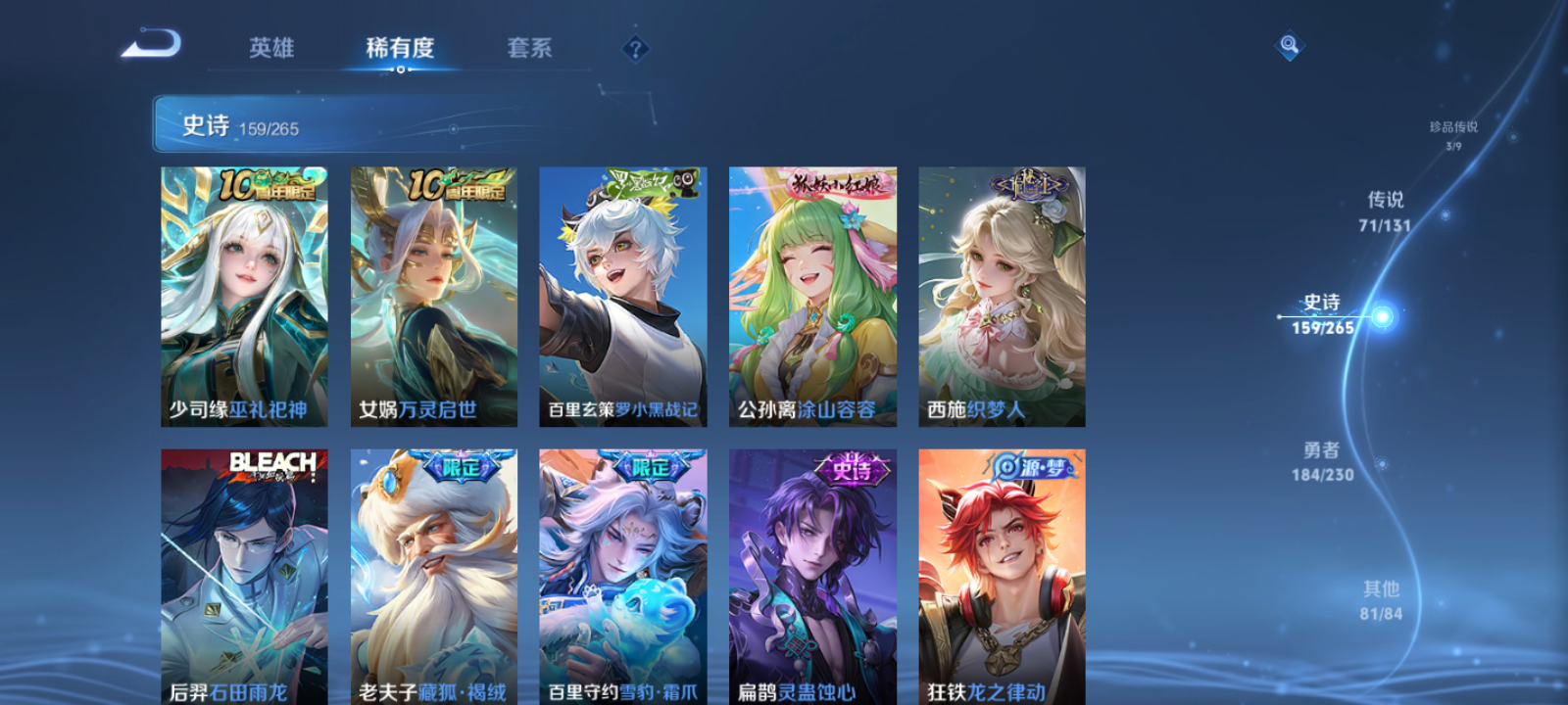 【王者荣耀】【lywz25673】珍品无双0 典藏6 无双3 珍品传说3 传说71 史诗159 英雄128 皮肤507 贵族10级 荣耀典藏:无限飓风号|全息碎影|杀手不太冷|武则天|幻阙歌|鸣剑·曳影|拾光映像__无双皮肤:群星魔术团|离恨烟|神器·明辉仪__珍品传说:怪盗基德|器灵·落星盏|兔狲·蓬尾__传说皮肤:鸣野蒿|深海之息|无双飞将|挚爱花嫁|挚爱之约|启示之音|绛天战甲|炽阳神光|启明星使|胖达荣荣|地狱之眼|海洋之心|仲夏夜之梦|云霓雀翎|久胜战神|黄金狮子座|狄仁杰-超时空战士|黄金射手座|黄金白羊座|刘备-时之恋人|一念神魔|云鹰飞将|李|乞巧织情|淬星耀世|炽翼辉光|绯月行|画中仙|孙尚香-末日机甲|白虎志|凤求凰|黄金天蝎座|金乌负日|铠-琥珀纪元|落雪白狼|吕布-曦玄引|马超-琥珀纪元|怒海麟威|祈雪灵祝|燃星之曲|时雨天司|太华|貂蝉-曦玄引|项羽-无限倾心|小乔-音你心动|永曜之星|虞姬-无限倾心|周瑜-音你心动|乘龙·淬吴钩|乘龙·铭钟鼎|乘龙·问璇玑|觅芳踪|山海·苍雷引|山海·炽霜斩|山海·琳琅生|神器·狴犴令|朵莉亚-心动手记|云中君-群星魔术团|映山客|牧神诗旅|幻光神呛|祥瑞亨通|愿照·岁时盈|愿照·山河定|愿照·九州拓|愿照·众生和|愿照·福禄聚|星之鸣奏|愿照·千秋盛|神树通天__稀有限定:寅虎·心曲|奔雷神使|御风骁将|白晶晶|至尊宝|瑞麟志|青龙志|玄武志|朱雀志|大圣娶亲|一生所爱|玄嵩|幽恒|飞衡|虎魄|神威|烈魂|龙胆|李小龙|梁祝|山海·碧波行|山海·玄木吟|狮舞东方|唐三藏|暗影游猎|白昼王子|冰锋战神|冰霜恋舞曲|冰霜神祇|大漠名商|电玩高手|繁星吟游|古海寻踪|海滩派对|海盐诗旅|航海奇遇记|华丽摇滚|幻夜卜梦|皇家上将|辉光之辰|混沌棋|剑破天穹|金庭之子|狂想玩偶喵|蓝屏警告|黎明之约|迷踪丽影|魔术师|奇幻香踪|擒涛扼浪|青焰无极|驱傩正仪|燃音魔法|荣光圣徽|沙漠行僧|圣诞老人|朔风刀|死亡摇滚|探海日志|醍醐杖|天穹祈灯|玩趣恶龙|阿古朵-顽趣|万华元夜|妄想食味|无心|五谷丰年|午后时光|纤云弄巧|星界游侠|星空之诺|驯魔猎人|演武夺筹|夜都怪侠|疑决卦|阴阳师|吟游魔法|银河之约|御旌|御銮|原初追逐者|云间偶戏|逐梦之星|暗夜贵公子|暗夜猫娘|暗隐猎兽者|暗渊魔法|白龙吟|白蛇|缤纷独角兽|冰冠公主|冰雪圆舞曲|苍穹之光|乘风破浪|乘龙·聚宝船|乘龙·忆丹青|大乔-猫狗日记|德古拉伯爵|地狱岩魂|电玩小子|伽罗-琥珀纪元|功夫厨神|鬼剑武藏|黄金分割率|箭羽风息|节奏热浪|金属风暴|乐园奇幻夜|李元芳-蔬乡物语|龙鼓争鸣|龙骑士|吕布-末日机甲|魅力维加斯|魅语|梦奇-顽趣|女仆咖啡|偶像歌手|奇遇舞章|千筹问战|青蛇|赏金猎手|上官婉儿-群星魔术团|绅士熊喵|圣诞狂欢|圣诞恋歌|诗语江南|鲁班七号-蔬乡物语|水果甜心|水晶猎龙者|孙策-猫狗日记|滕王阁序|天才门将|天秀·启明|天秀·音浪|晚萤|赵云-未来纪元|星夜王子|雪上飞焰|摇滚巨星|鹰眼统帅|永昼|幽灵船长|遇见神鹿|月团寄思|钟无艳-超时空战士|逐浪之夏|紫霞仙子|百里守约-百相守梦|老夫子-百相守梦|谪仙醉月|星界特工|噬灭天穹|敬我三分|炽弈燎原|撼地雄心|破空之剑|东方月初|涂山红红|霜北刀|埋骨钱|顽岩魄|蔡文姬-夏日便利店|虞姬-夏日便利店|天穹之誓|浮光幕影|怒海争锋|海诺-心动手记|修罗|曙光守护者|心灵战警|千年之狐|孙尚香-时之恋人|无限星赏官|舞动绿茵|特工魅影|心灵骇客|茶境仙|星界战将|谧流熔炉|苍鳞隐世|器灵·浮梦炉|化蝶舞|御霄|原初探秘者|云中旅人|朔望之晖|钟馗-神迹守卫|孙悟空-神迹守卫|达摩-星际陆战队|访茗客|暖冬·兔眠|灵卜魔法|苍威无极|墨子-神迹守卫|落雪兰心|死神来了|华尔街大亨|刘禅-鸭鸭历险记|沈梦溪-鸭鸭历险记|灵蛊蚀心|藏狐·褐绒|雪豹·霜爪|龙之律动|布丁狗之约|虚灵犬护|石田雨龙|逆浪荇歌|织梦人|涂山容容|百里玄策-罗小黑战记|荣光之誓|万灵启世|巫礼祀神|鹤鸣心笺__优质皮肤:尼罗河女神|一千零一夜|创世神祝|年年有余|埃及法老|孤猎|木偶奇遇记|熊喵少女|午夜歌剧院|露花倒影|未来旅行|激情绿茵|海之征途|天启骑士|碧珀绯影|秩序猎龙将|锦衣卫|冰刃幻境|森|超能战警|英喵野望|维京掠夺者|海军大将|绯红之刃|踏雪寻梅|启蛰|战争骑士|伊势巫女|画中游|生化警戒|威尼斯狂欢|第七人偶|潮流仙人|芝加哥教父|街头旋风|绝影神呛|地府判官|荷鲁斯之眼|幸存者|赤焰之缨|福禄兄弟|隐刃|前尘|特种部队|三太子|精灵王|剑舞者|范海辛|星航指挥官|龙域领主|爱与和平|占星师|花间舞|魇语军师|极冰防御线|花见巫女|棒球奇才|东海龙王|蔷薇王座|灼热之刃|精准探案法|圣殿之光|帝国元帅|战争女神|霓裳曲|加勒比小姐|阿摩司公爵|异域舞娘|精灵公主|修竹墨客|万圣前夜|怪诞之夜|动物派对|绒语心约|长夏之忆|破阵·退雄兵|异域游侠|暗都幽影|功夫炙烤|潮玩探月行|虎啸剑宗|瓷语鉴心|秘密基地|次元突破|鲨炮海盗猫|野性能量|丁香结|奇妙博物学|虹云星官|守护之力|坚韧之力|幻乐之宴|功夫老勺|命运角斗场|幻想奇妙夜|海滩丽影|黑猫爱糖果|阿尔法小队|兔女郎|死亡骑士|黄金武士|少女阿狸|天使之翼|玩偶对对碰|宫本武藏-未来纪元|东方不败|红桃皇后|忍·炎影|爱心护理|街头霸王|教廷特使|鸿运当头|金色潮汐|漠中幻影|时空谍影|决胜大满贯|破局者|零食大作战|西部游侠|太极少年|乐园追猎者|牛运亨通|幻泉雾影|潮玩造