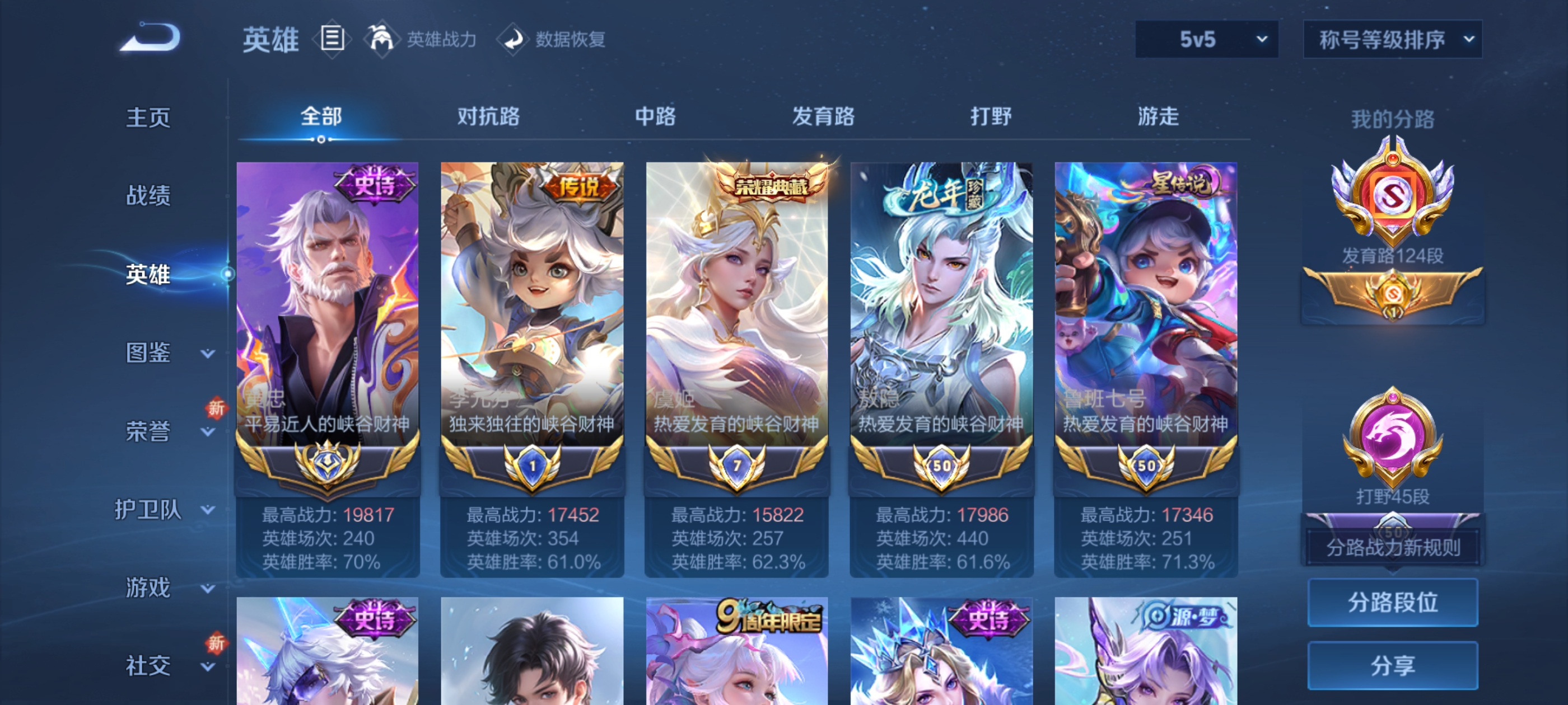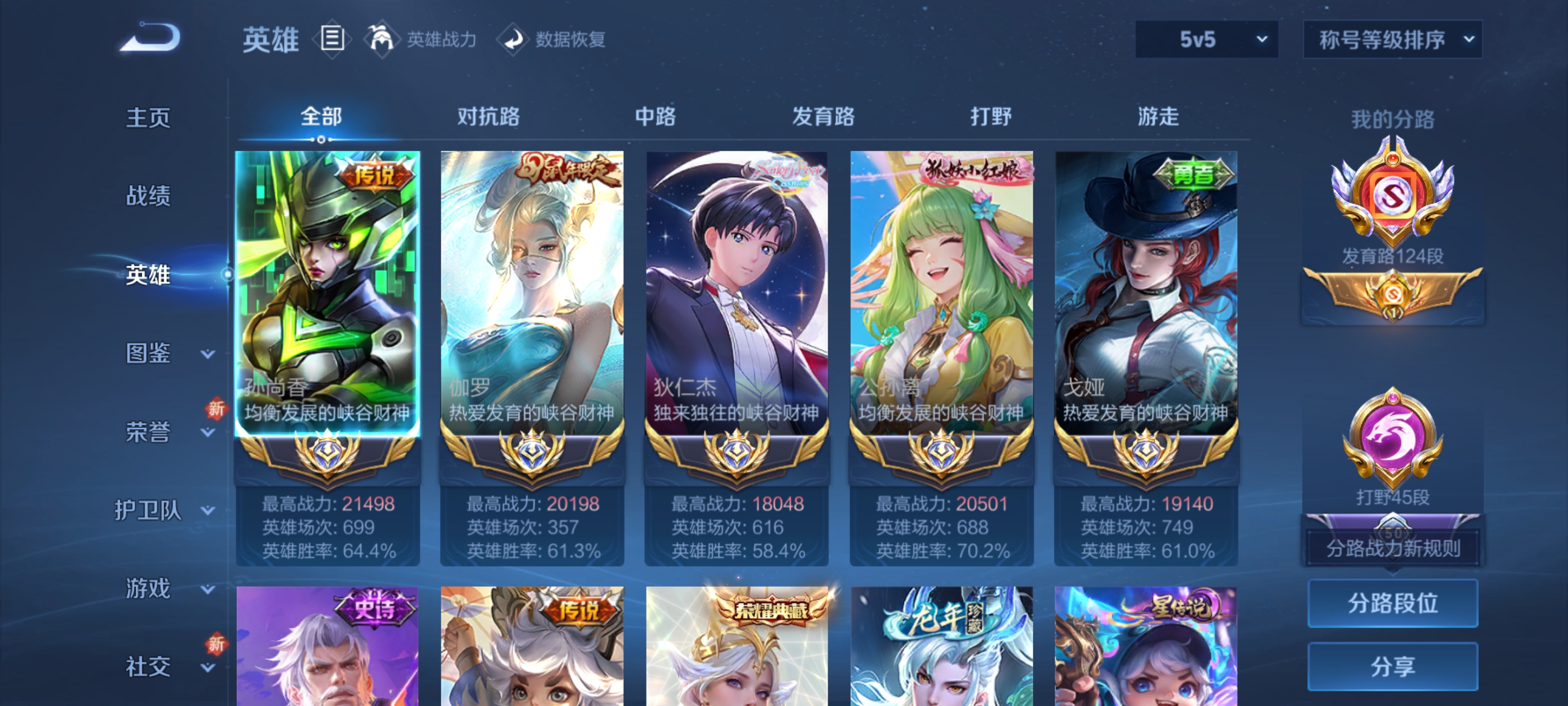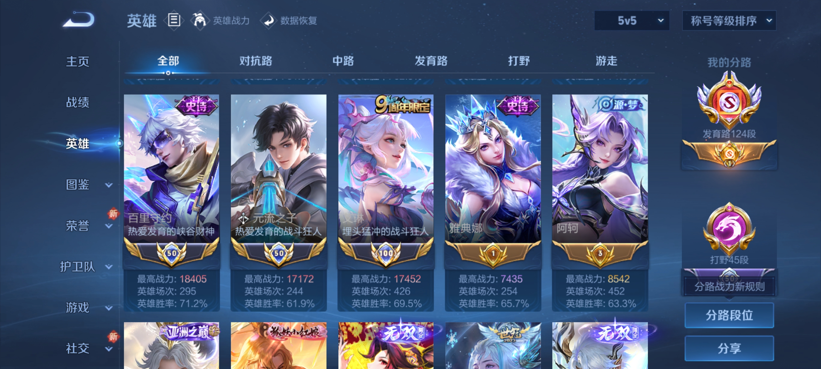 发育路124段 马上125段 小魔方 748皮 2.1万孙尚香2万阿离2万伽罗1.8w狄仁杰1.9万戈娅1.9万黄忠 一堆小国标