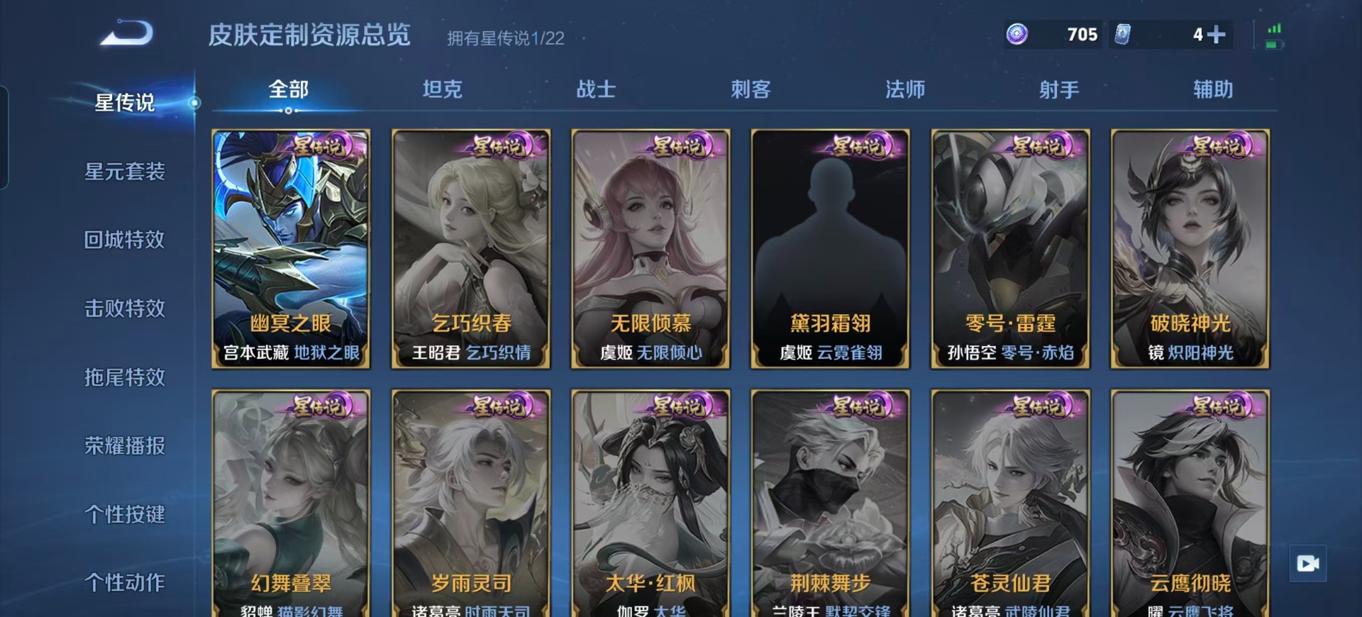 v6 1无双 7传说 127英雄 129皮肤 可修改实名 【英雄全皮】敖隐全皮孙权全皮 【稀有英雄】嬴政始皇帝韩信韩跳跳艾琳不知火舞娜可露露鸟人橘右京橘子大司命敖隐小龙人夏洛特夏师傅金蝉唐僧戈娅赵云 【无双皮】碎月剑心李白无双 【传说皮