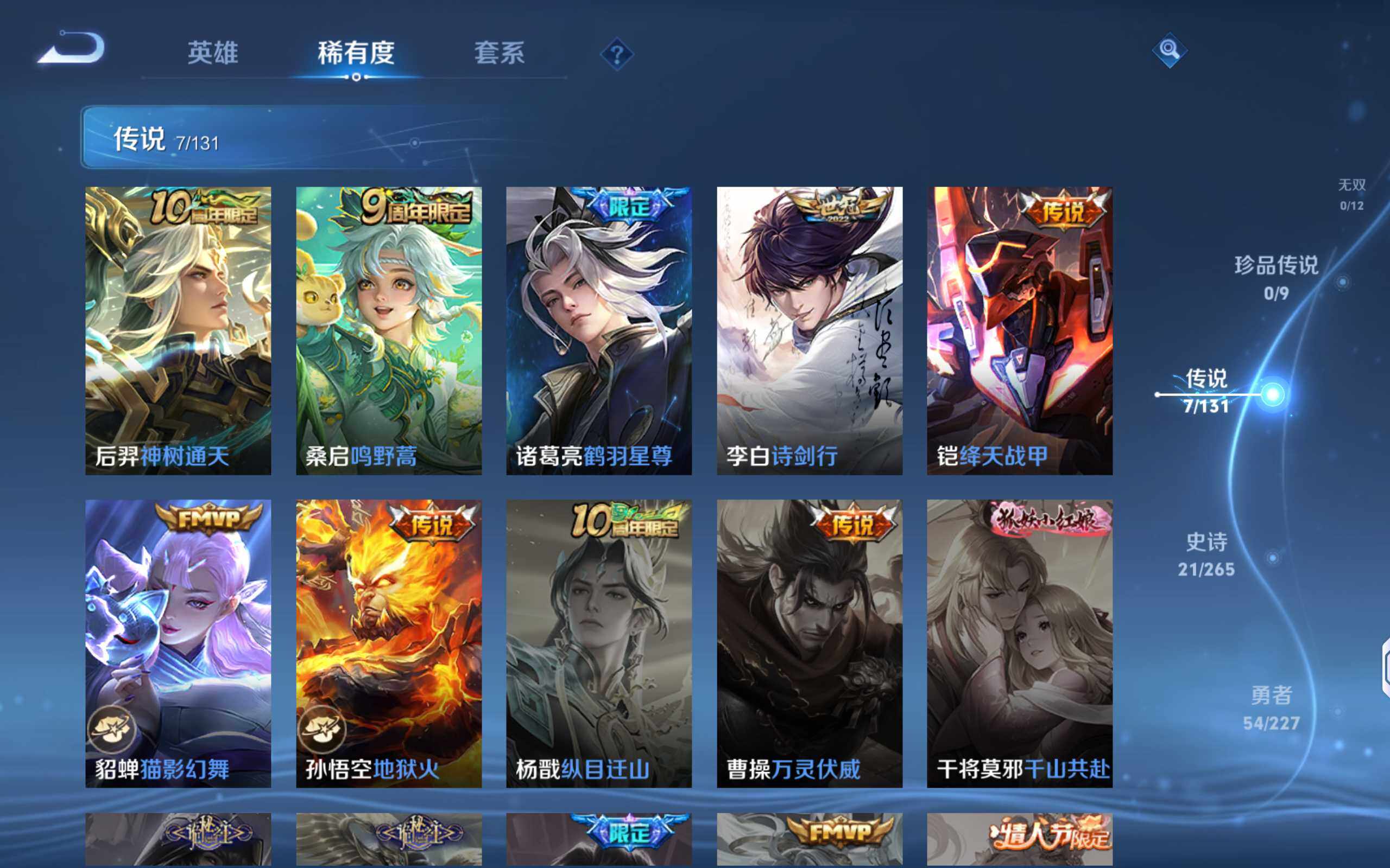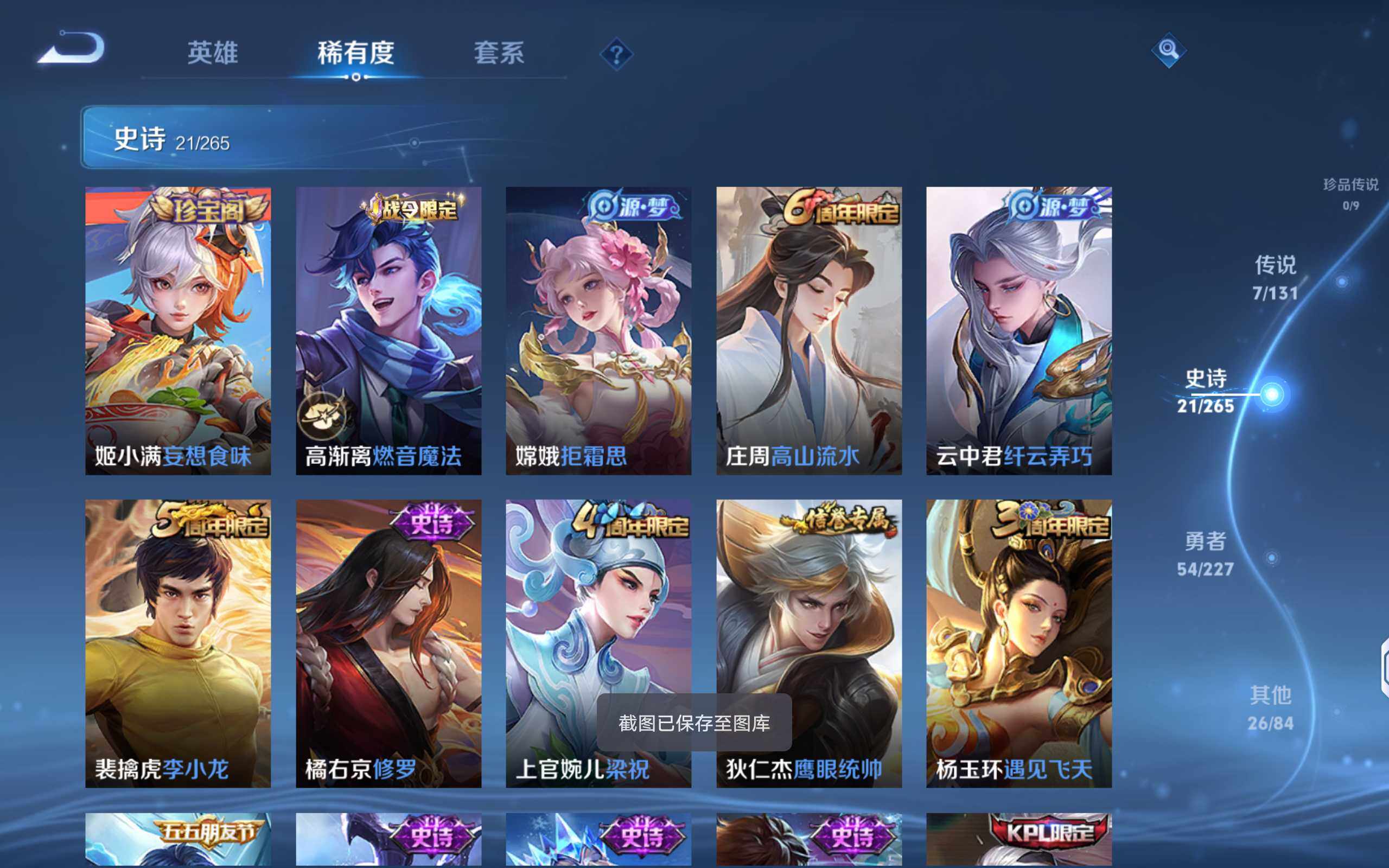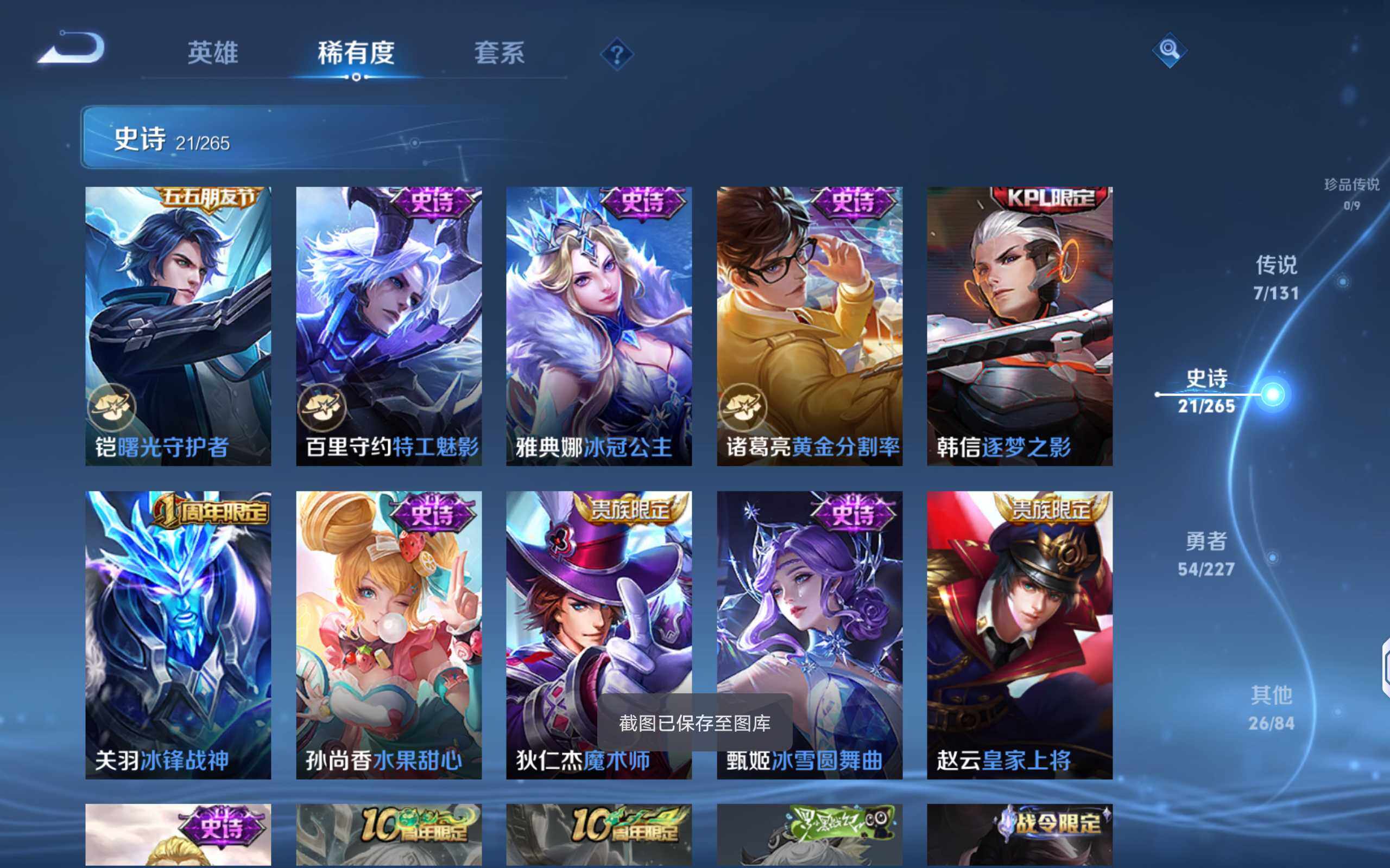 58英雄-29皮肤-【男神号·银标达摩·银标不知火影·银标司马懿·7传说·5按键】安卓q-v6-永恒钻石iv段位-58英雄-29皮肤-1传说-8史诗 【传说皮肤】:桑启鸣野蒿 【限定皮肤】:上官婉儿梁祝,鲁班大师探海日志,阿古朵江河有灵,张良古海寻踪 【赛季限定】:张良古海寻踪,鲁班大师探海日志 【史诗皮肤】:甄姬冰雪圆舞曲,妲己魅力维加斯,吕布圣诞狂欢,兰陵王暗隐猎兽者,阿轲节奏热浪,狄仁杰鹰眼统帅,上官婉儿梁