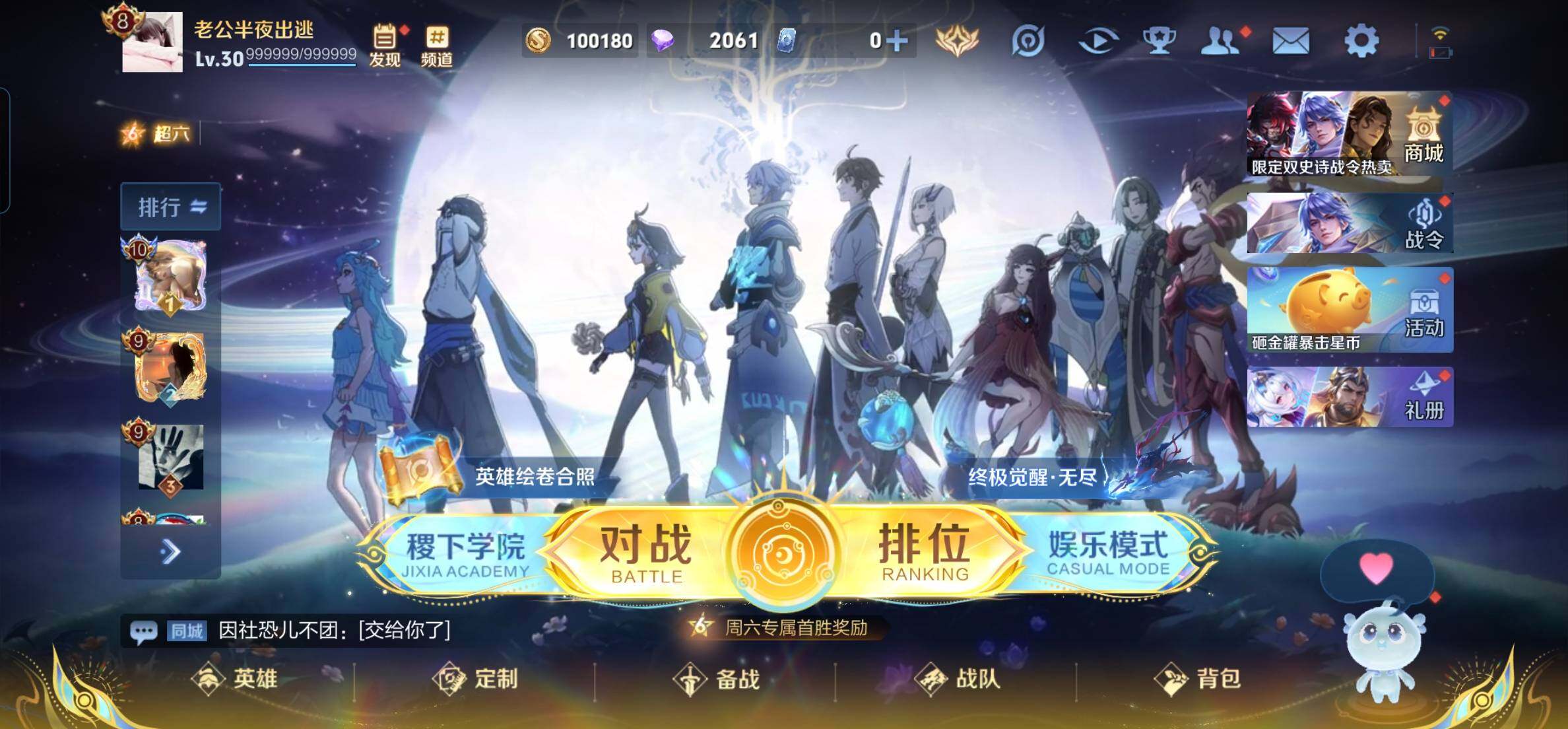 2375146-q-v8-永恒钻石v段位-126英雄-184皮肤-1典藏皮肤-1典藏英雄-12传说-36史诗 【荣耀典藏】:武则天英雄,孙悟空全息碎影 【传说皮肤】:虞姬启明星使,百里玄策白虎志,花木兰冠军飞将,后羿黄金射手座,诸葛亮武陵仙君,貂蝉仲夏夜之梦,孙尚香末日机甲,宫本武藏地狱之眼,孙悟空地狱火,吕布天魔缭乱,武则天海洋之心,狄仁杰超时空战士 【限定皮肤】:白起狰,狄仁杰阴阳师,虞