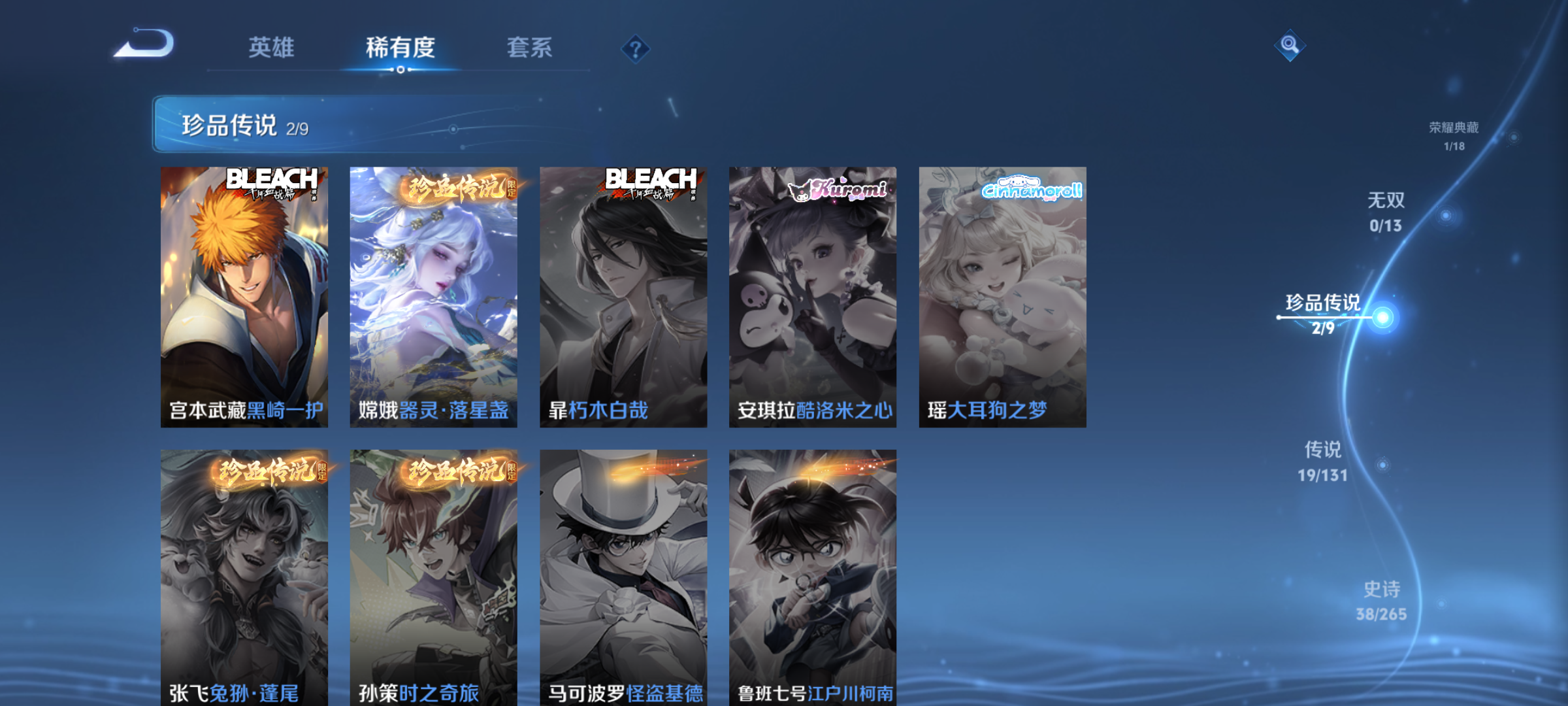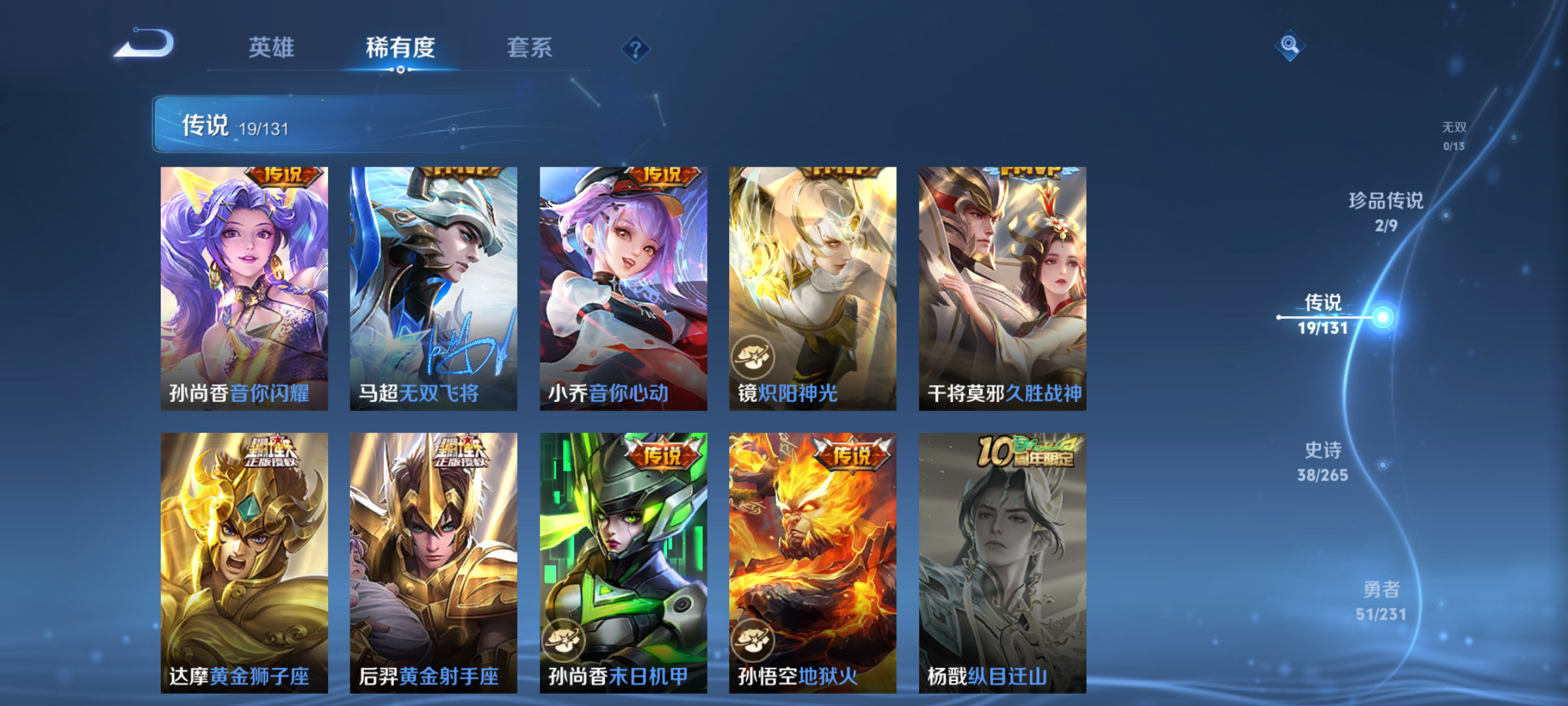txwz26824 v7 141皮肤 1典藏-九霄神辉 2珍品传说-黑崎一护,器灵·落星盏 19传说-神树通天,久胜战神,万灵伏威,地狱火,音你闪耀,音你心动,无双飞将,黄金射手座,愿照·九州拓,愿照·岁时盈,愿照·山河定,幻光神呛,鸣野蒿,霜北刀,乘龙·铭钟鼎,炽阳神光,黄金狮子座,乘龙·问璇玑,末日机甲 38史诗-乱世虎臣,星夜王子,冰冠公主,千年之狐,夏日便利店,光弋星穹,巫礼祀神,万灵启世,涂山容容,无限星赏官,天才门将,大圣娶亲,织梦人,德古拉伯爵,原初追逐者,百相守梦,妄想食味,乘风破浪,圣诞恋歌,百相守梦,藏狐·褐绒,青蛇,暗夜猫娘,鸭鸭历险记,龙之律动,化蝶舞,魔术师,特工魅影,幽灵船长,圣诞狂欢,水果甜心,鹰眼统帅,末日机甲,燃音魔法,皇家上将,水晶猎龙者,暗隐猎兽者,李小龙