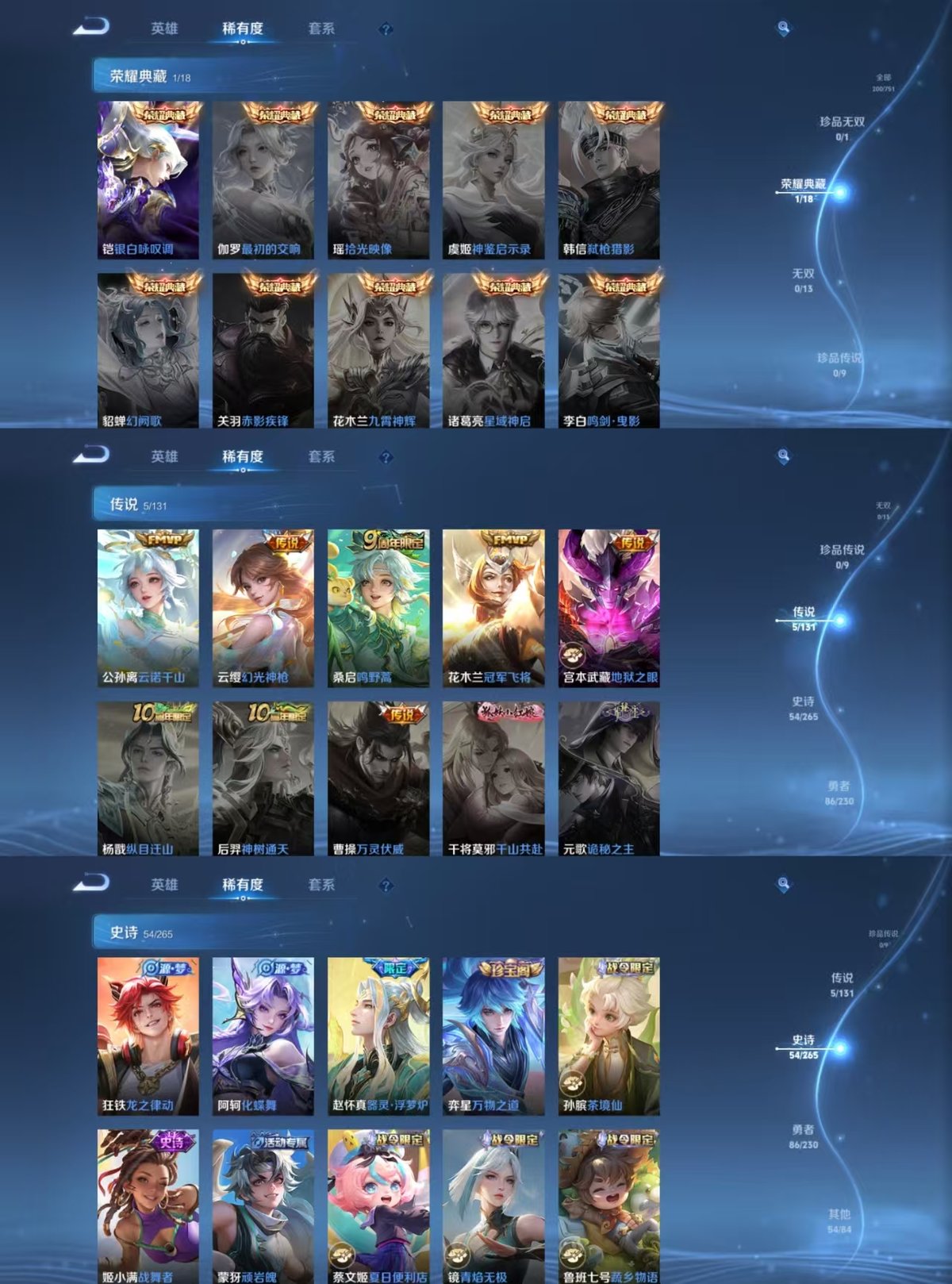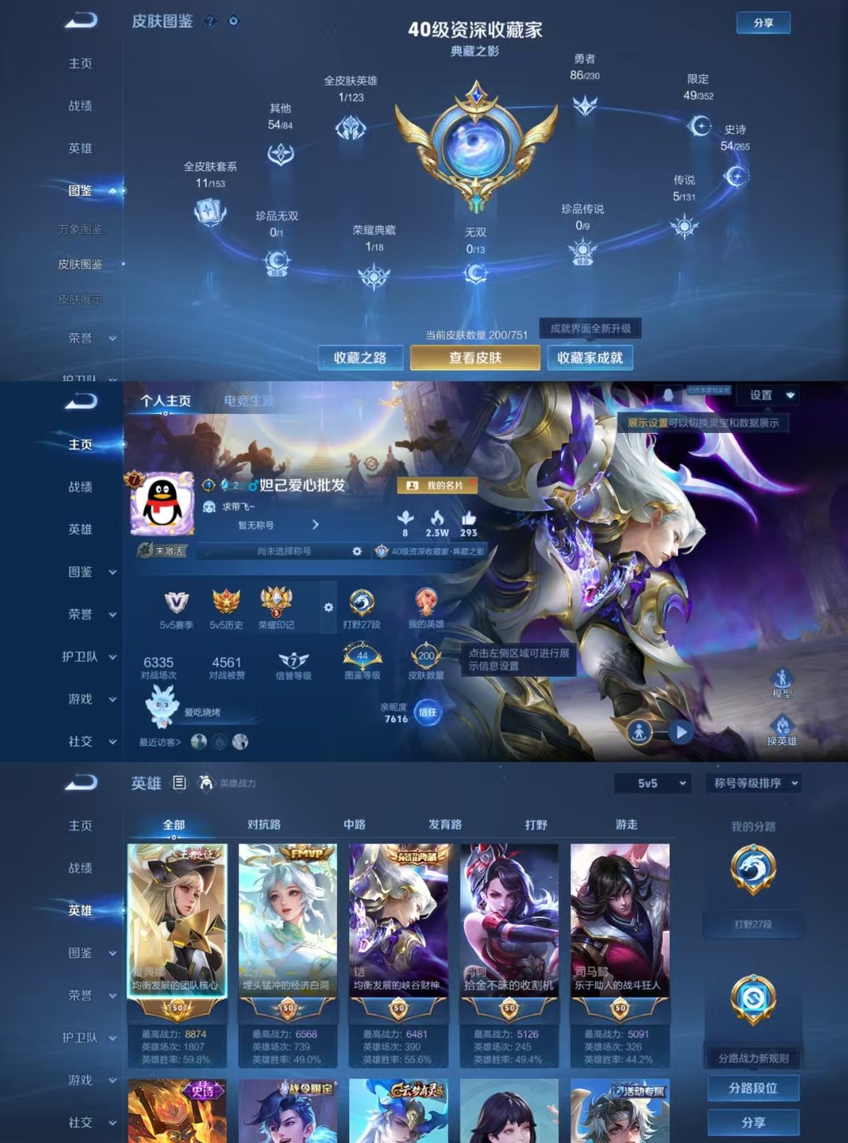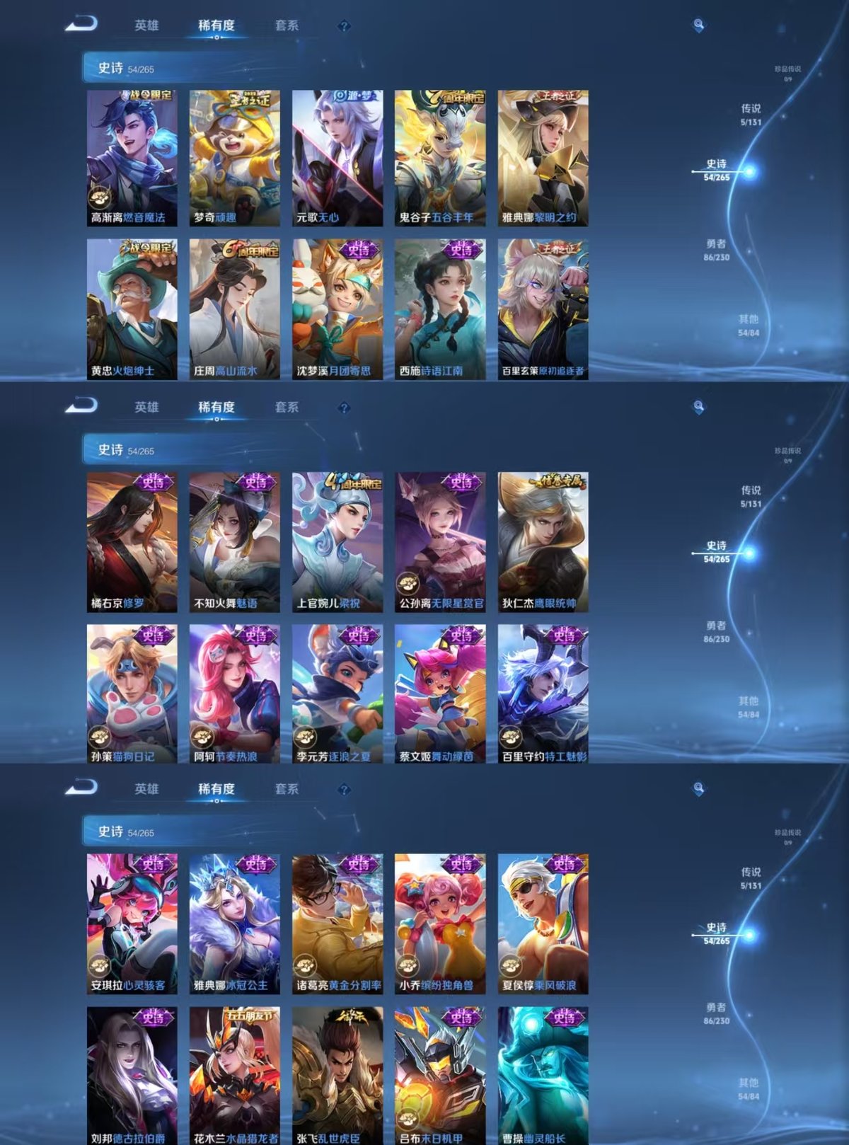 125英雄-200皮肤-实名: 可修改 贵族等级: v7 英雄数: 125 皮肤数: 200 荣耀水晶: 银白咏叹调 传说皮: 冠军飞将地狱之眼幻光神呛云诺千山 限定皮: 梁祝高山流水五谷丰年鸣野蒿逐霄战戟