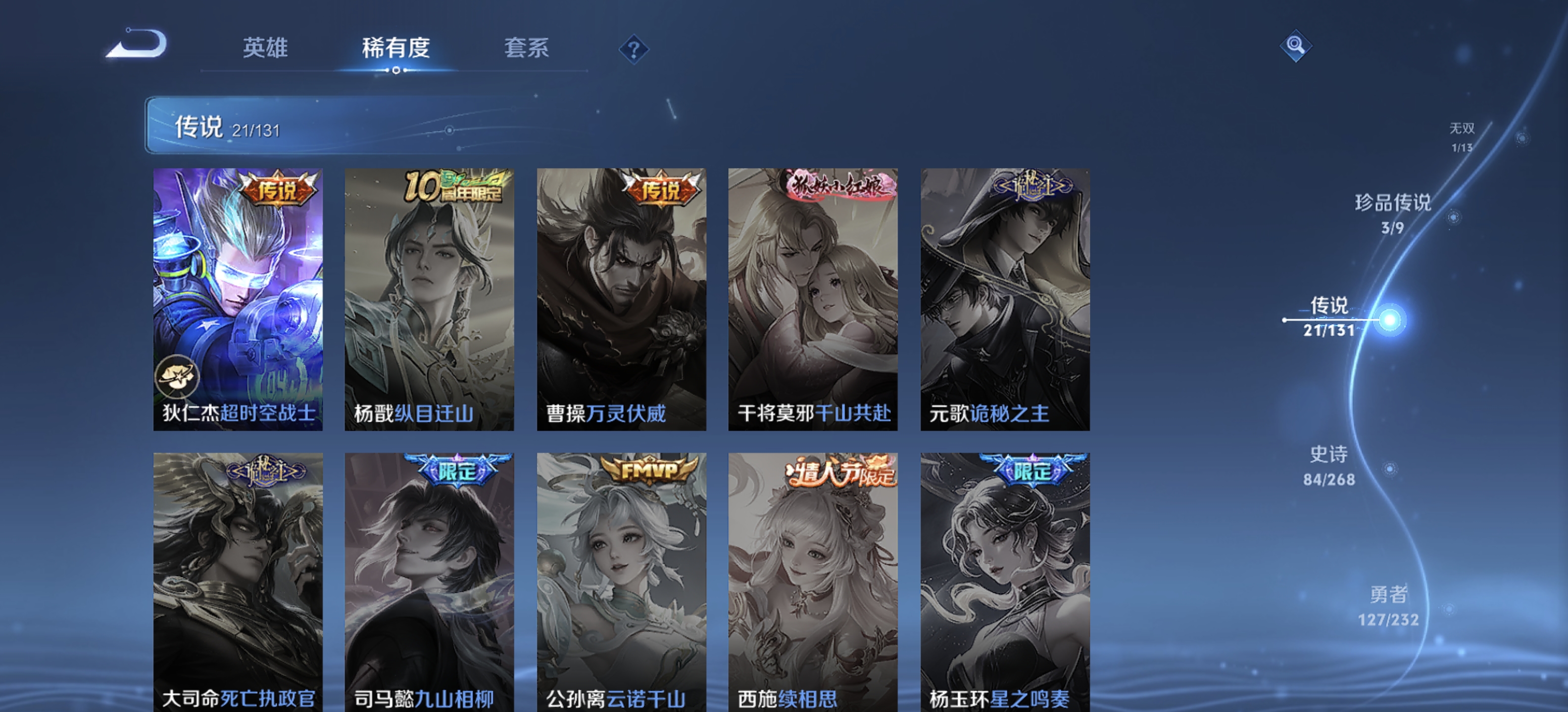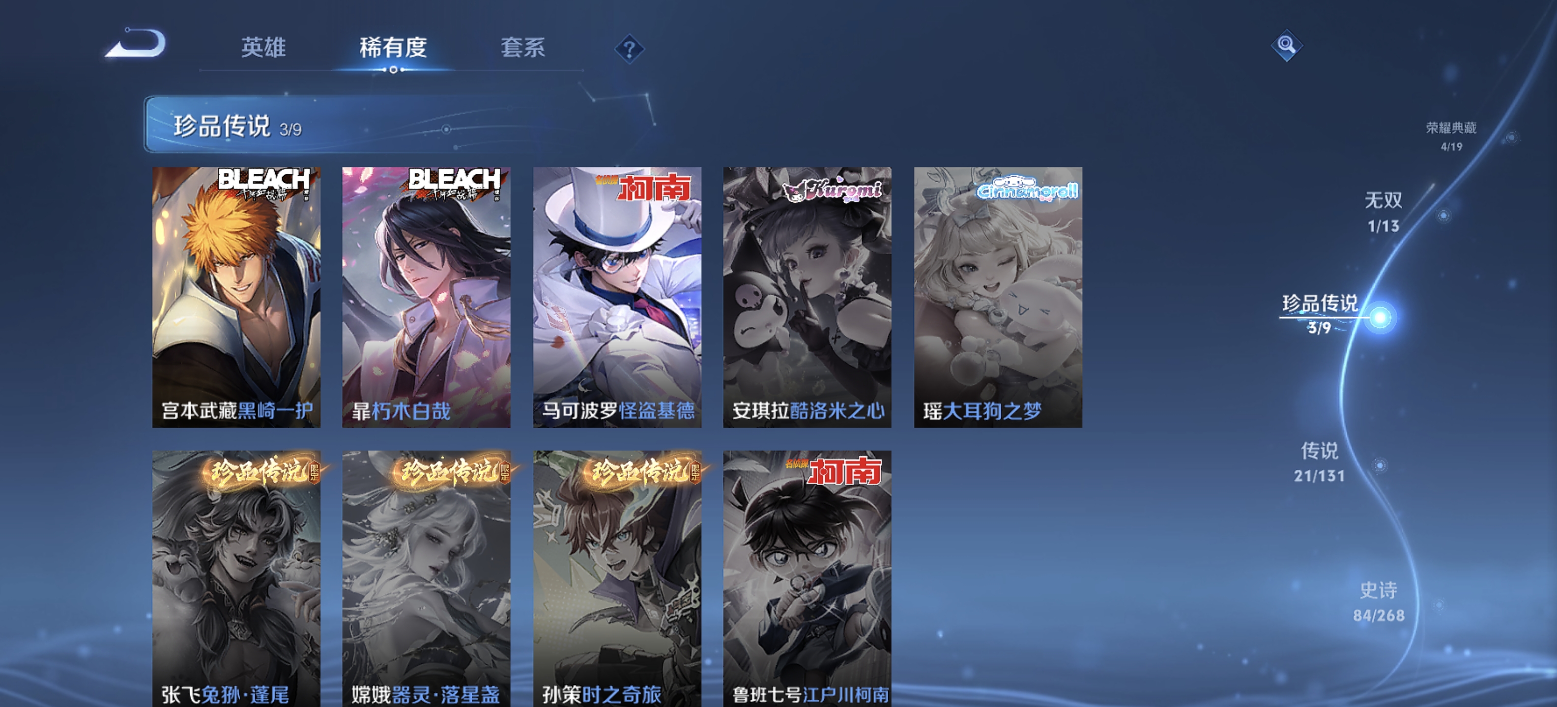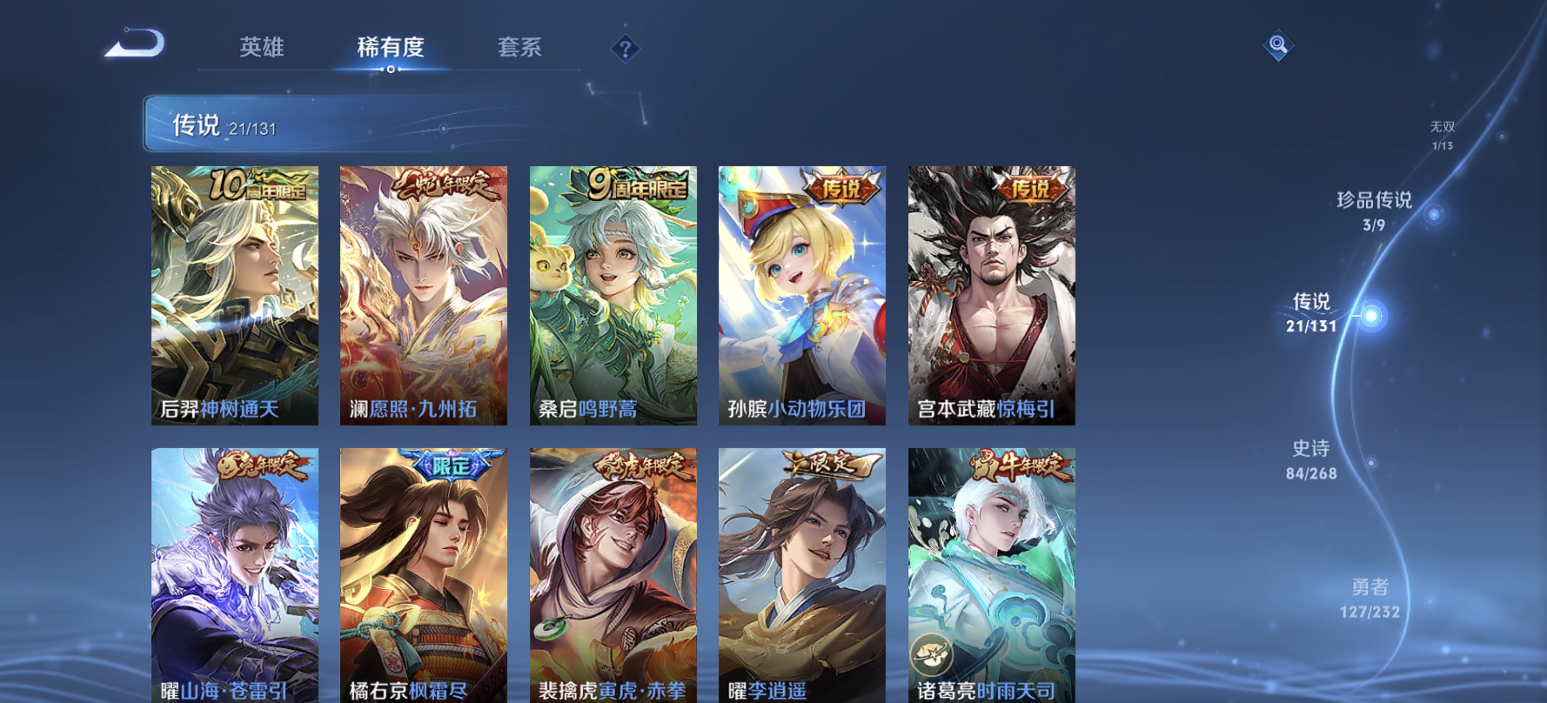 txwz27571-v9-305皮 小国标1.18w桑启 小国标1.25w墨子 省10数字金标1.1w朵利亚 金标万战孙膑 金标1.2w曜 省4数字金标庄周 金标女娲 鲁班大师 裴擒虎 李白 露娜 伽罗 夏侯惇 大乔 奕星 瑶 4典藏 弑呛猎影,无限飓风号,杀手不太冷,鸣剑·曳影 1无双 器灵·螭龙剑 3珍品 朽木白哉,黑崎一护,怪盗基德 21传说 地狱火,神树通天,时之恋人,惊梅引,小动物乐团,超时空战士,愿照·九州拓,鸣野蒿,山海·苍雷引,黄金射手座,枫霜尽,李 ,地狱之眼,寅虎·赤拳,冠军飞将,启明星使,凤求凰,云鹰飞将,时雨天司,一念神魔,白虎志 84史诗